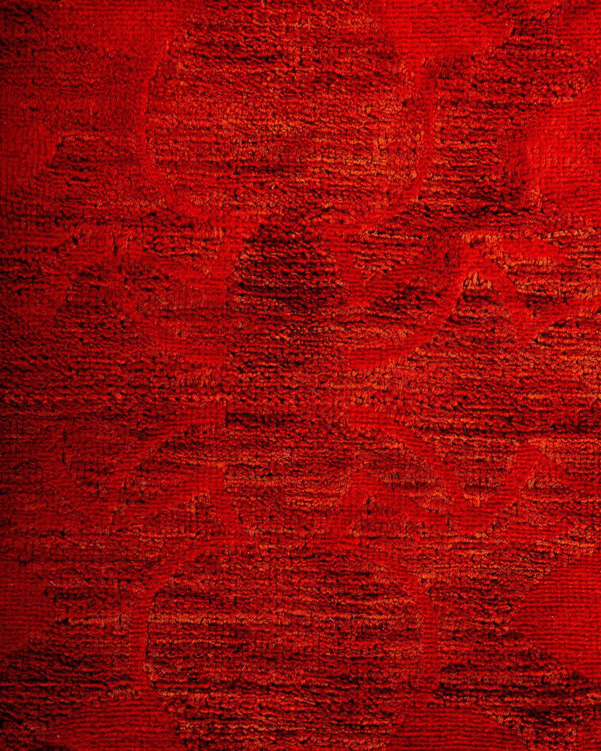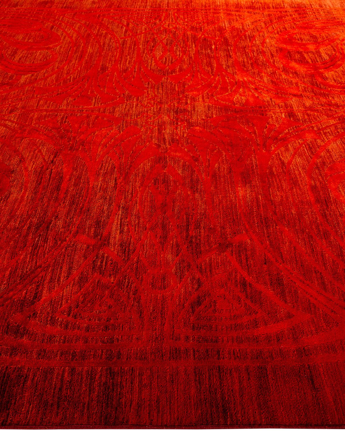 Contemporary Hand-Knotted Orange Area Rug 8' 1" x 10' 1"