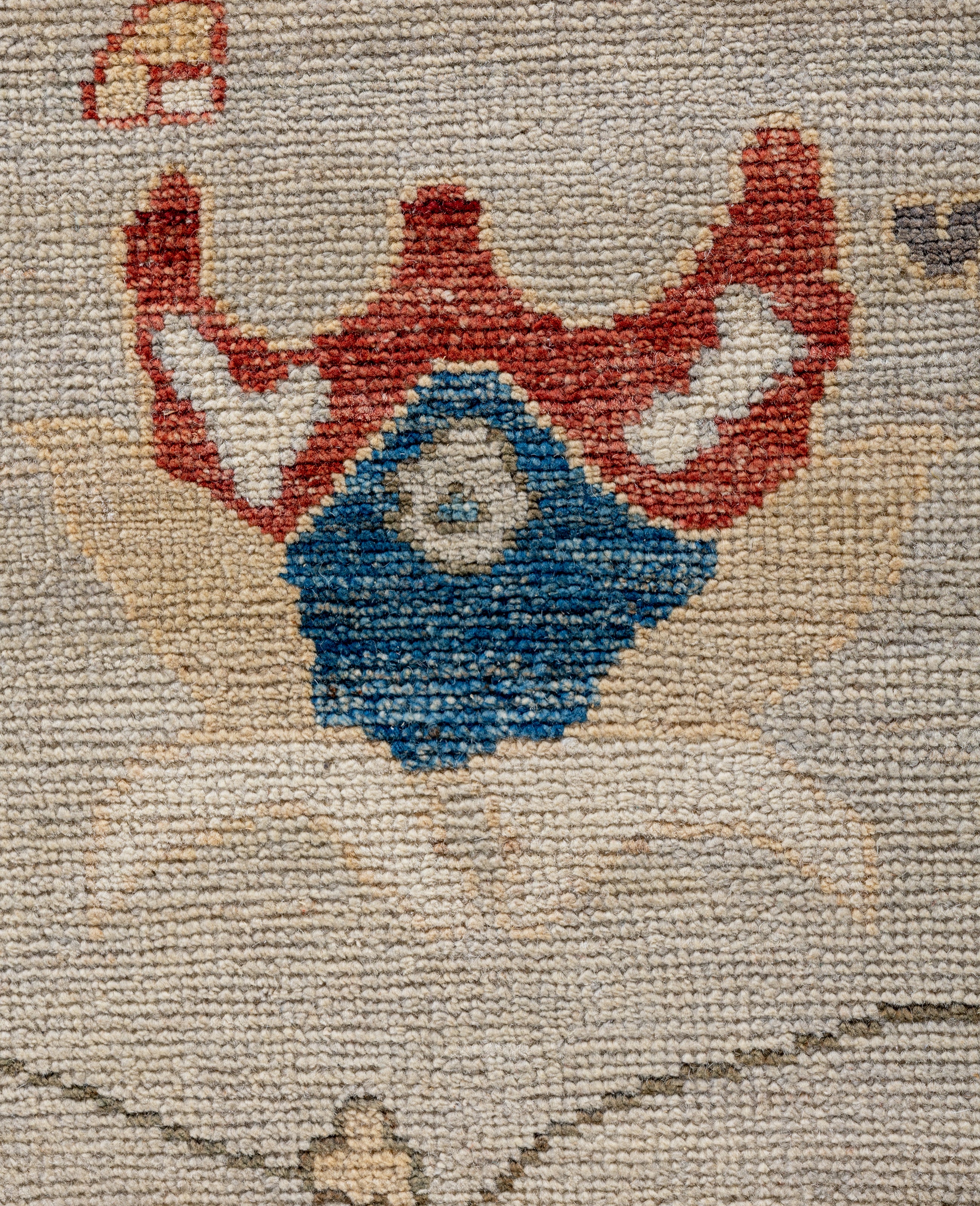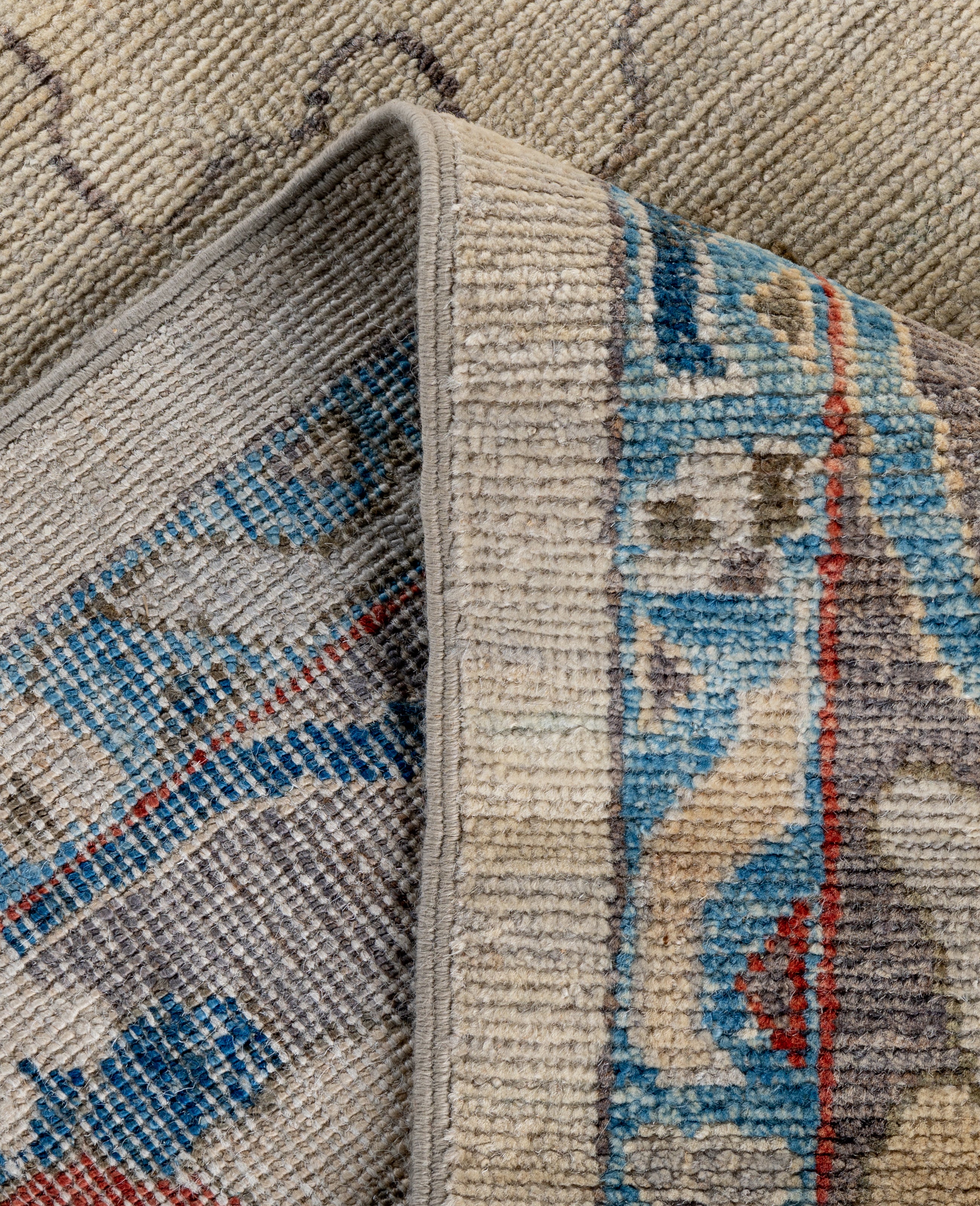 Oushak rugs are known for their soft, muted color palettes and large-scale, flowing designs. They often feature soft tones like beige, cream, gold, and light blue, with motifs that include palmettes, vines, and geometric shapes. These rugs are distinguished by their loose, open patterns, giving them an airy and elegant feel. Originating from the town of Oushak, they emphasize simplicity and a more relaxed aesthetic compared to other ornate designs. Hand-knotted using high-quality wool, Oushak rugs are celebrated for their luxurious texture and durability. Their timeless, understated beauty makes them popular in both traditional and contemporary interiors.