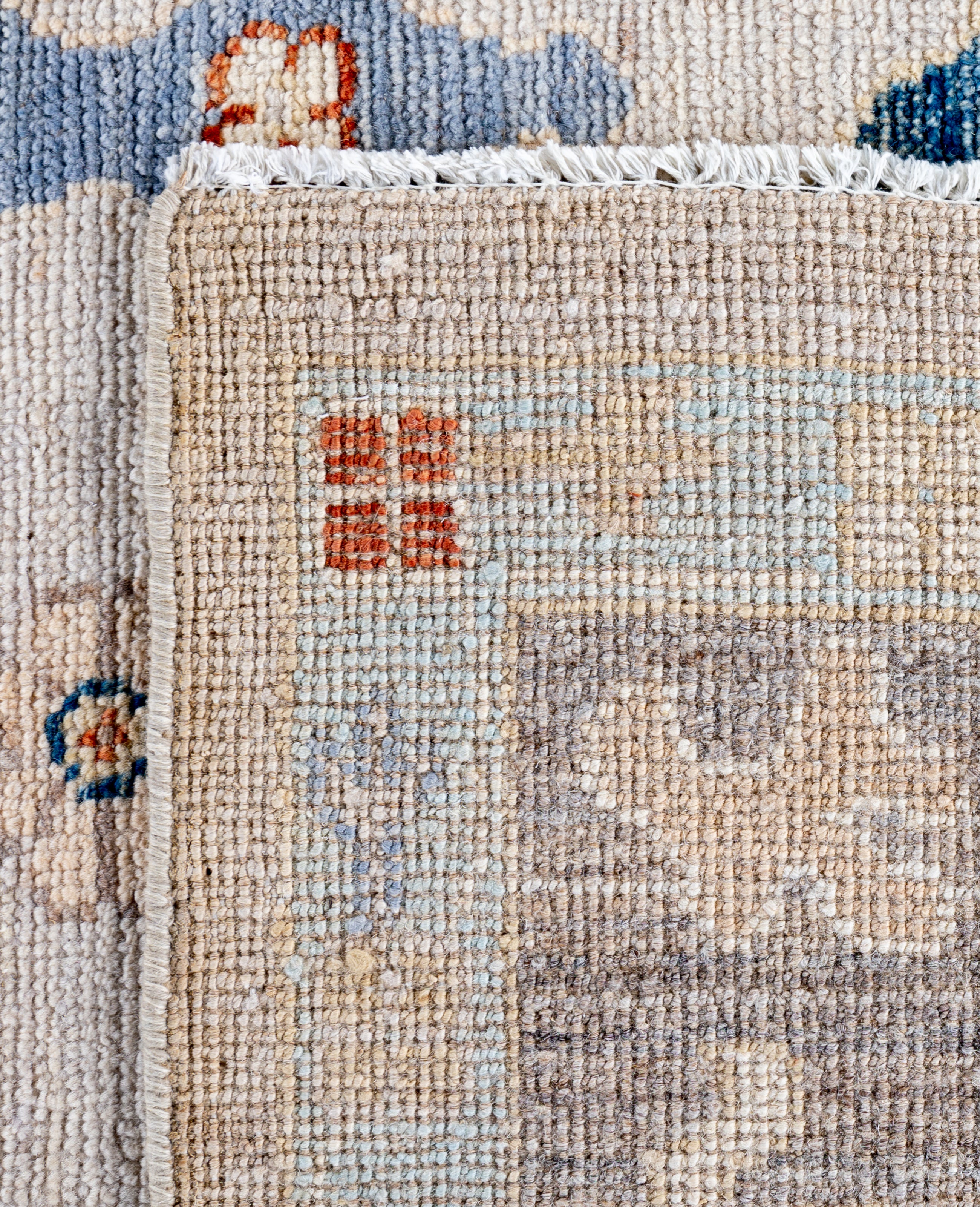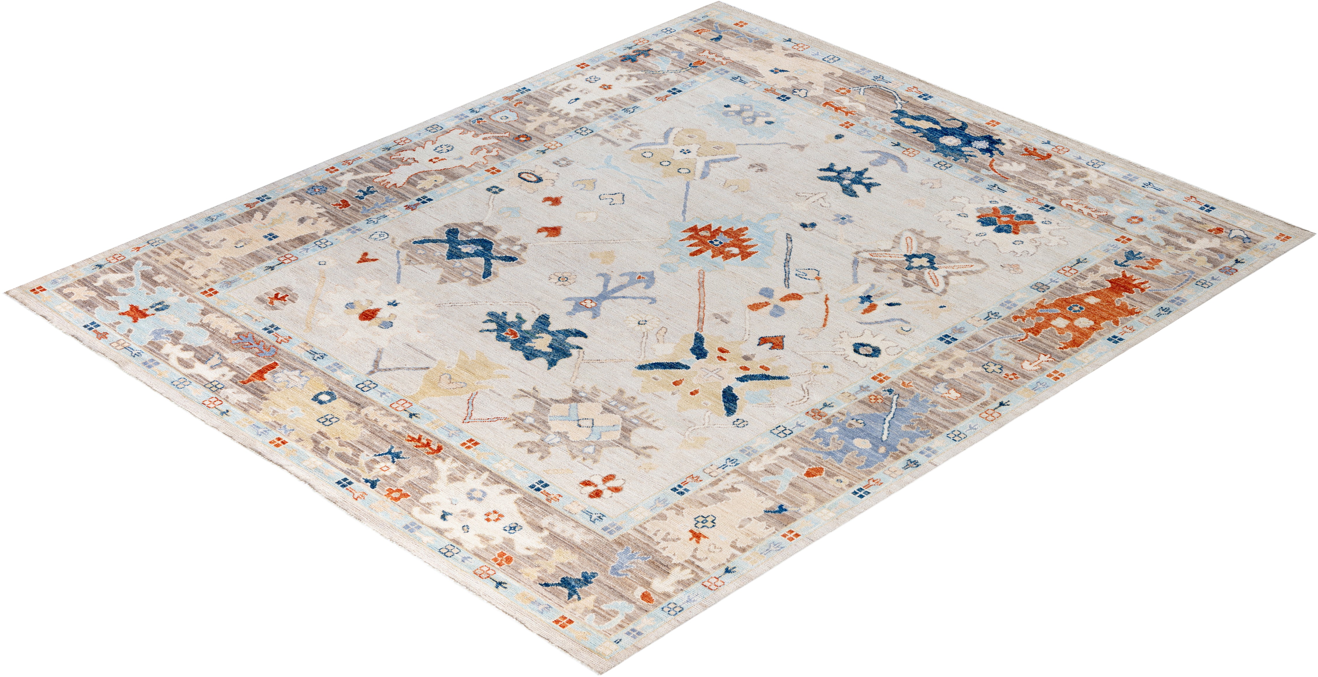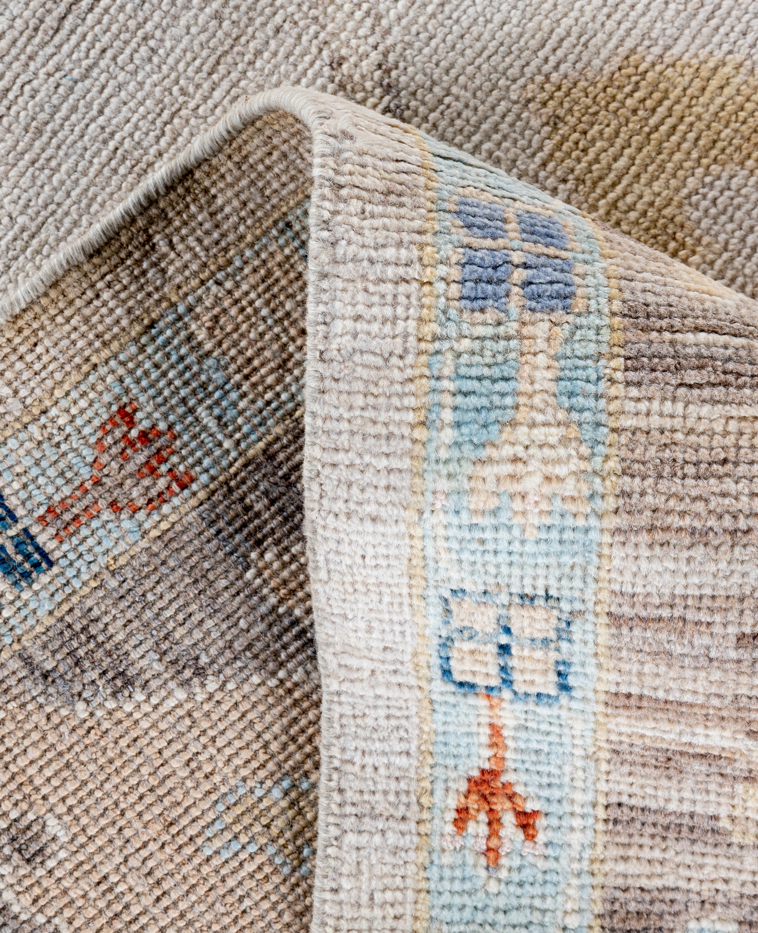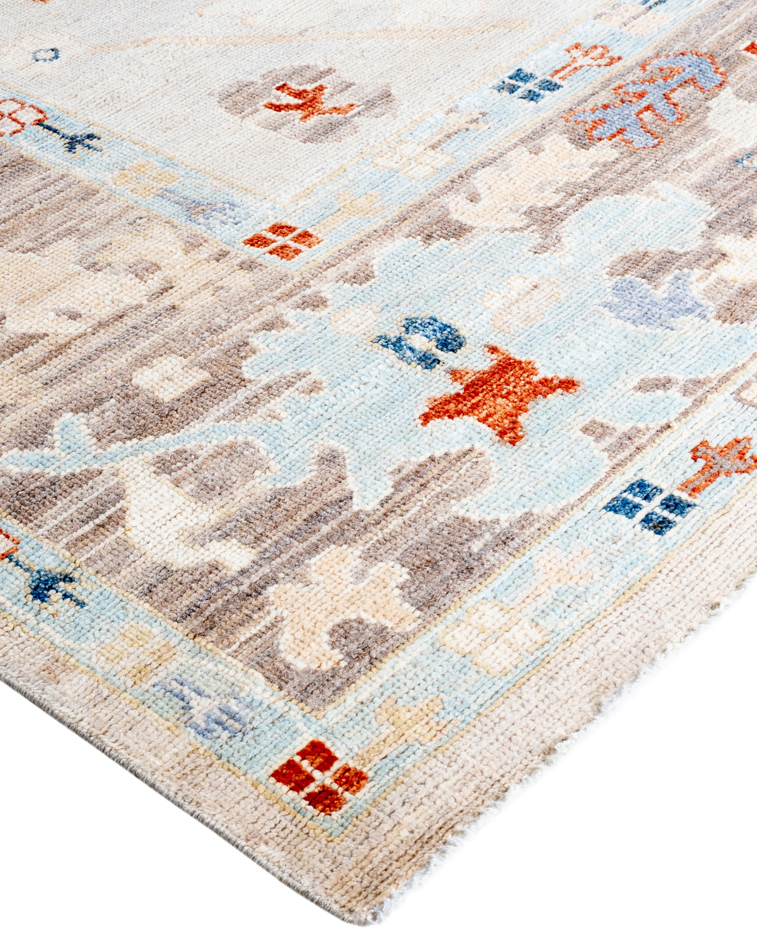 Oushak rugs are known for their soft, muted color palettes and large-scale, flowing designs. They often feature soft tones like beige, cream, gold, and light blue, with motifs that include palmettes, vines, and geometric shapes. These rugs are distinguished by their loose, open patterns, giving them an airy and elegant feel. Originating from the town of Oushak, they emphasize simplicity and a more relaxed aesthetic compared to other ornate designs. Hand-knotted using high-quality wool, Oushak rugs are celebrated for their luxurious texture and durability. Their timeless, understated beauty makes them popular in both traditional and contemporary interiors.