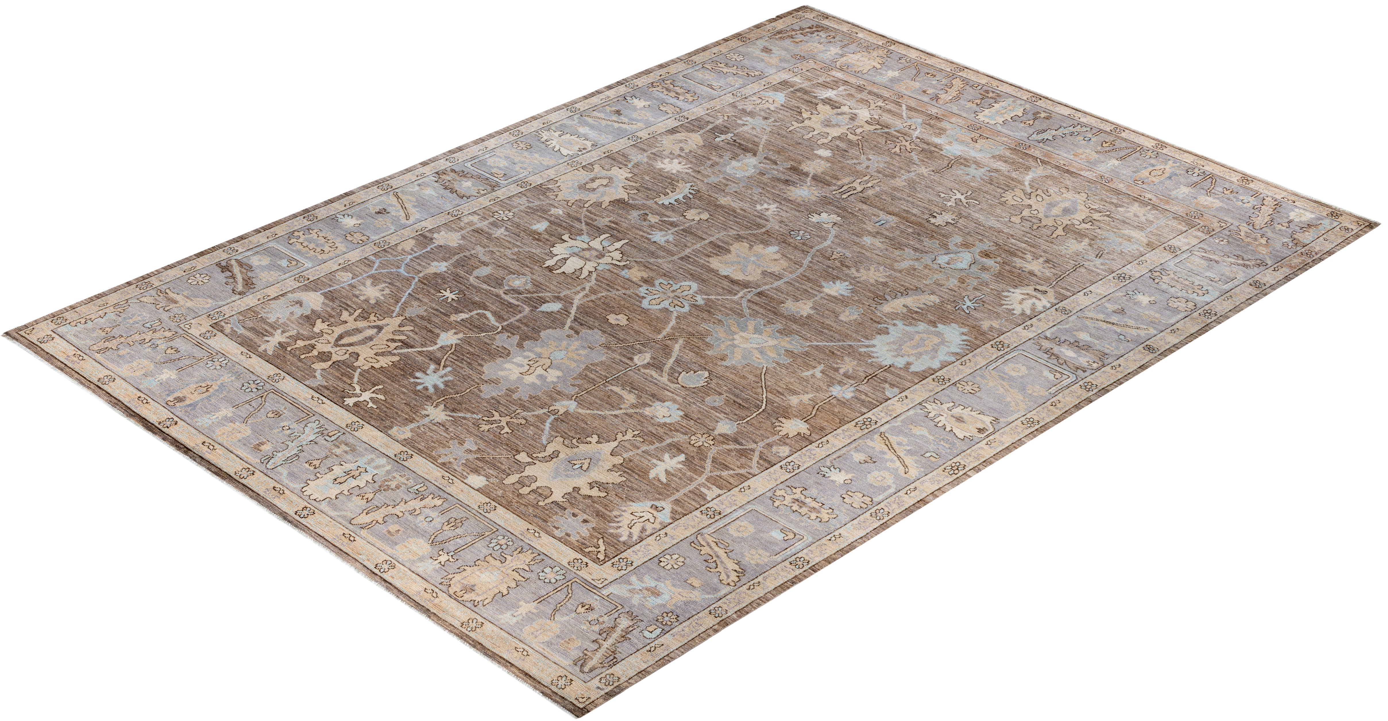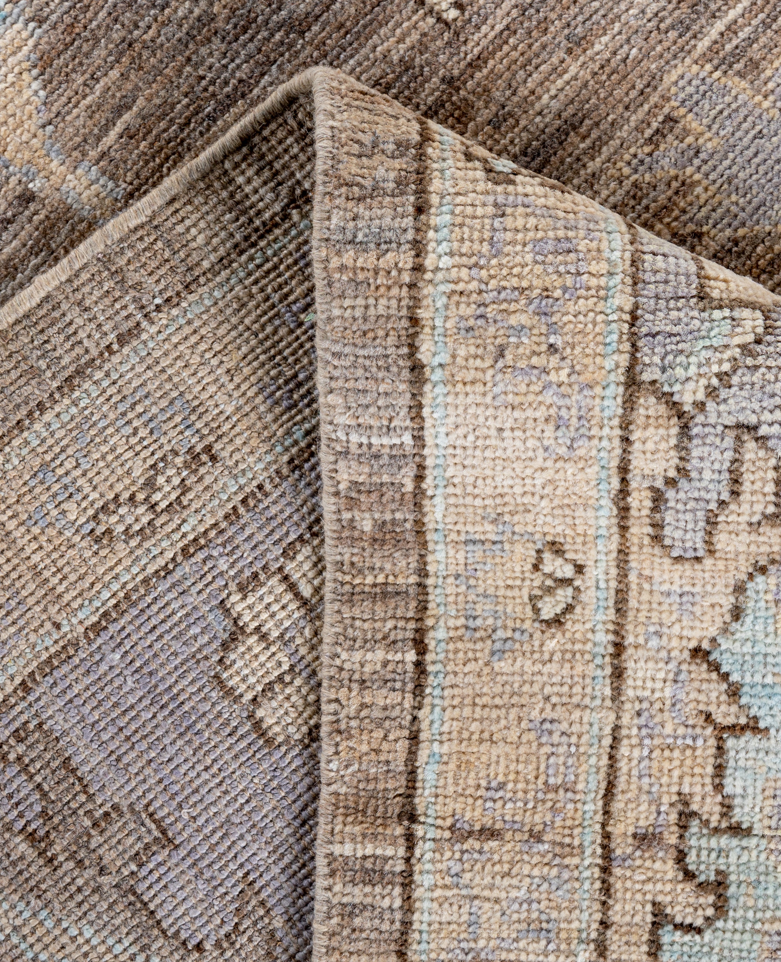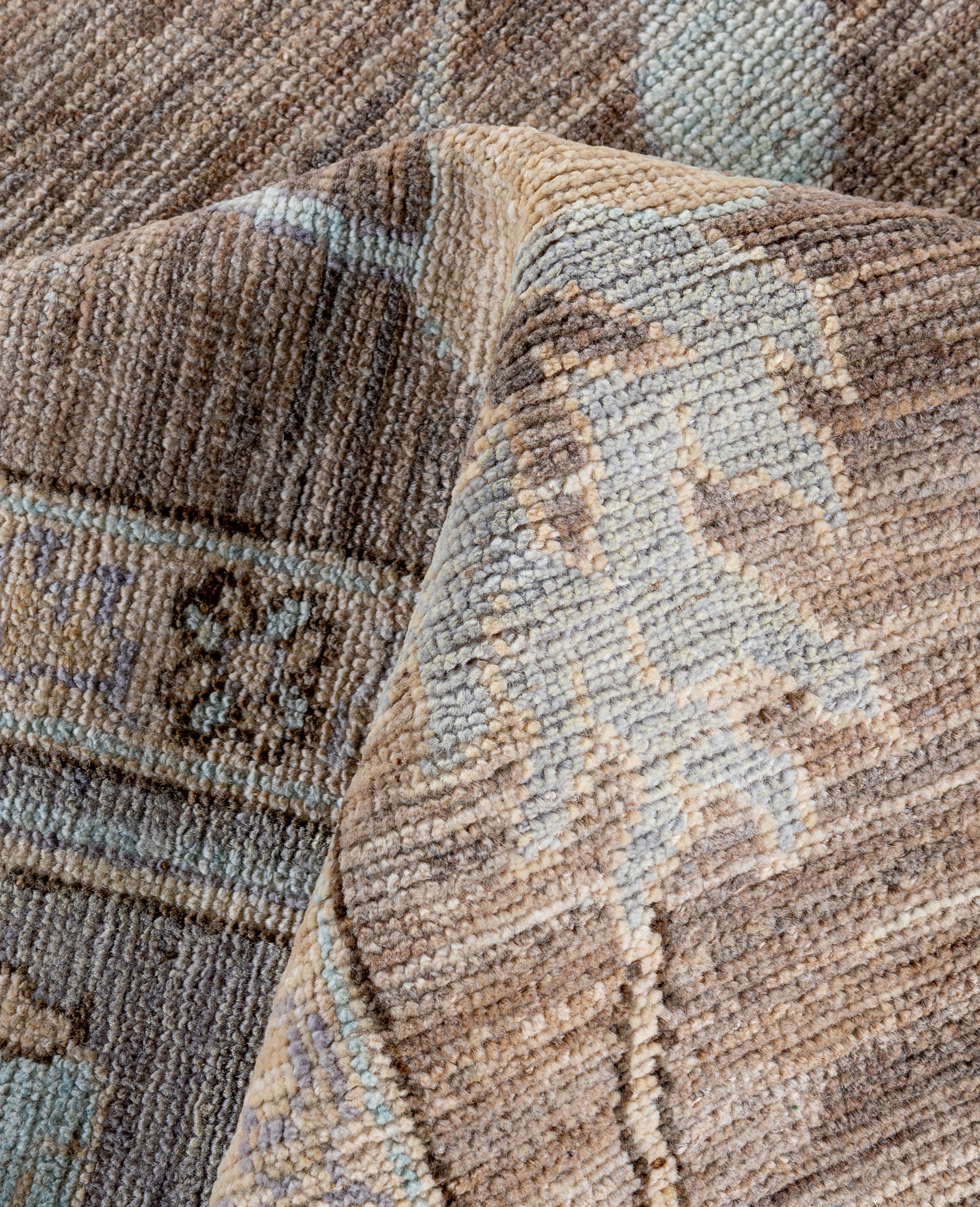 Oushak rugs are known for their soft, muted color palettes and large-scale, flowing designs. They often feature soft tones like beige, cream, gold, and light blue, with motifs that include palmettes, vines, and geometric shapes. These rugs are distinguished by their loose, open patterns, giving them an airy and elegant feel. Originating from the town of Oushak, they emphasize simplicity and a more relaxed aesthetic compared to other ornate designs. Hand-knotted using high-quality wool, Oushak rugs are celebrated for their luxurious texture and durability. Their timeless, understated beauty makes them popular in both traditional and contemporary interiors.