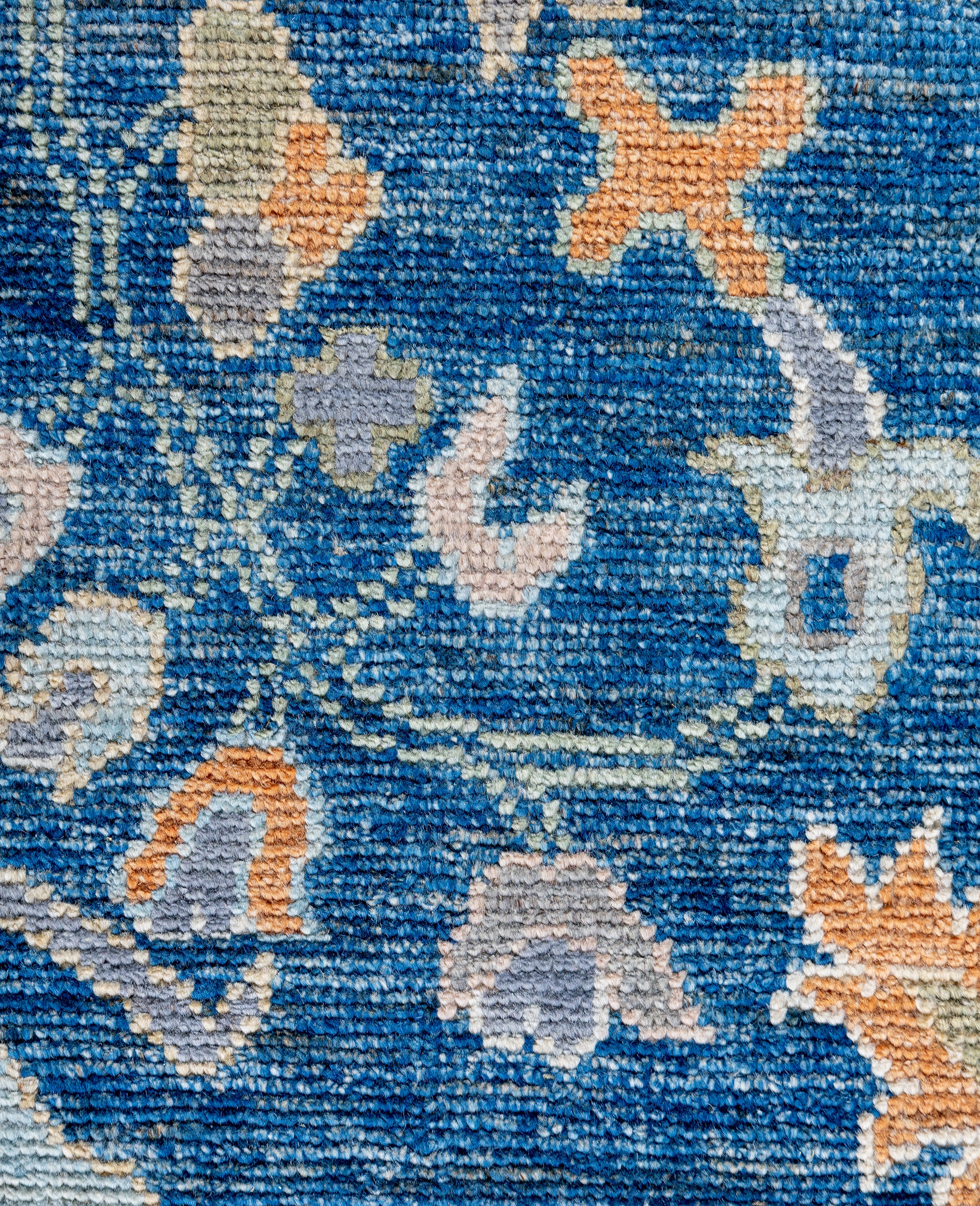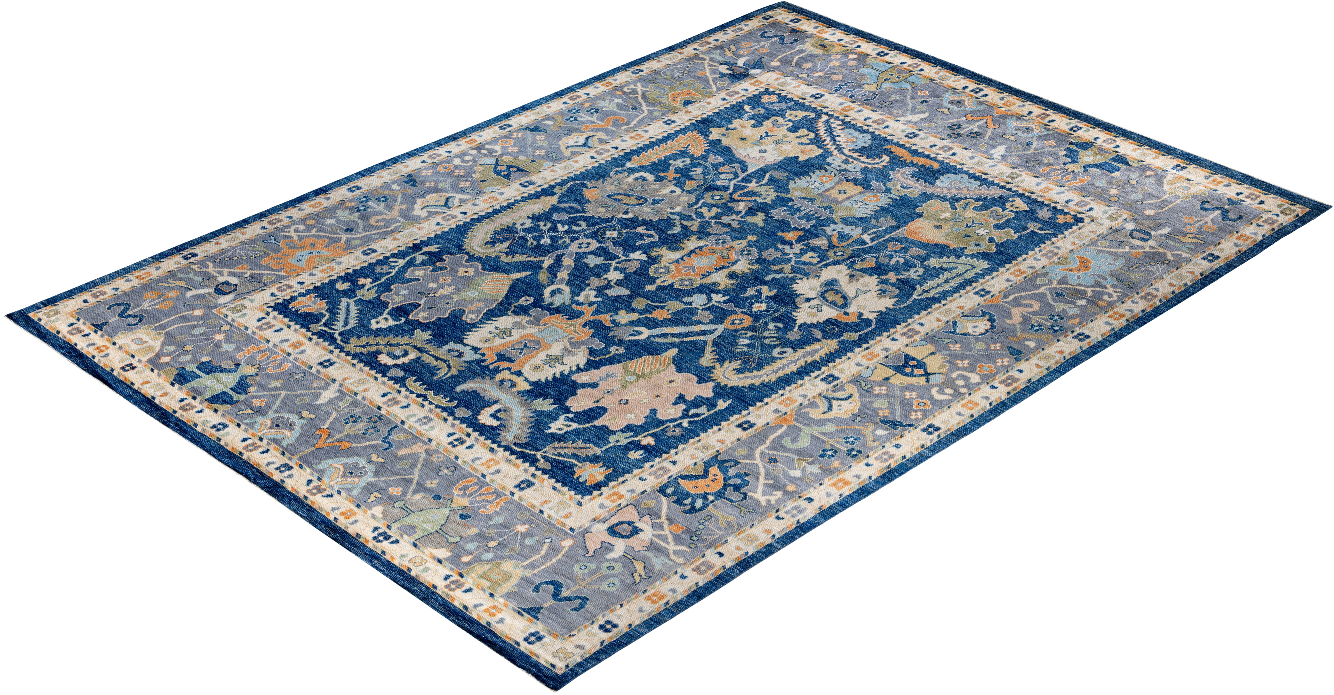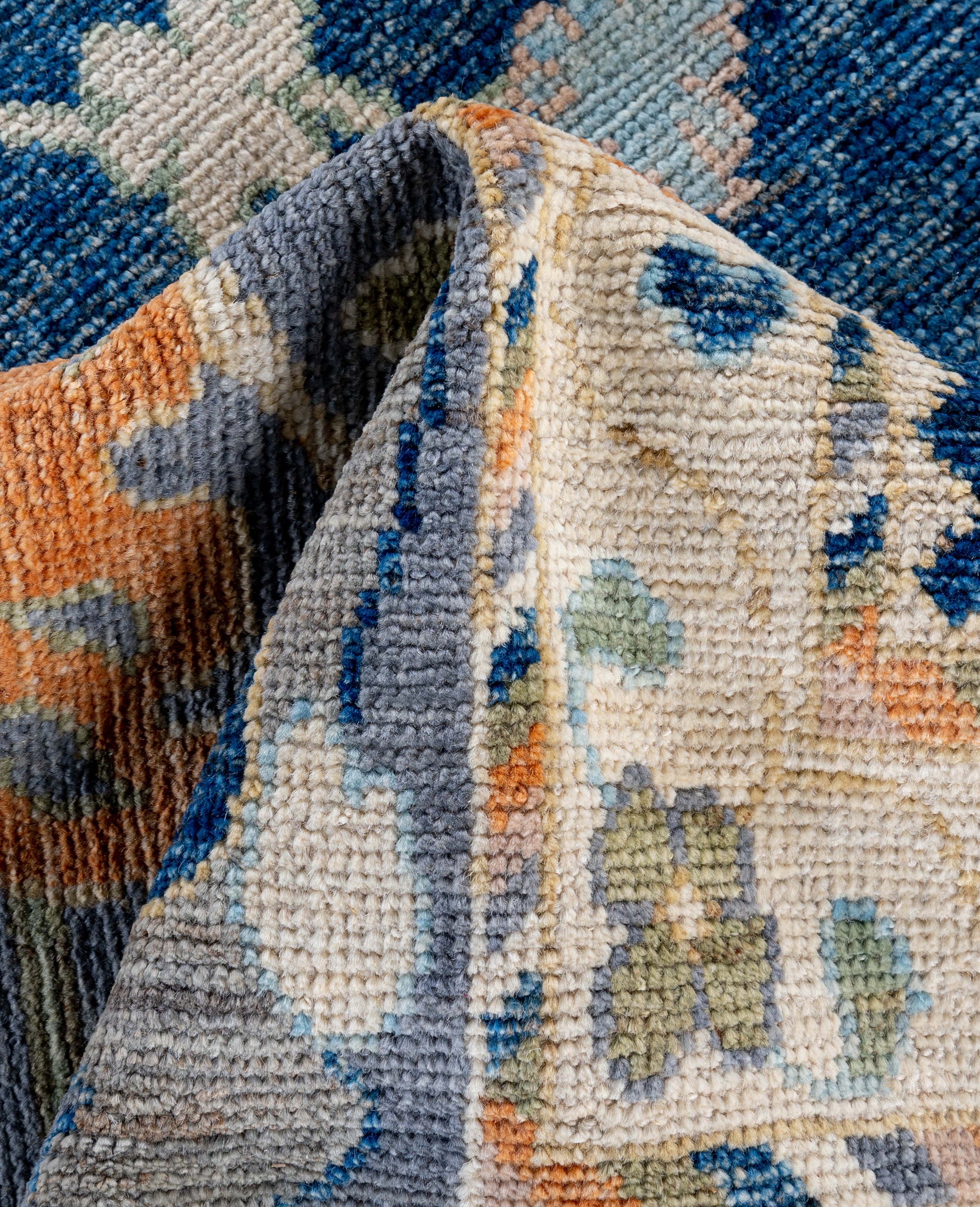 Oushak rugs are known for their soft, muted color palettes and large-scale, flowing designs. They often feature soft tones like beige, cream, gold, and light blue, with motifs that include palmettes, vines, and geometric shapes. These rugs are distinguished by their loose, open patterns, giving them an airy and elegant feel. Originating from the town of Oushak, they emphasize simplicity and a more relaxed aesthetic compared to other ornate designs. Hand-knotted using high-quality wool, Oushak rugs are celebrated for their luxurious texture and durability. Their timeless, understated beauty makes them popular in both traditional and contemporary interiors.