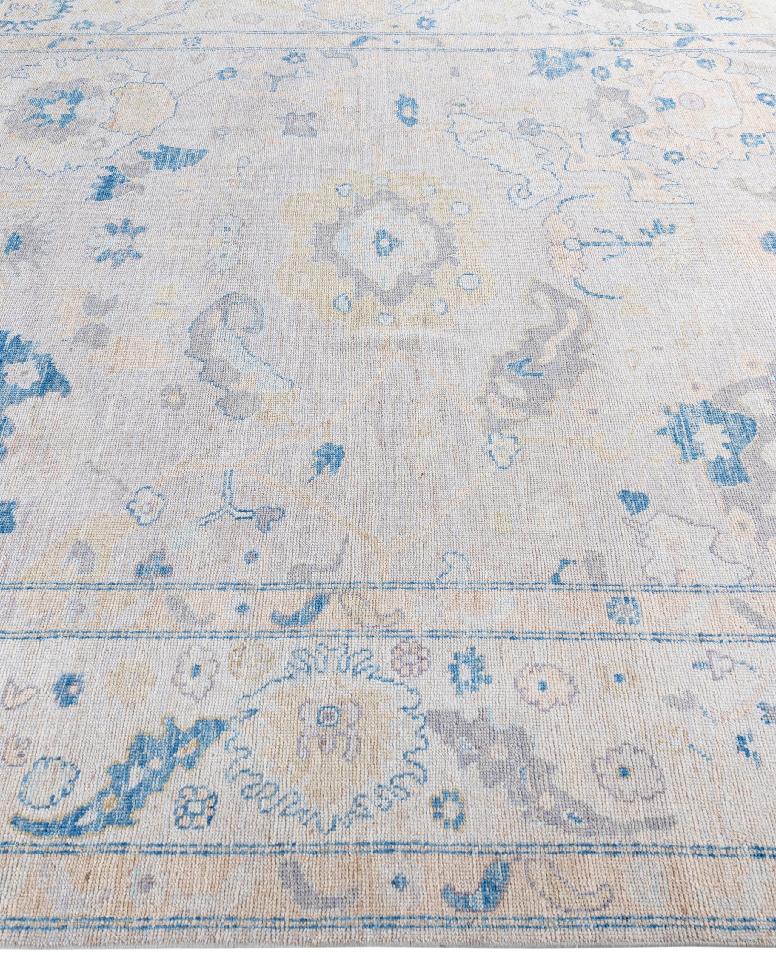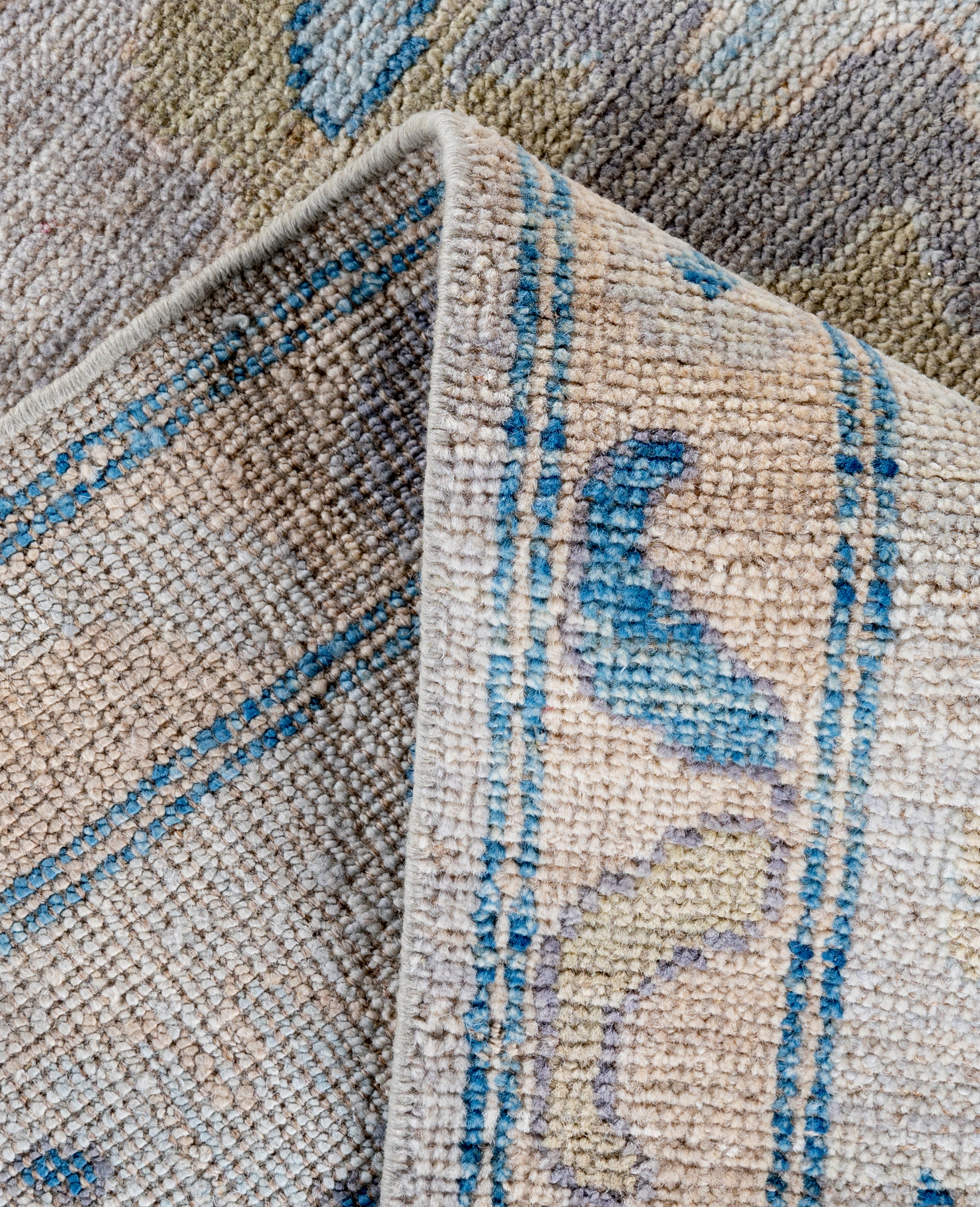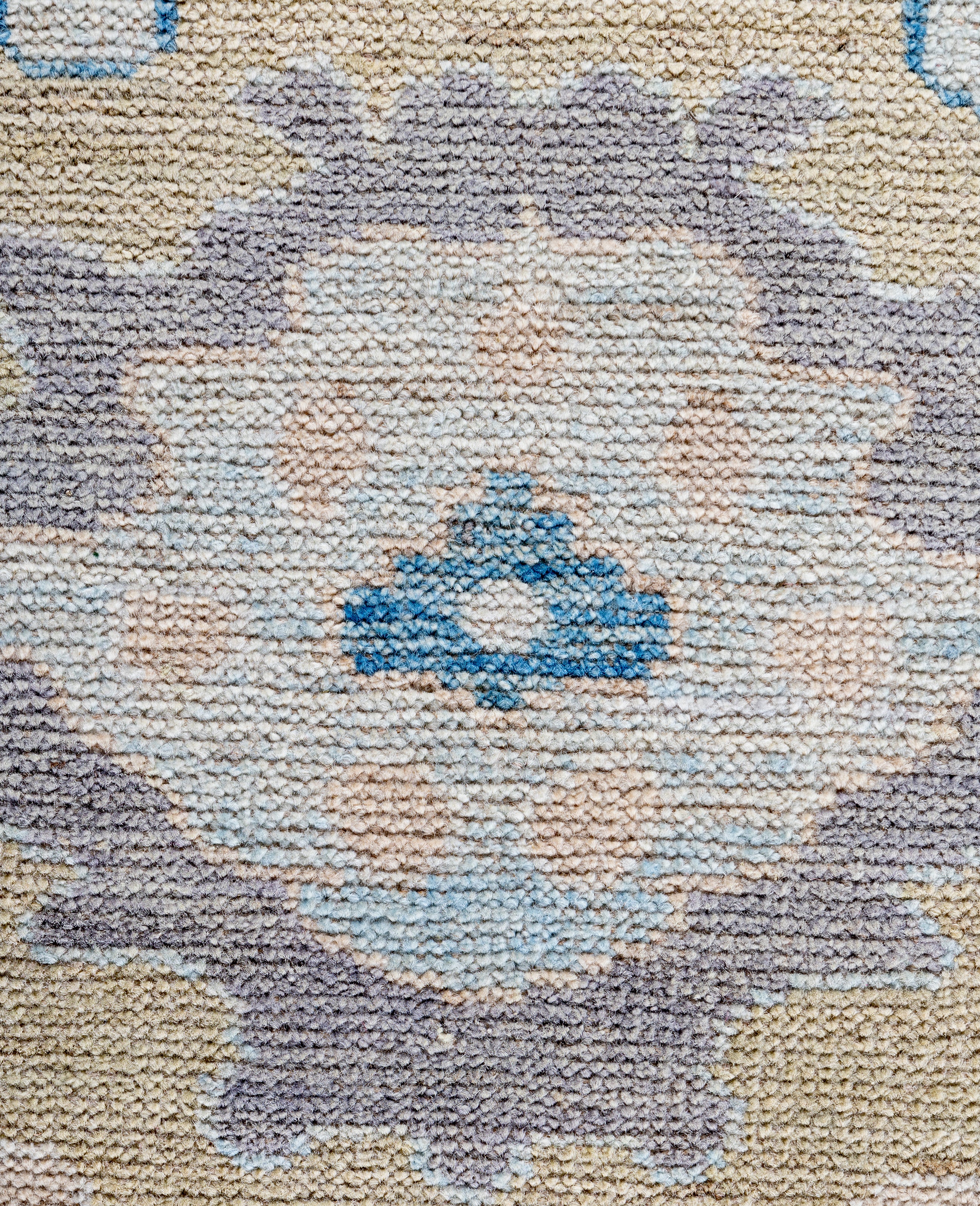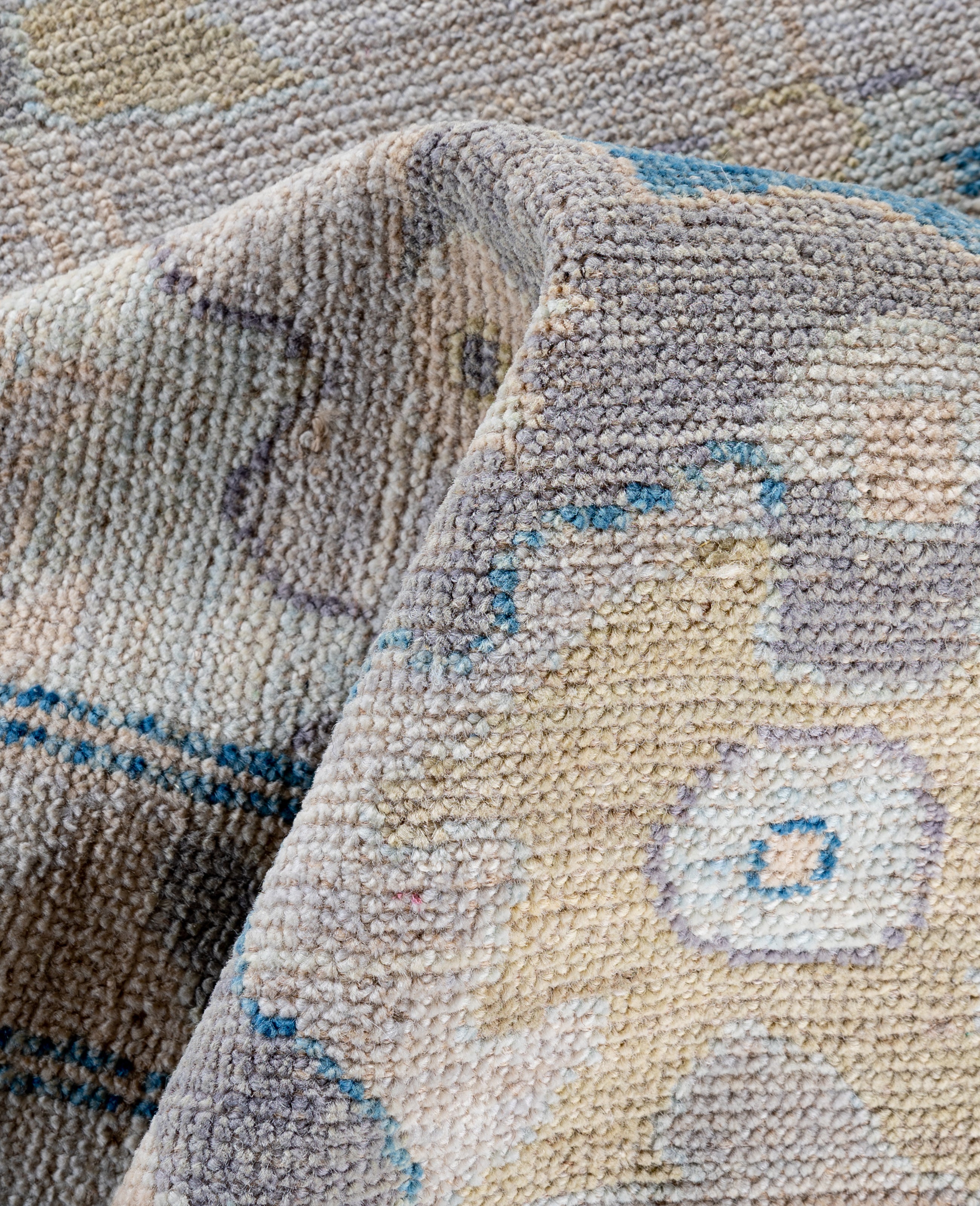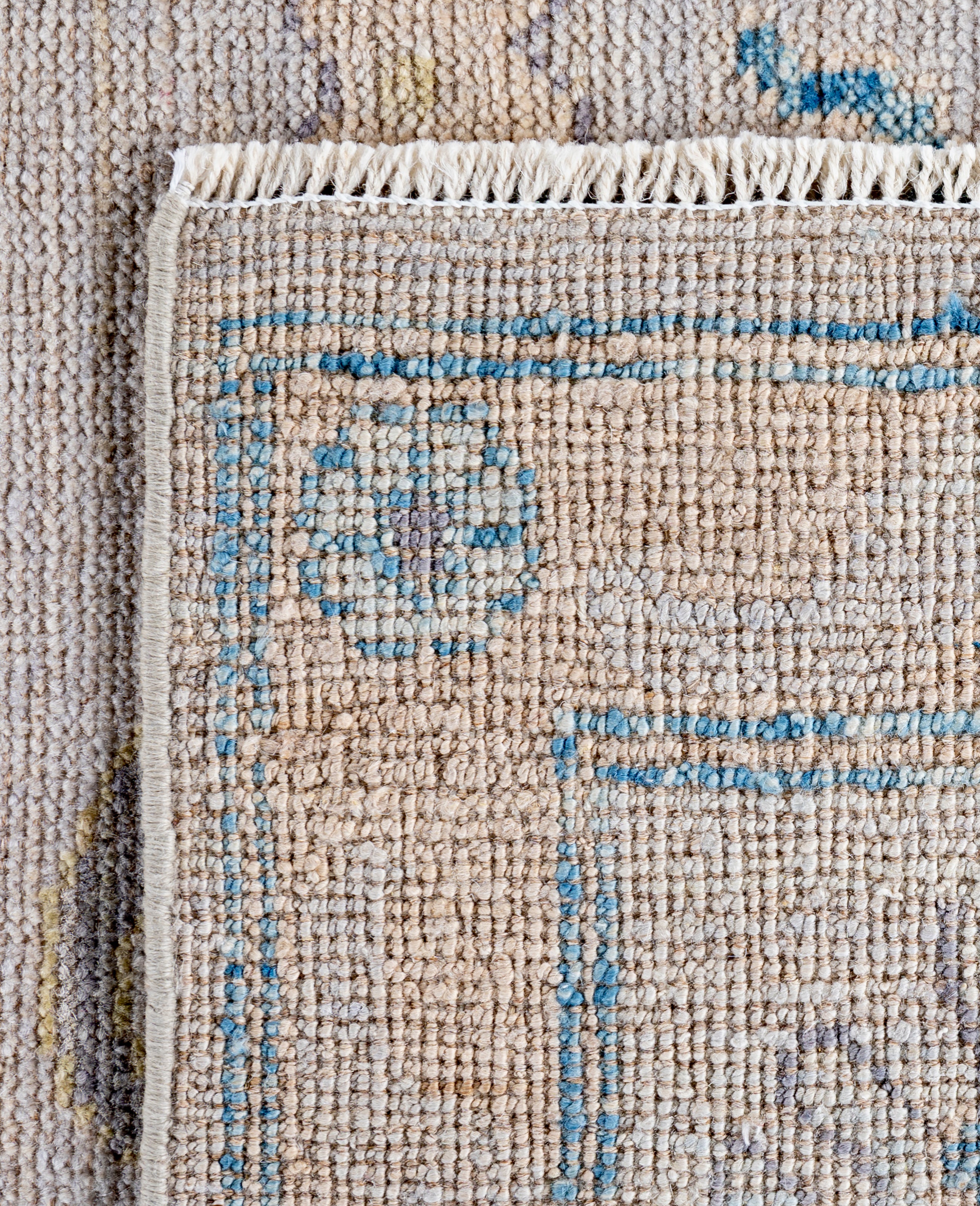 Oushak rugs are known for their soft, muted color palettes and large-scale, flowing designs. They often feature soft tones like beige, cream, gold, and light blue, with motifs that include palmettes, vines, and geometric shapes. These rugs are distinguished by their loose, open patterns, giving them an airy and elegant feel. Originating from the town of Oushak, they emphasize simplicity and a more relaxed aesthetic compared to other ornate designs. Hand-knotted using high-quality wool, Oushak rugs are celebrated for their luxurious texture and durability. Their timeless, understated beauty makes them popular in both traditional and contemporary interiors.