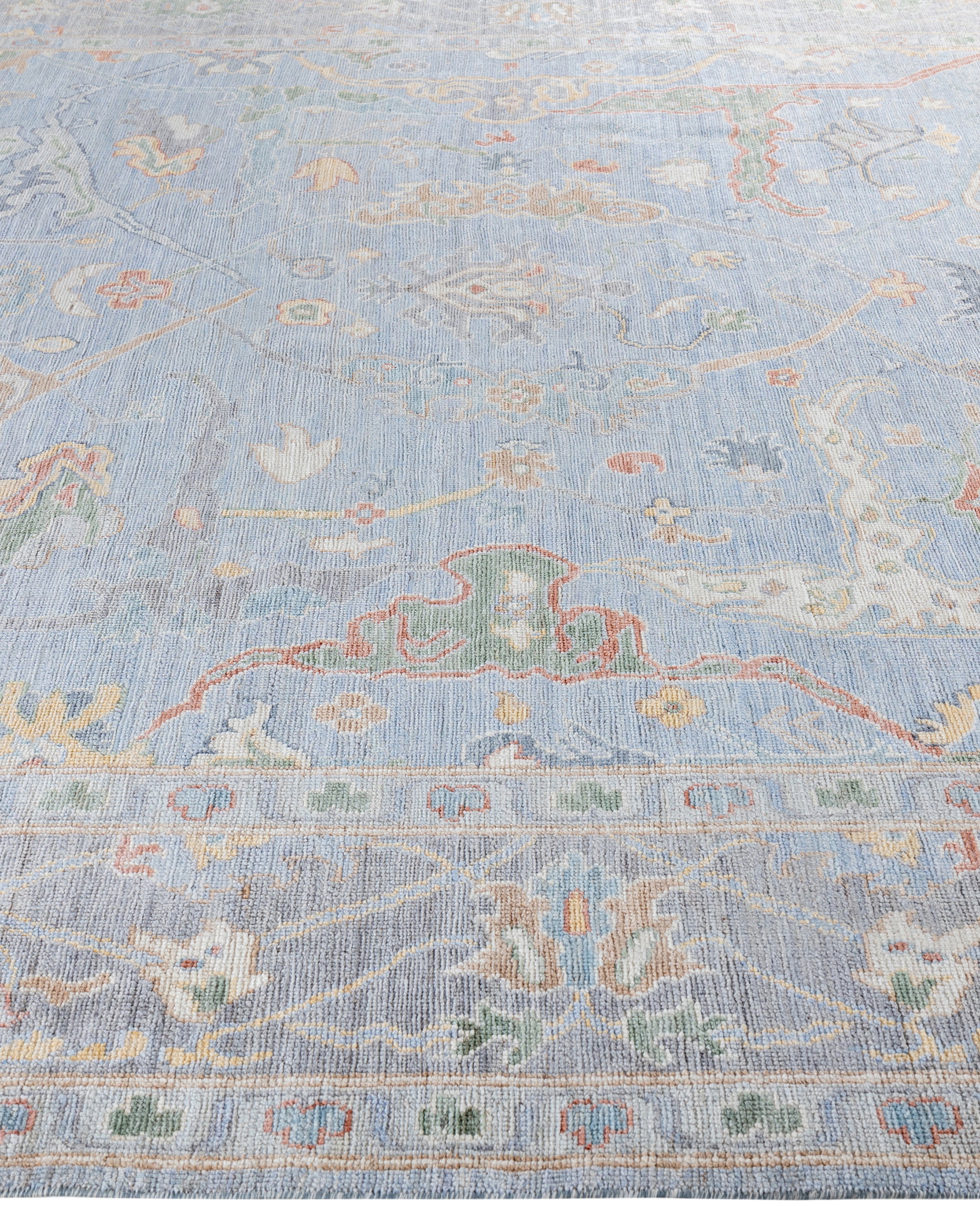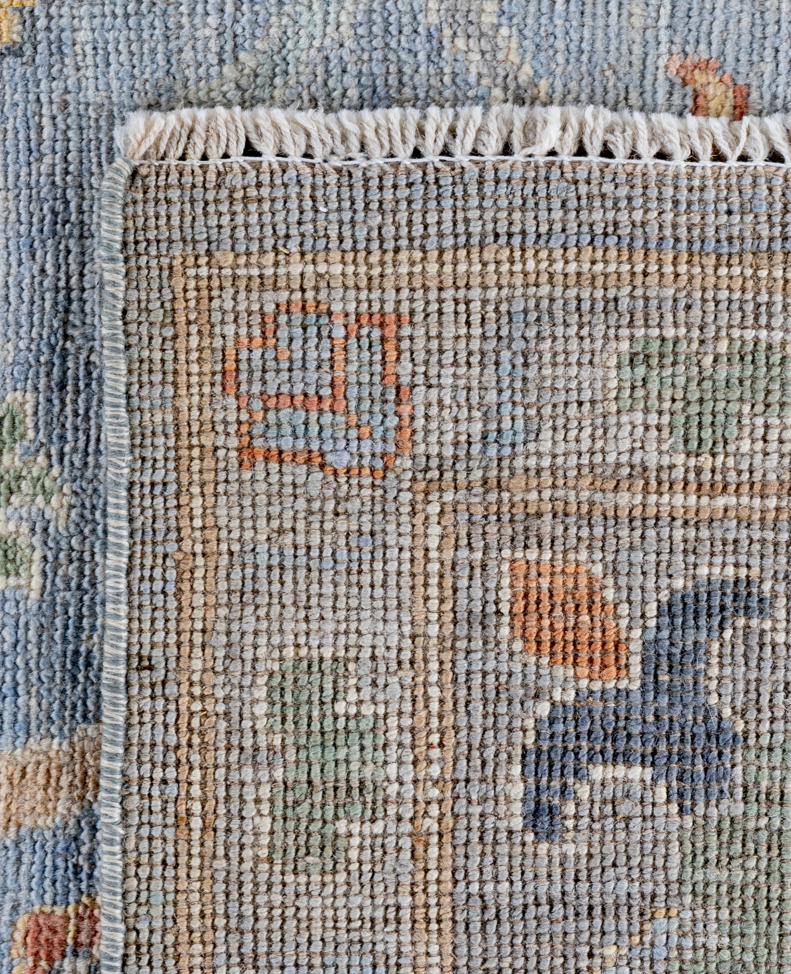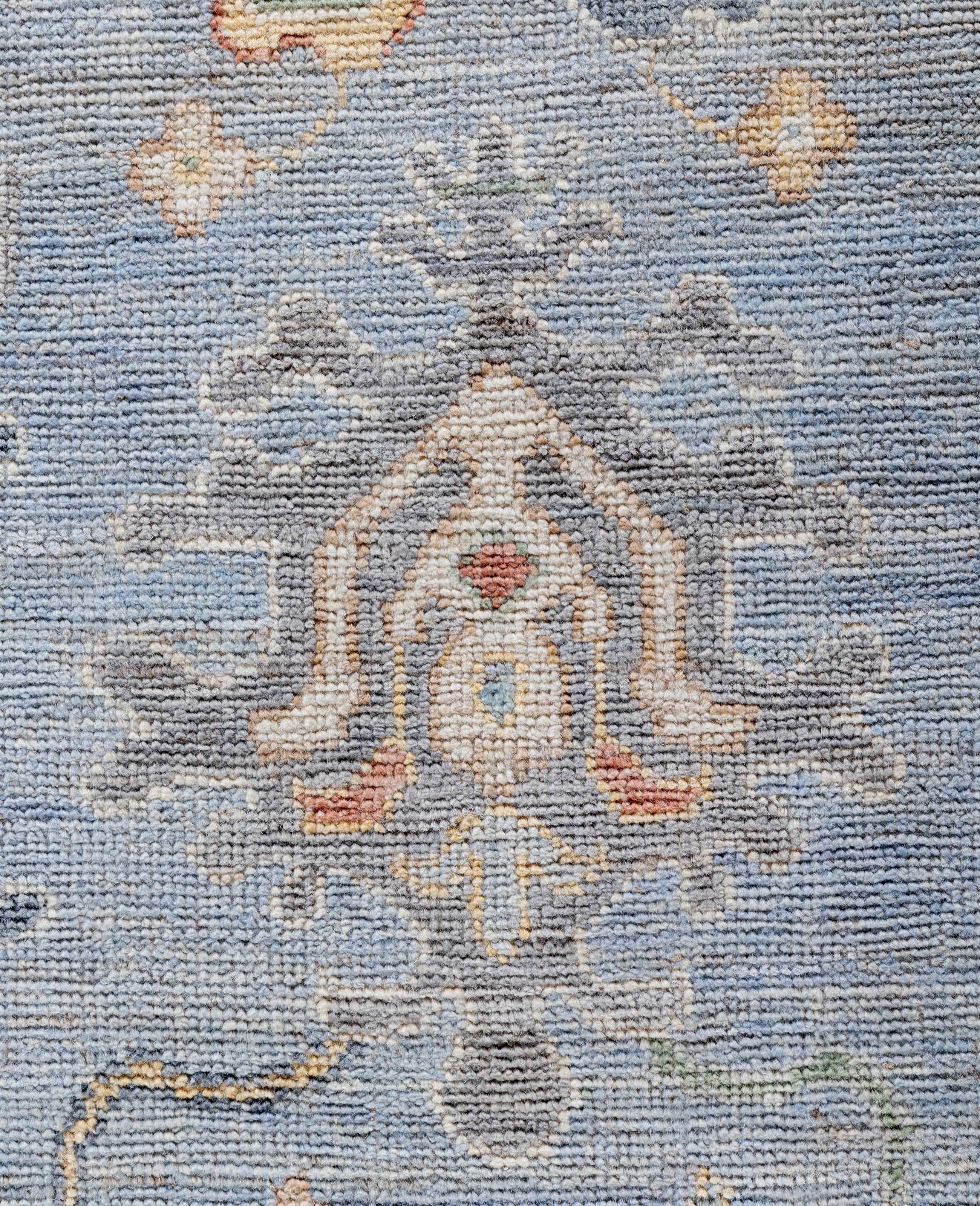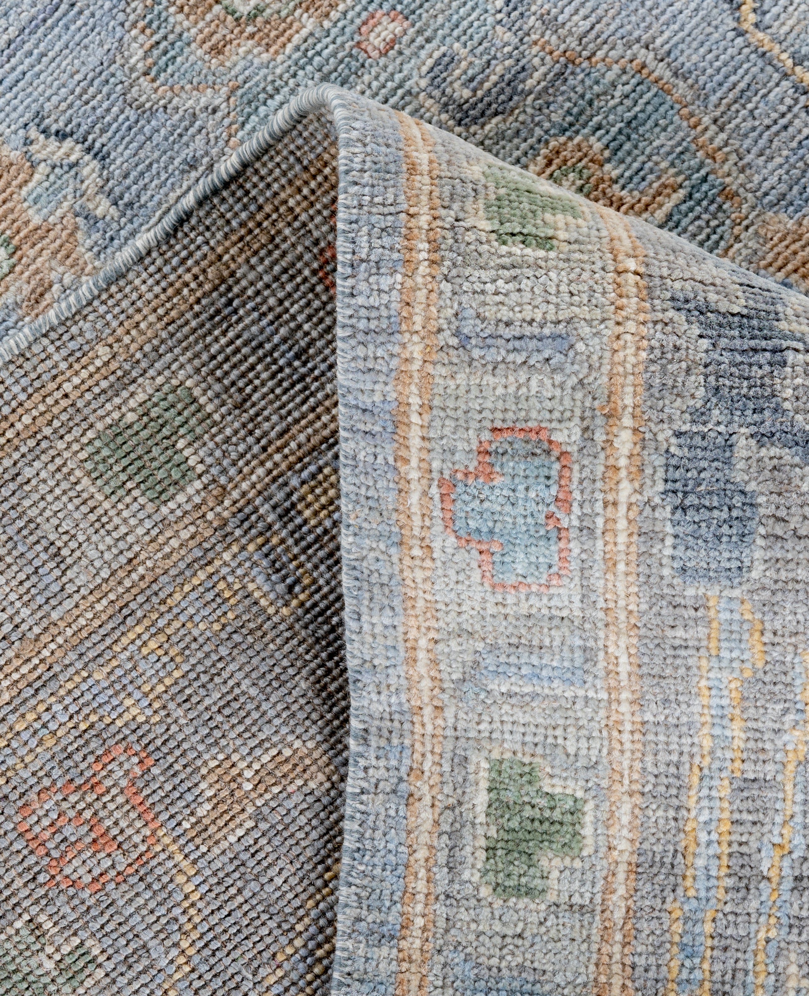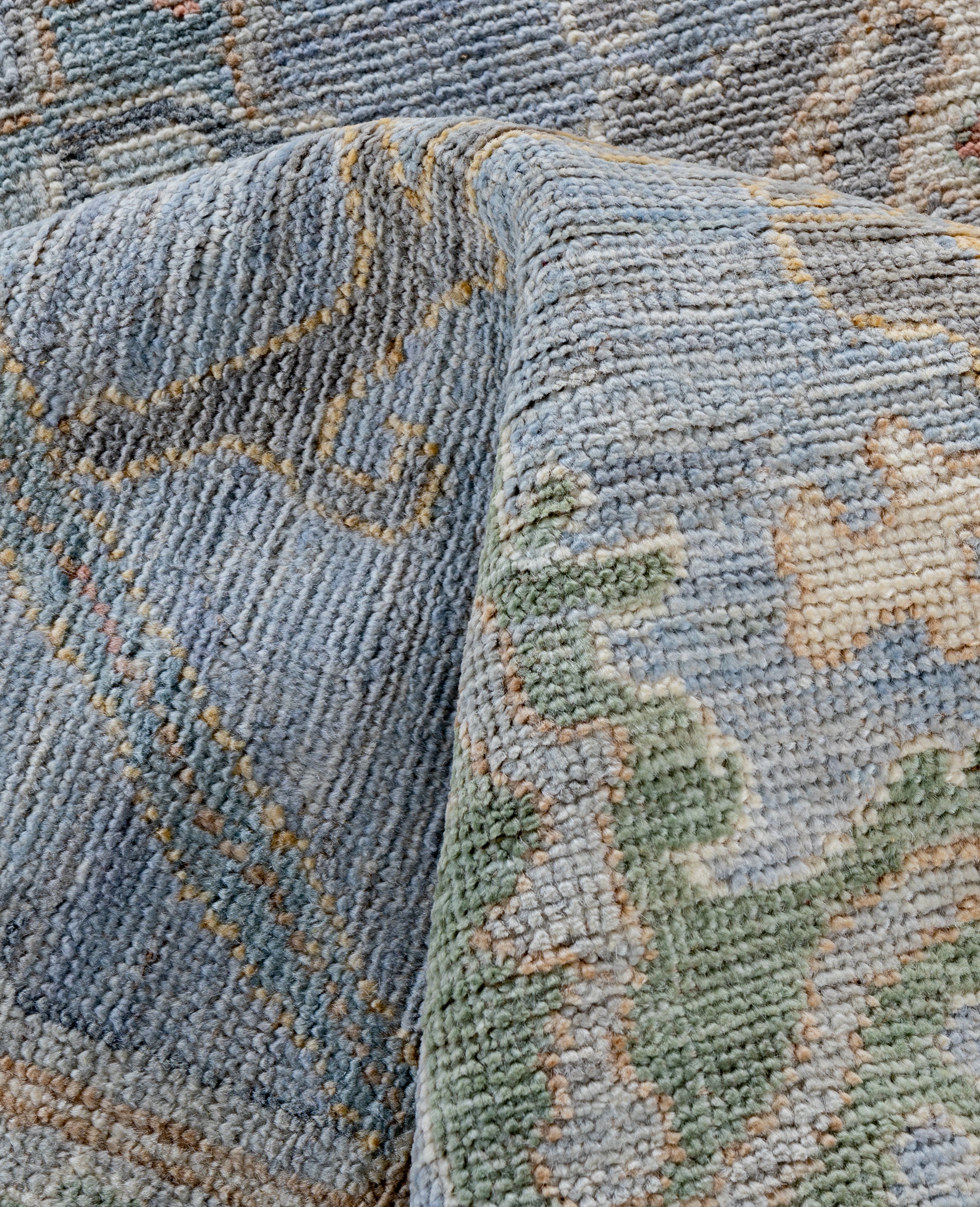 Oushak rugs are known for their soft, muted color palettes and large-scale, flowing designs. They often feature soft tones like beige, cream, gold, and light blue, with motifs that include palmettes, vines, and geometric shapes. These rugs are distinguished by their loose, open patterns, giving them an airy and elegant feel. Originating from the town of Oushak, they emphasize simplicity and a more relaxed aesthetic compared to other ornate designs. Hand-knotted using high-quality wool, Oushak rugs are celebrated for their luxurious texture and durability. Their timeless, understated beauty makes them popular in both traditional and contemporary interiors.