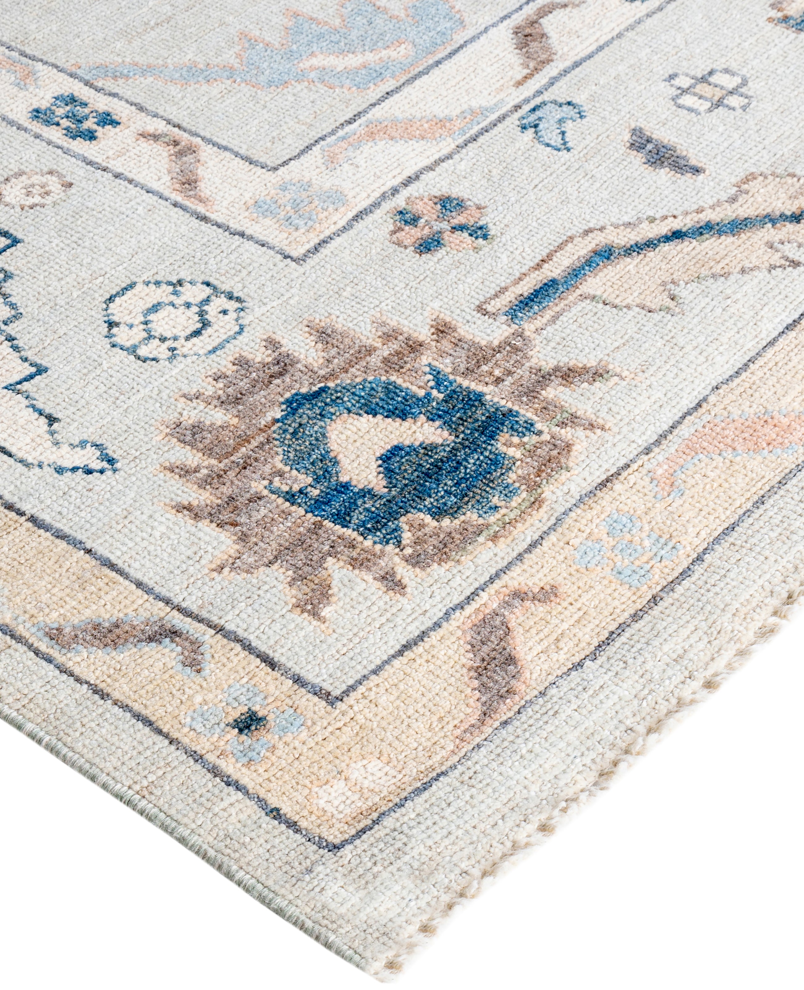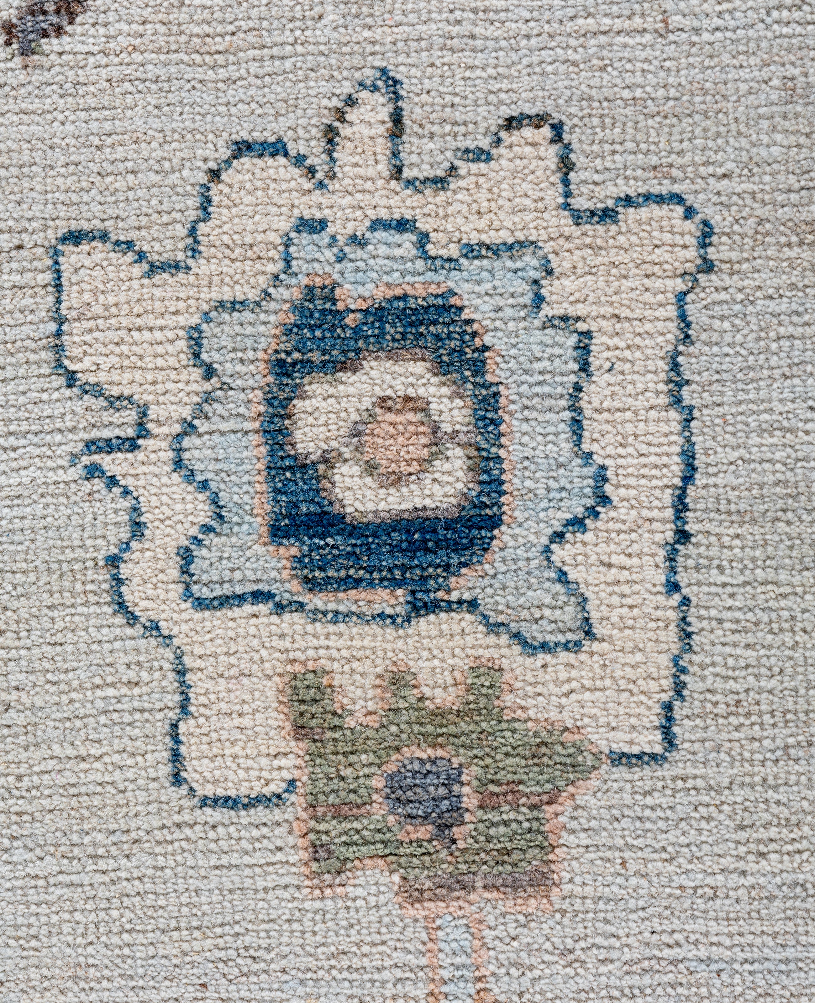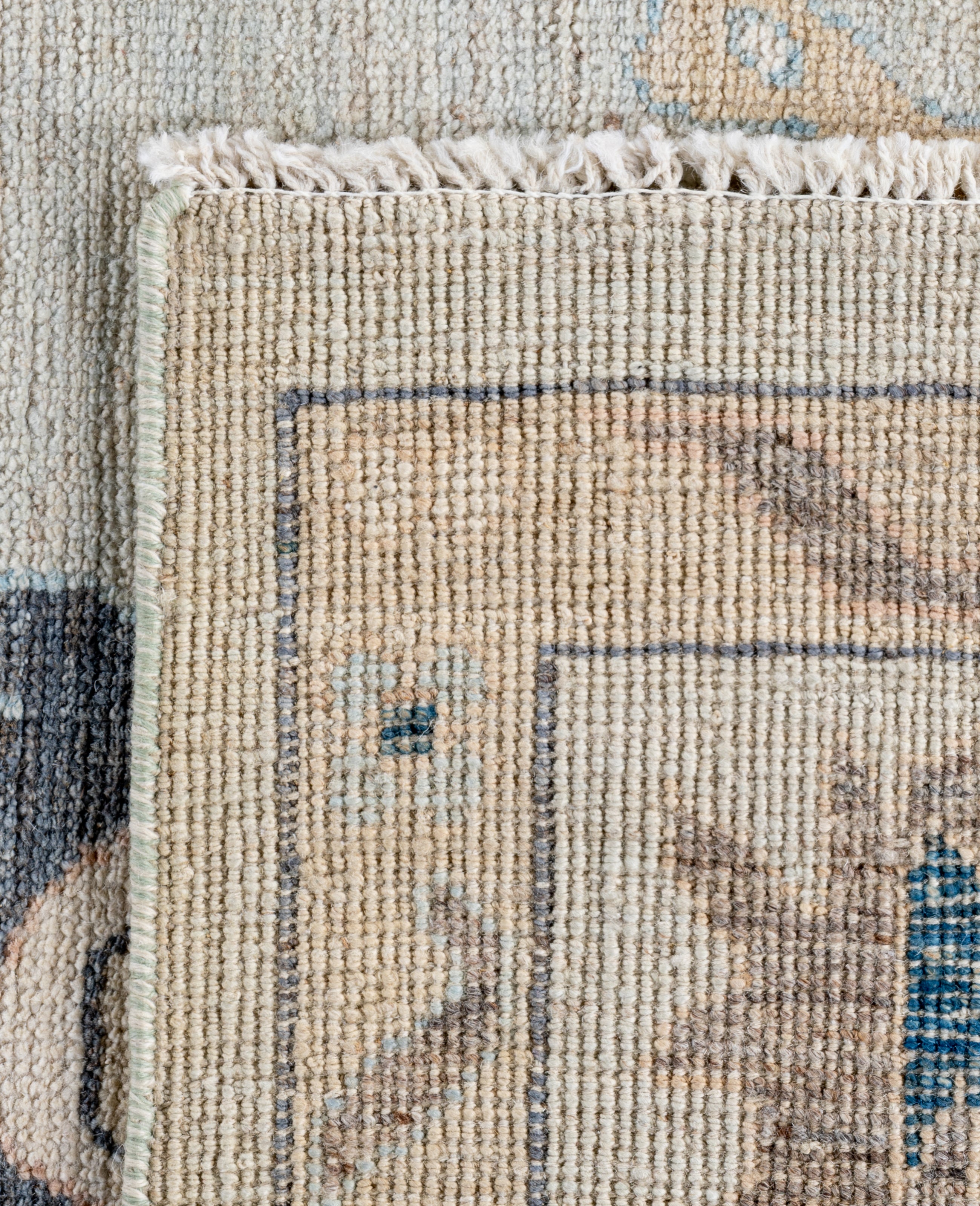 Oushak rugs are known for their soft, muted color palettes and large-scale, flowing designs. They often feature soft tones like beige, cream, gold, and light blue, with motifs that include palmettes, vines, and geometric shapes. These rugs are distinguished by their loose, open patterns, giving them an airy and elegant feel. Originating from the town of Oushak, they emphasize simplicity and a more relaxed aesthetic compared to other ornate designs. Hand-knotted using high-quality wool, Oushak rugs are celebrated for their luxurious texture and durability. Their timeless, understated beauty makes them popular in both traditional and contemporary interiors.