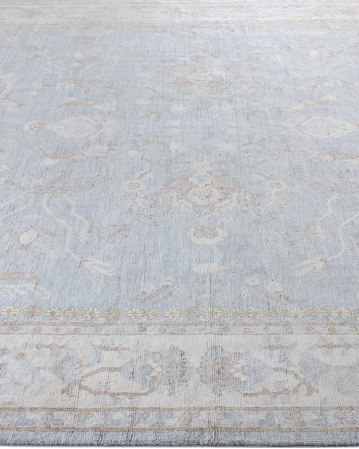 Originating centuries ago in what is now Turkey, Oushak rugs have long been sought after for their intricate patterns, lush yet subtle colors, and soft luster. These rugs continue that tradition. Hand-knotted of wool by skilled artisans, they will last for years—especially fortunate given that they will never fall out of fashion.