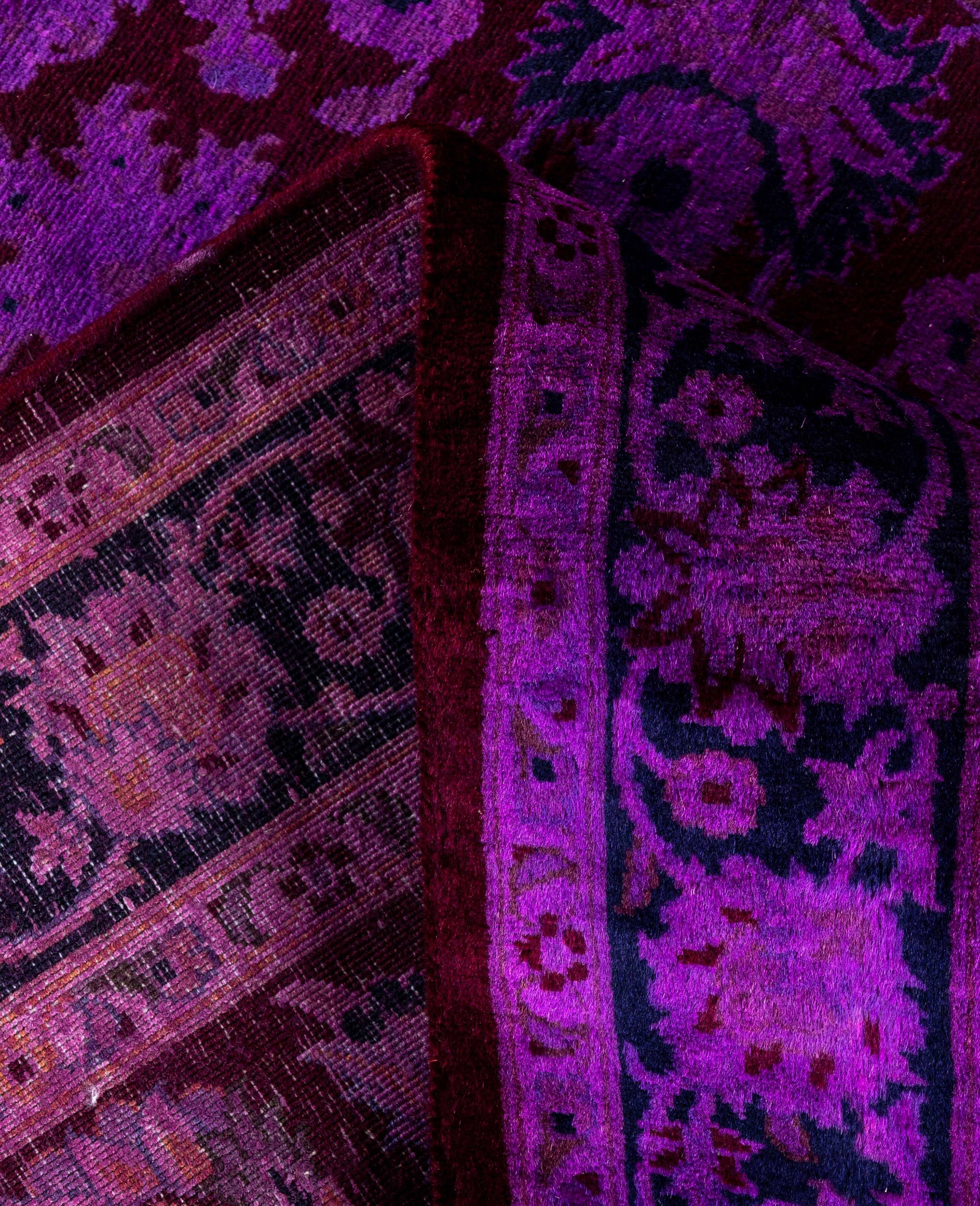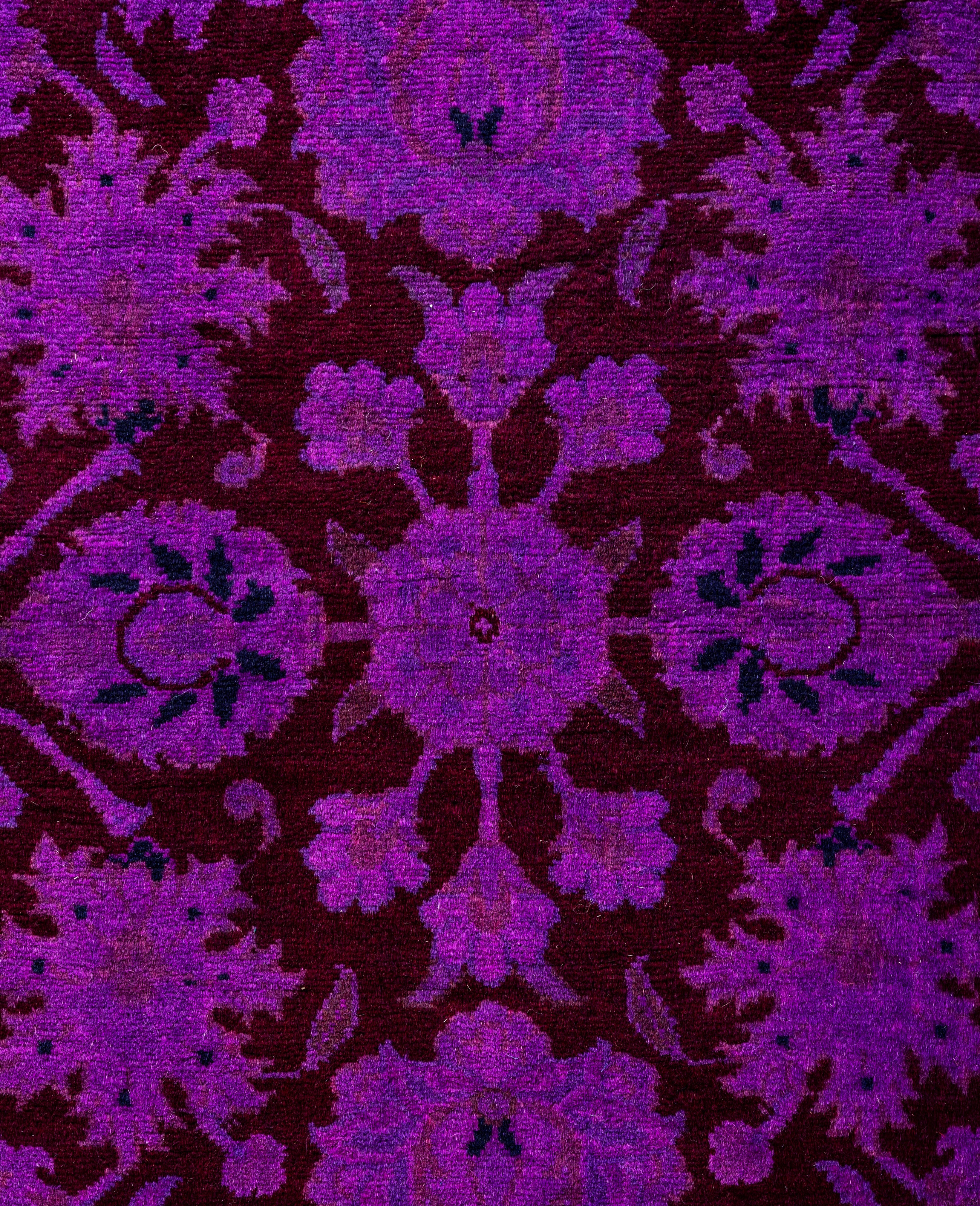 Over-dyed area rugs are created by taking vintage or traditional rugs and applying a vibrant, monochromatic dye over the existing patterns. This technique results in a bold, modern aesthetic while preserving the intricate designs beneath, blending the old with the new. The rugs are often faded and distressed before dyeing, which adds texture and depth to their appearance. The over-dye process breathes new life into worn or antique rugs, giving them a contemporary twist with rich, saturated colors like deep blues, purples, or bright reds. These rugs work well in both eclectic and modern spaces, offering a unique, artistic flair to any room. They provide a dynamic focal point, balancing between traditional craftsmanship and contemporary design trends. Over-dyed rugs are perfect for those looking to add a pop of color and character to their home decor.