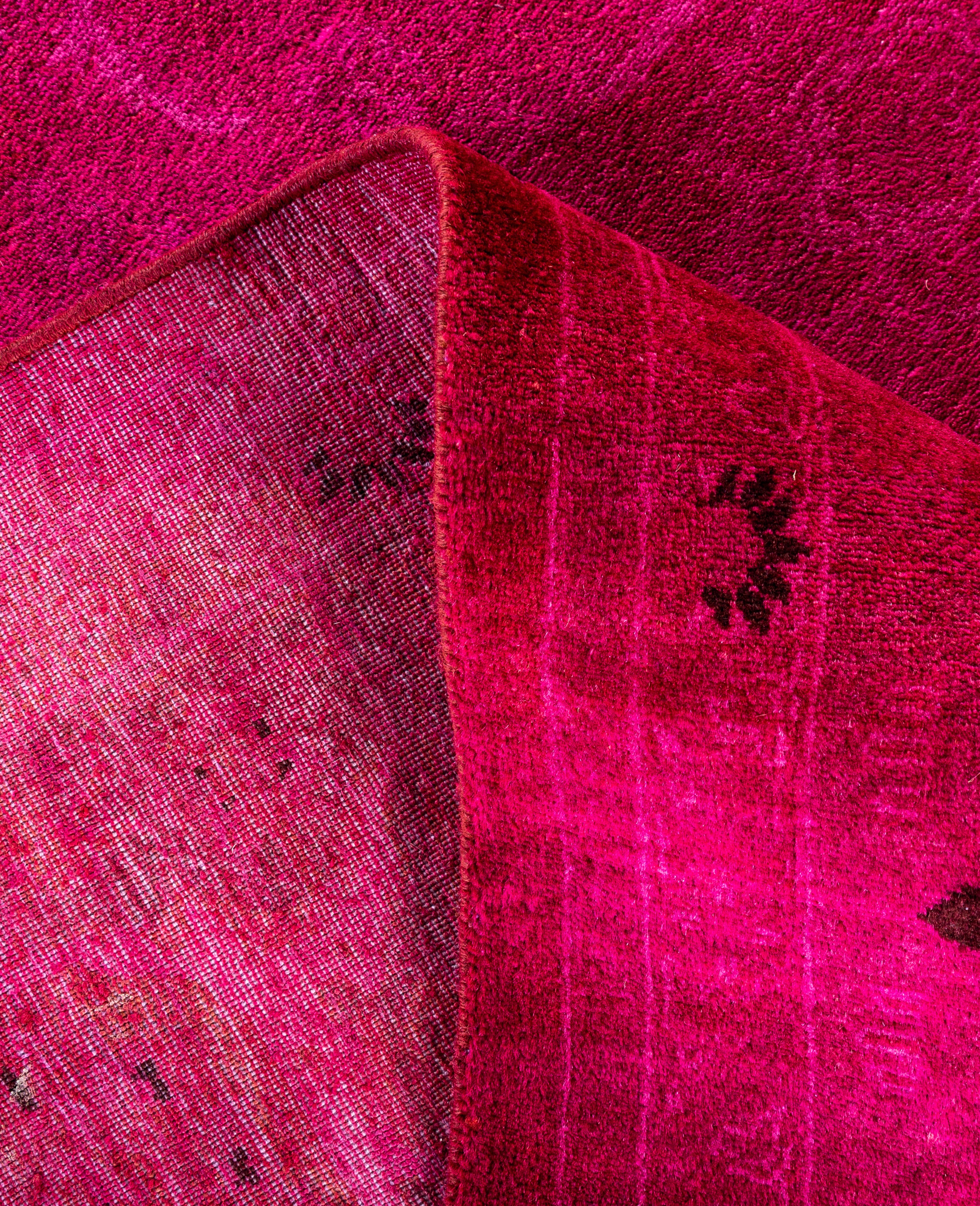 Over-dyed area rugs are created by taking vintage or traditional rugs and applying a vibrant, monochromatic dye over the existing patterns. This technique results in a bold, modern aesthetic while preserving the intricate designs beneath, blending the old with the new. The rugs are often faded and distressed before dyeing, which adds texture and depth to their appearance. The over-dye process breathes new life into worn or antique rugs, giving them a contemporary twist with rich, saturated colors like deep blues, purples, or bright reds. These rugs work well in both eclectic and modern spaces, offering a unique, artistic flair to any room. They provide a dynamic focal point, balancing between traditional craftsmanship and contemporary design trends. Over-dyed rugs are perfect for those looking to add a pop of color and character to their home decor.