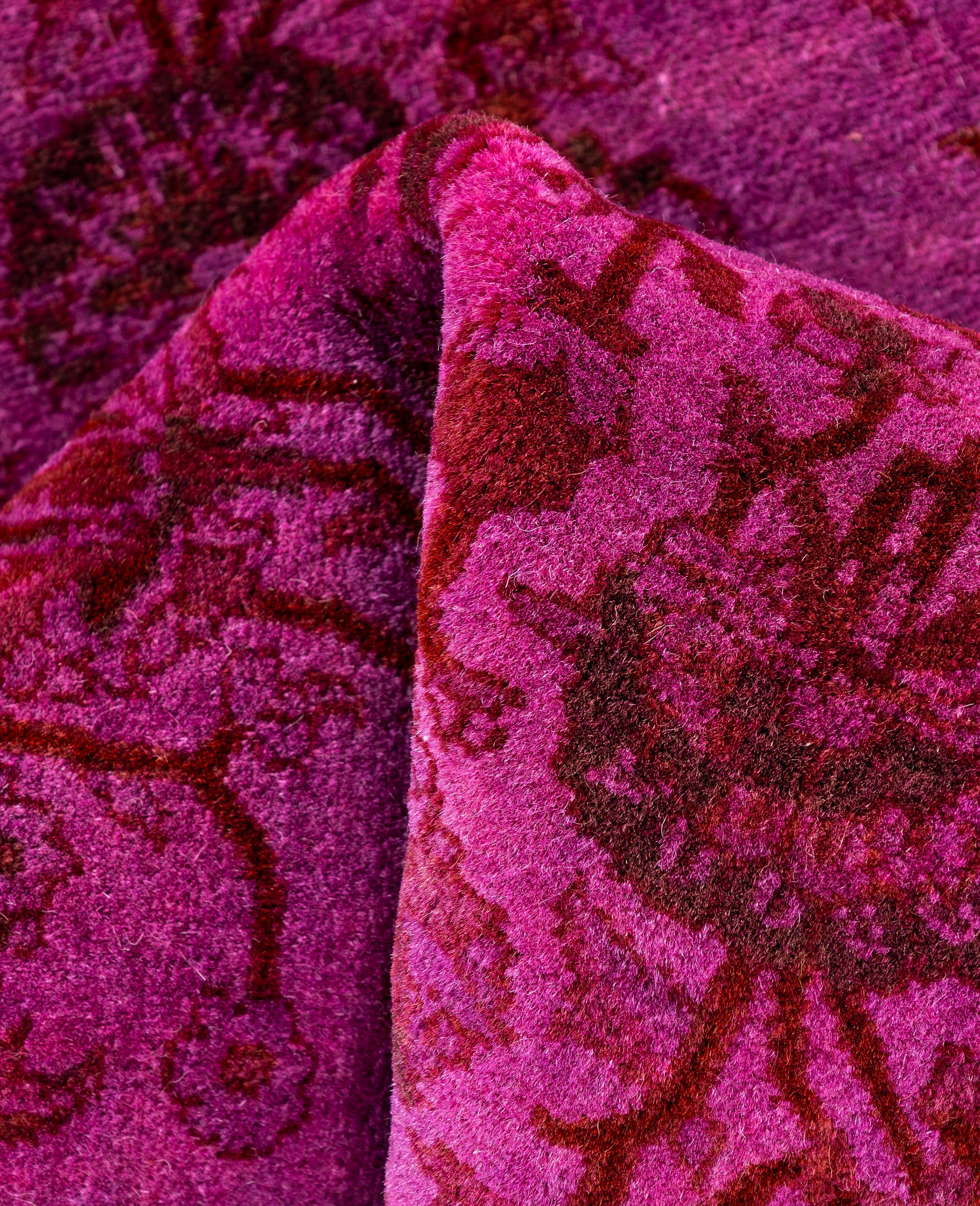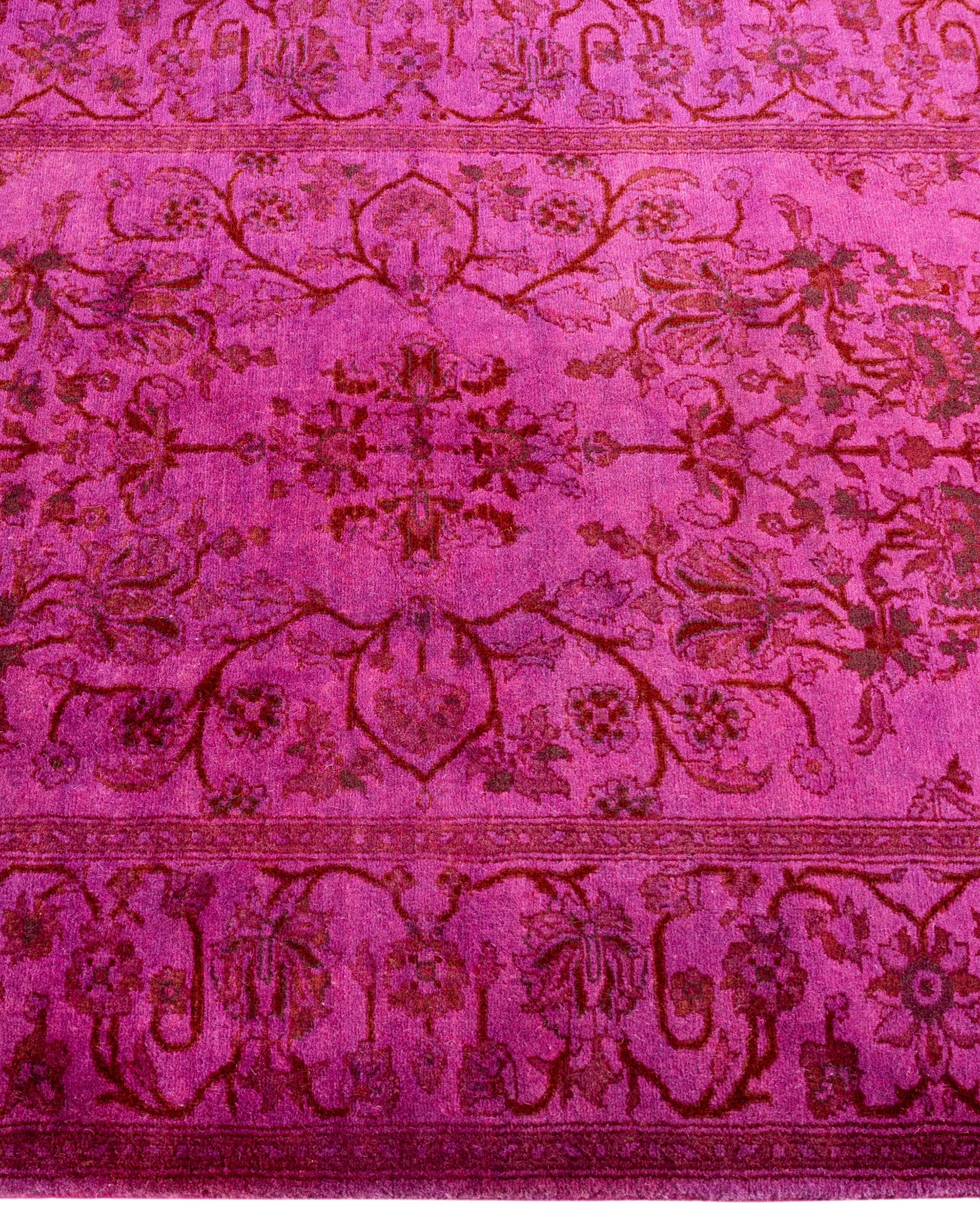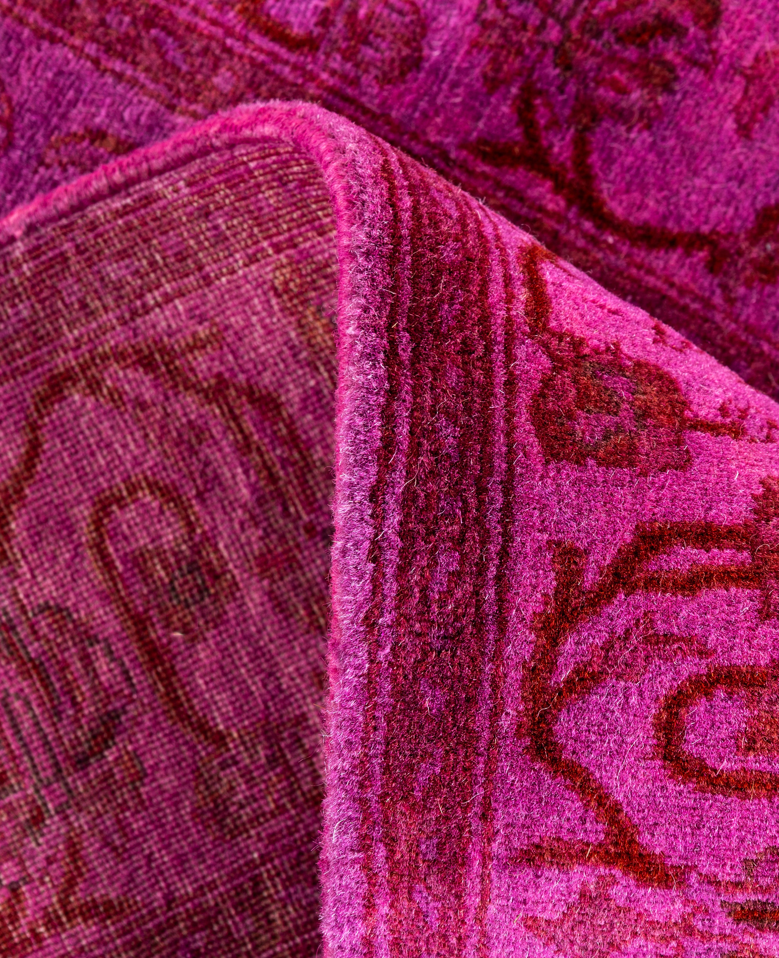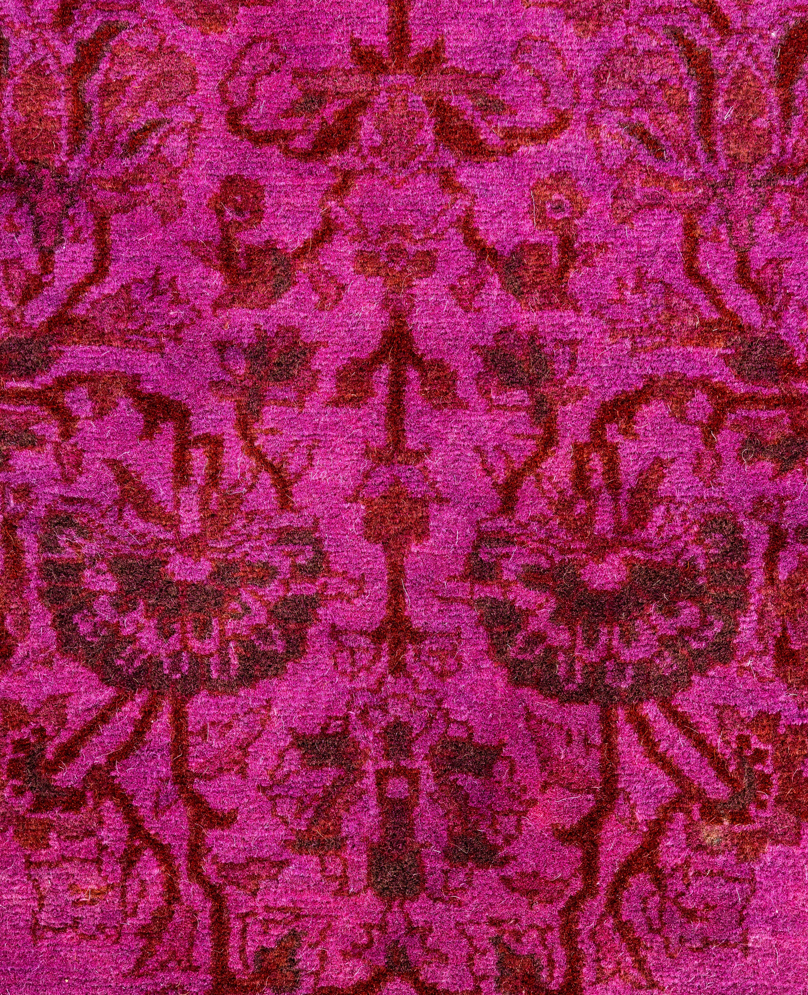 Over-dyed area rugs are created by taking vintage or traditional rugs and applying a vibrant, monochromatic dye over the existing patterns. This technique results in a bold, modern aesthetic while preserving the intricate designs beneath, blending the old with the new. The rugs are often faded and distressed before dyeing, which adds texture and depth to their appearance. The over-dye process breathes new life into worn or antique rugs, giving them a contemporary twist with rich, saturated colors like deep blues, purples, or bright reds. These rugs work well in both eclectic and modern spaces, offering a unique, artistic flair to any room. They provide a dynamic focal point, balancing between traditional craftsmanship and contemporary design trends. Over-dyed rugs are perfect for those looking to add a pop of color and character to their home decor.