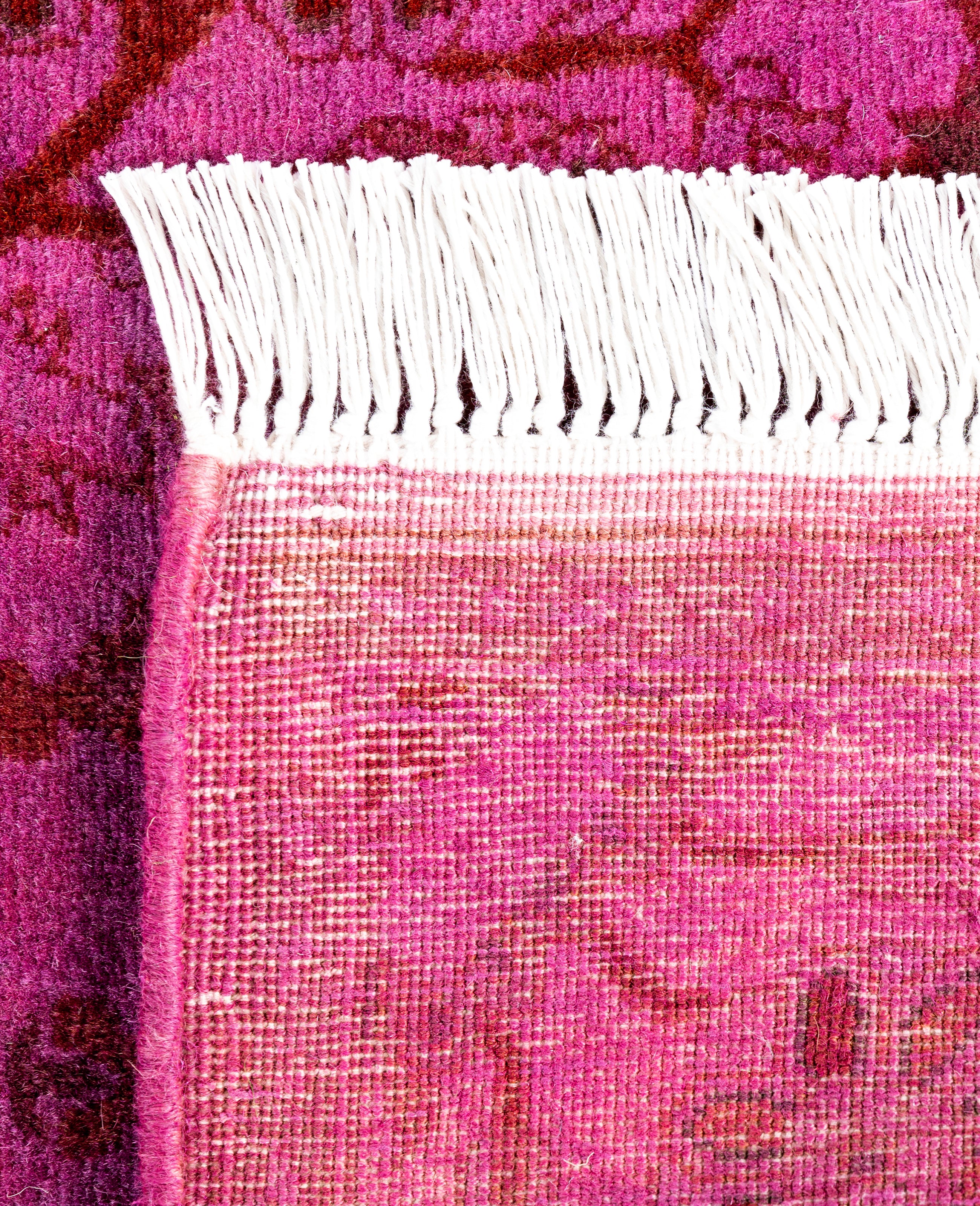 Contemporary Overdyed Wool Hand Knotted Purple Runner 2' 8" x 4' 1"