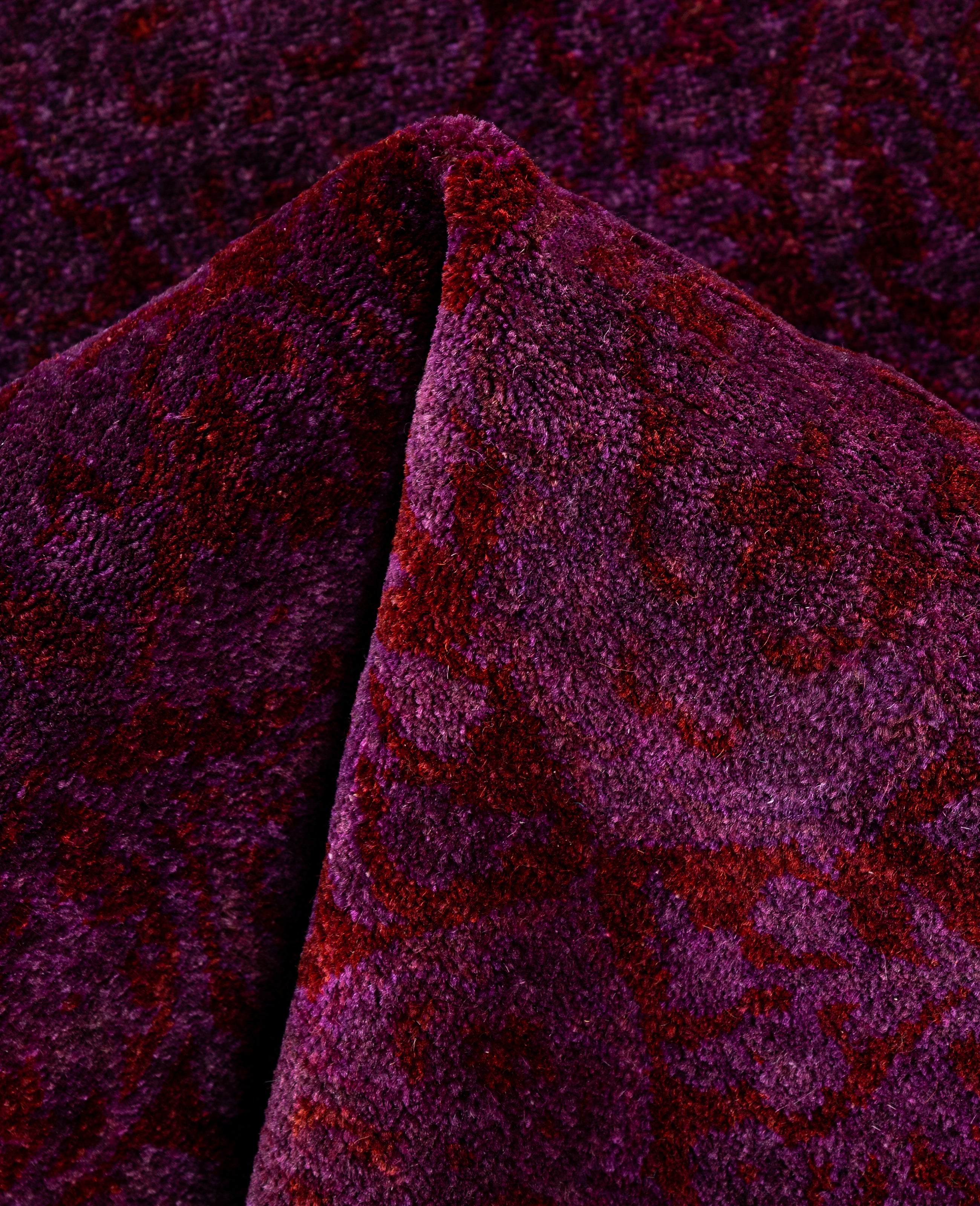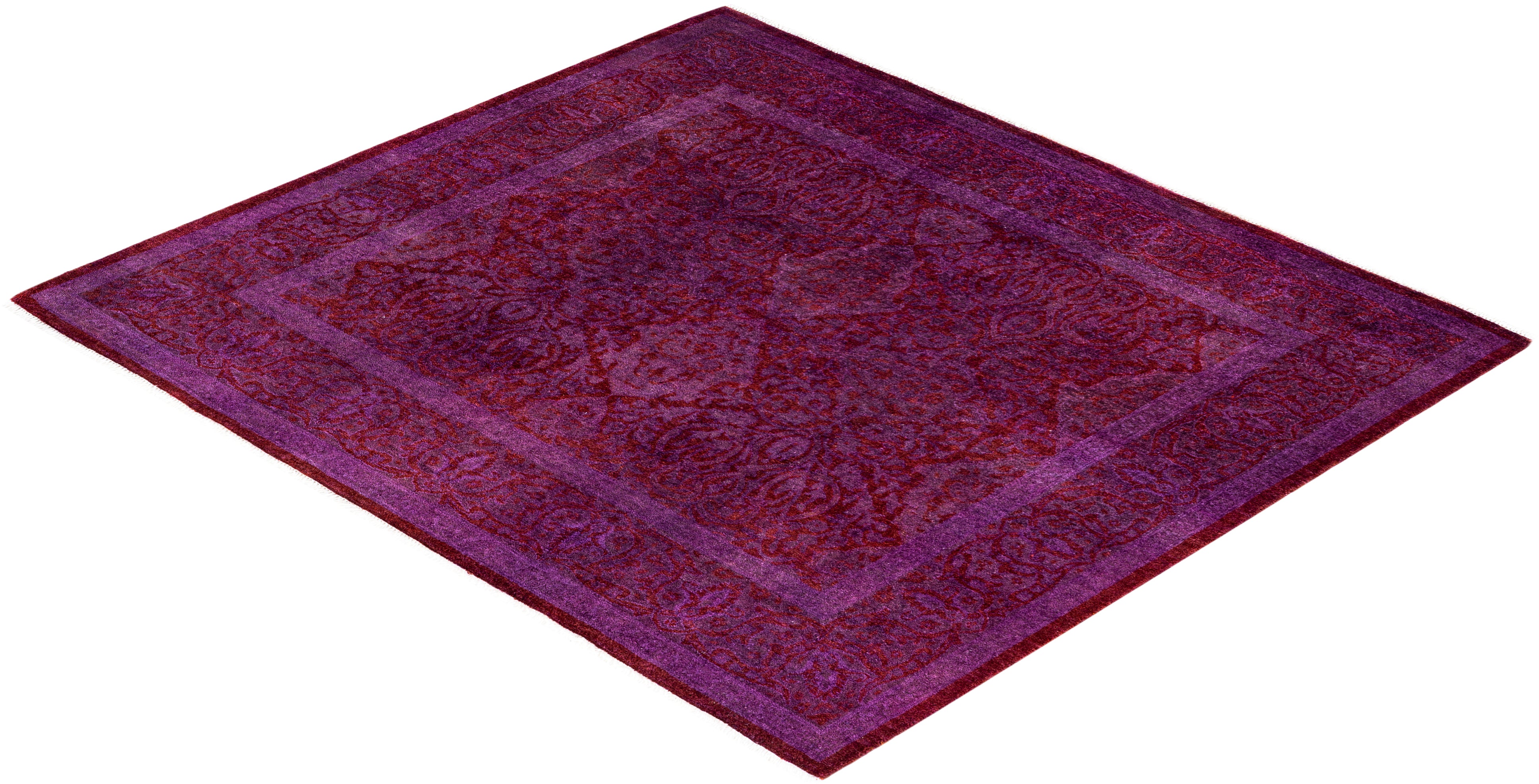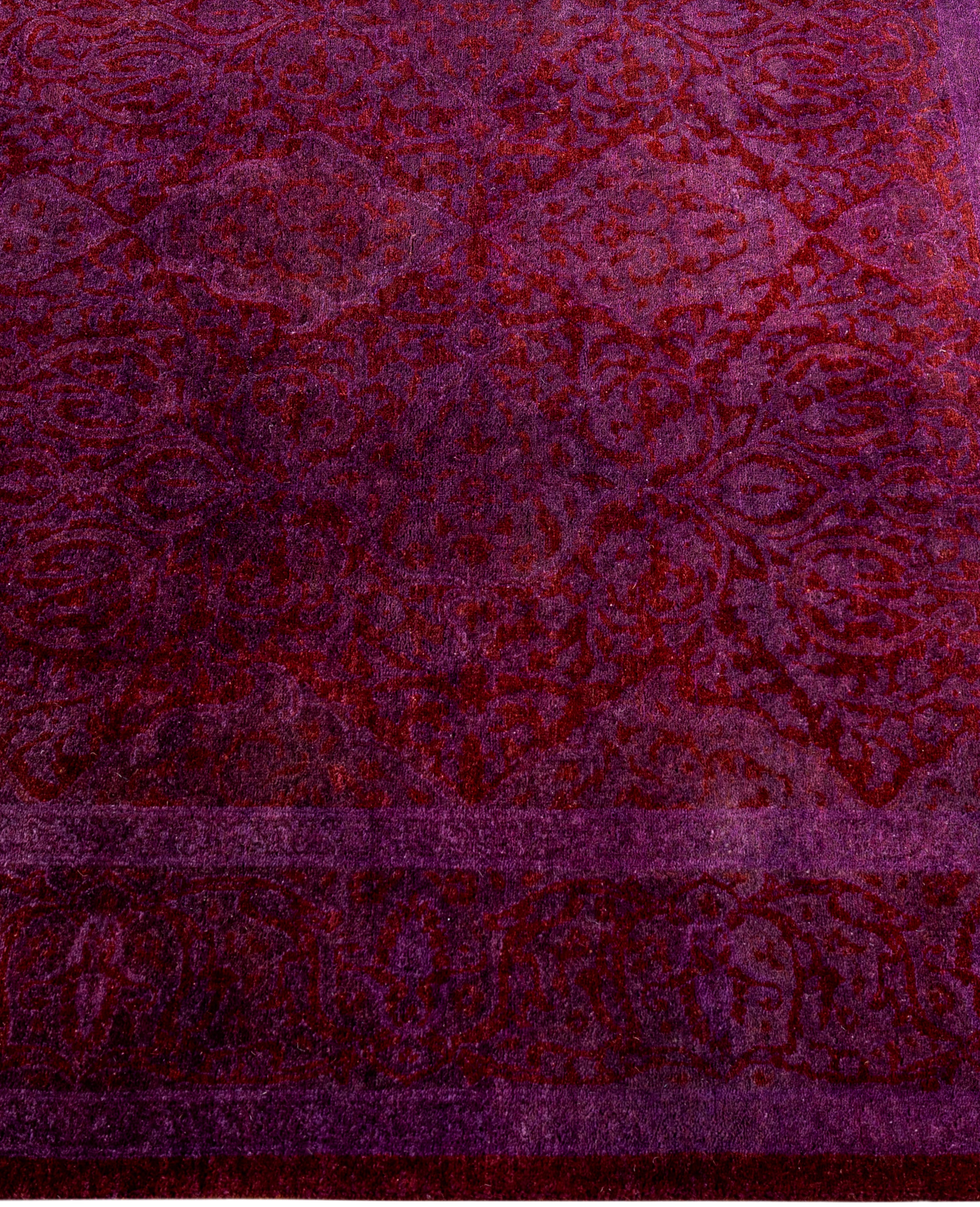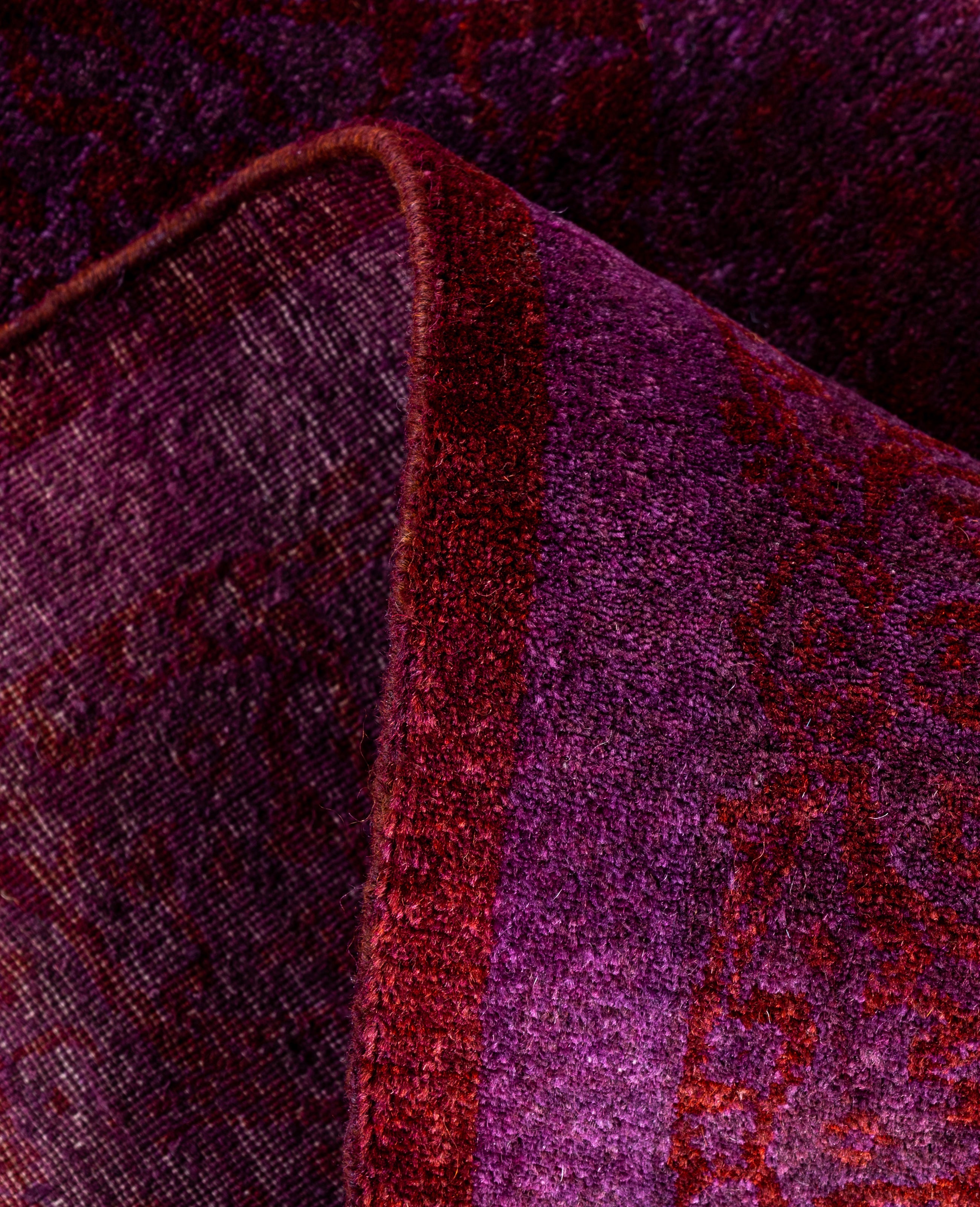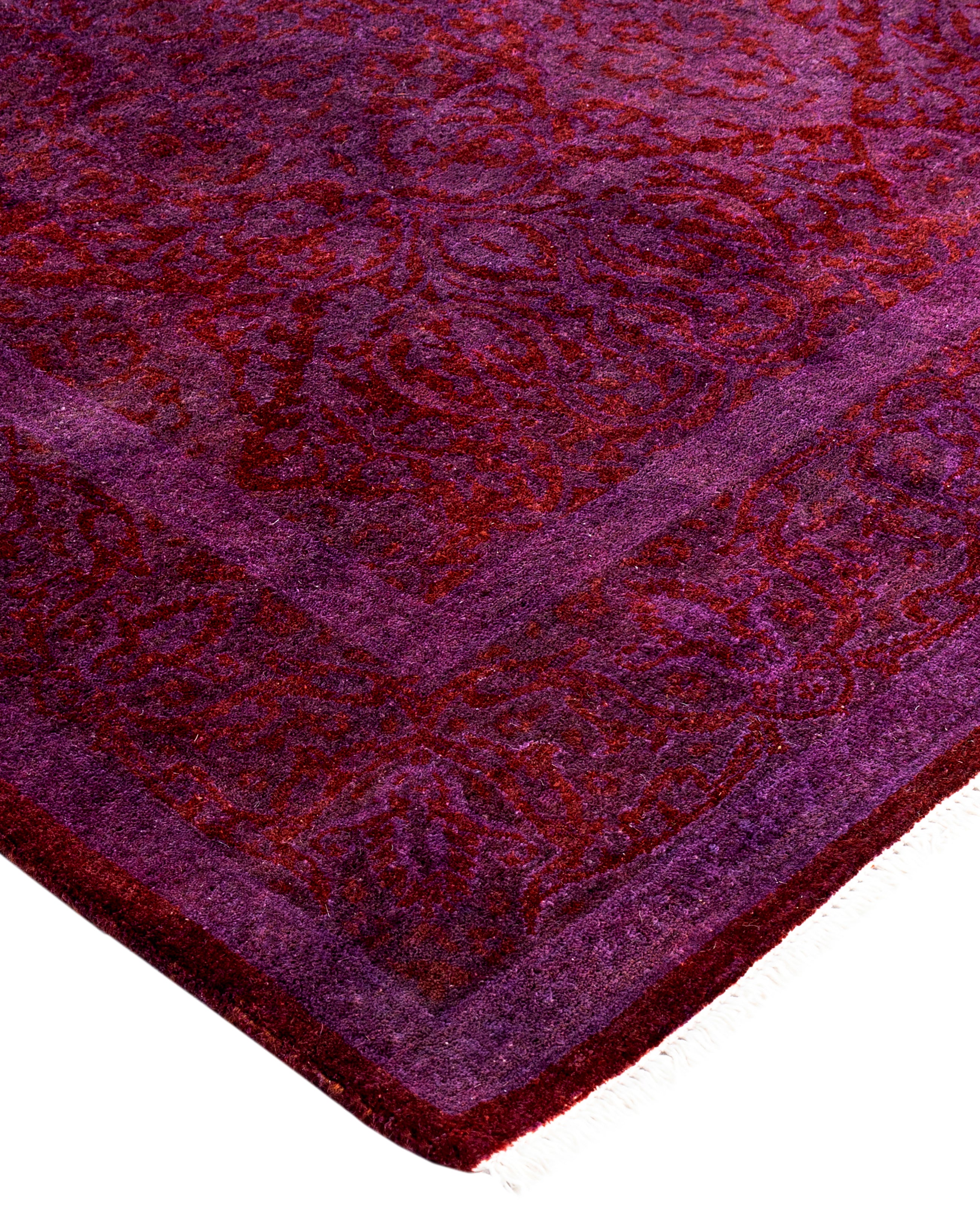 Contemporary Overdyed Wool Hand Knotted Purple Runner 3' 9" x 4' 2"