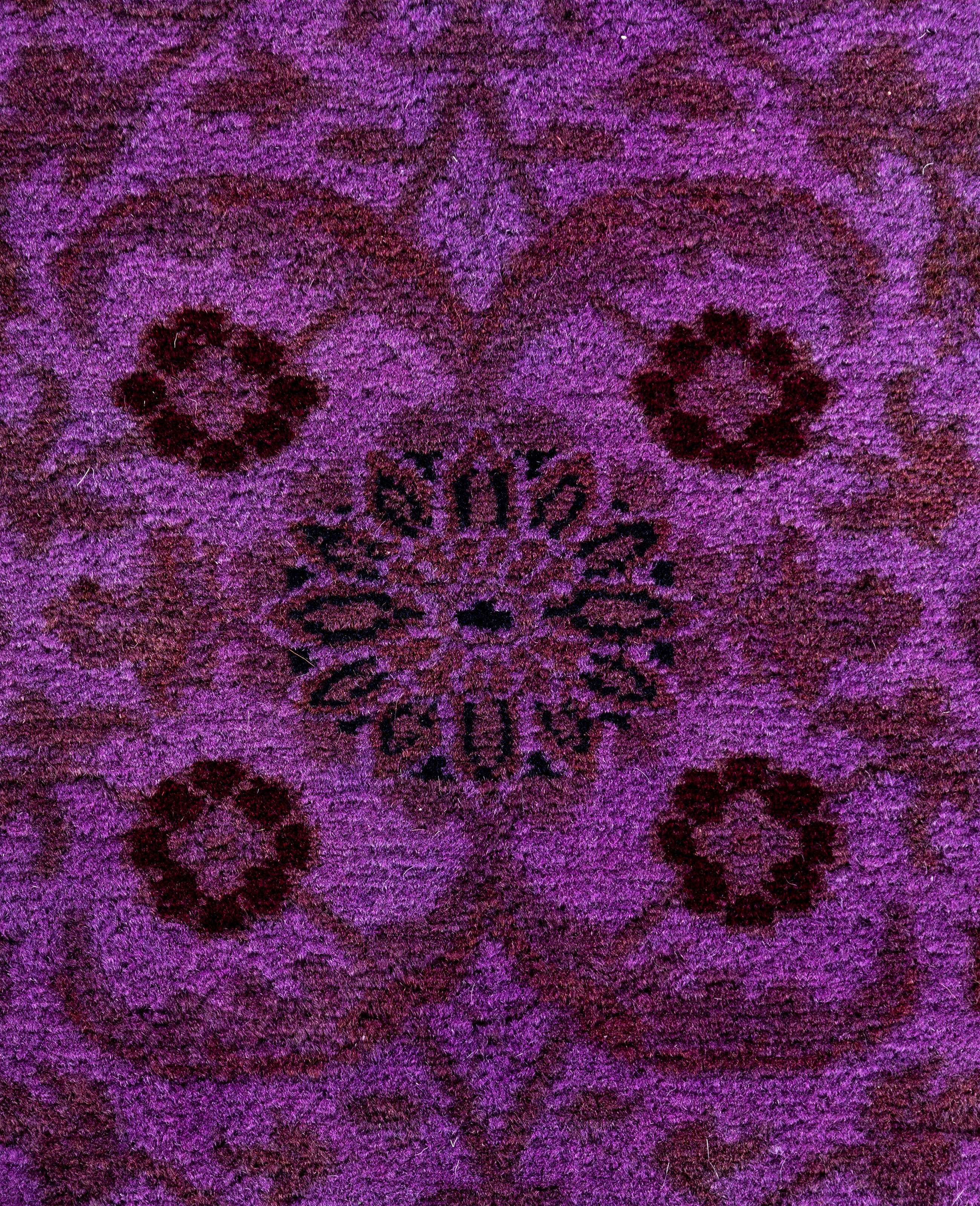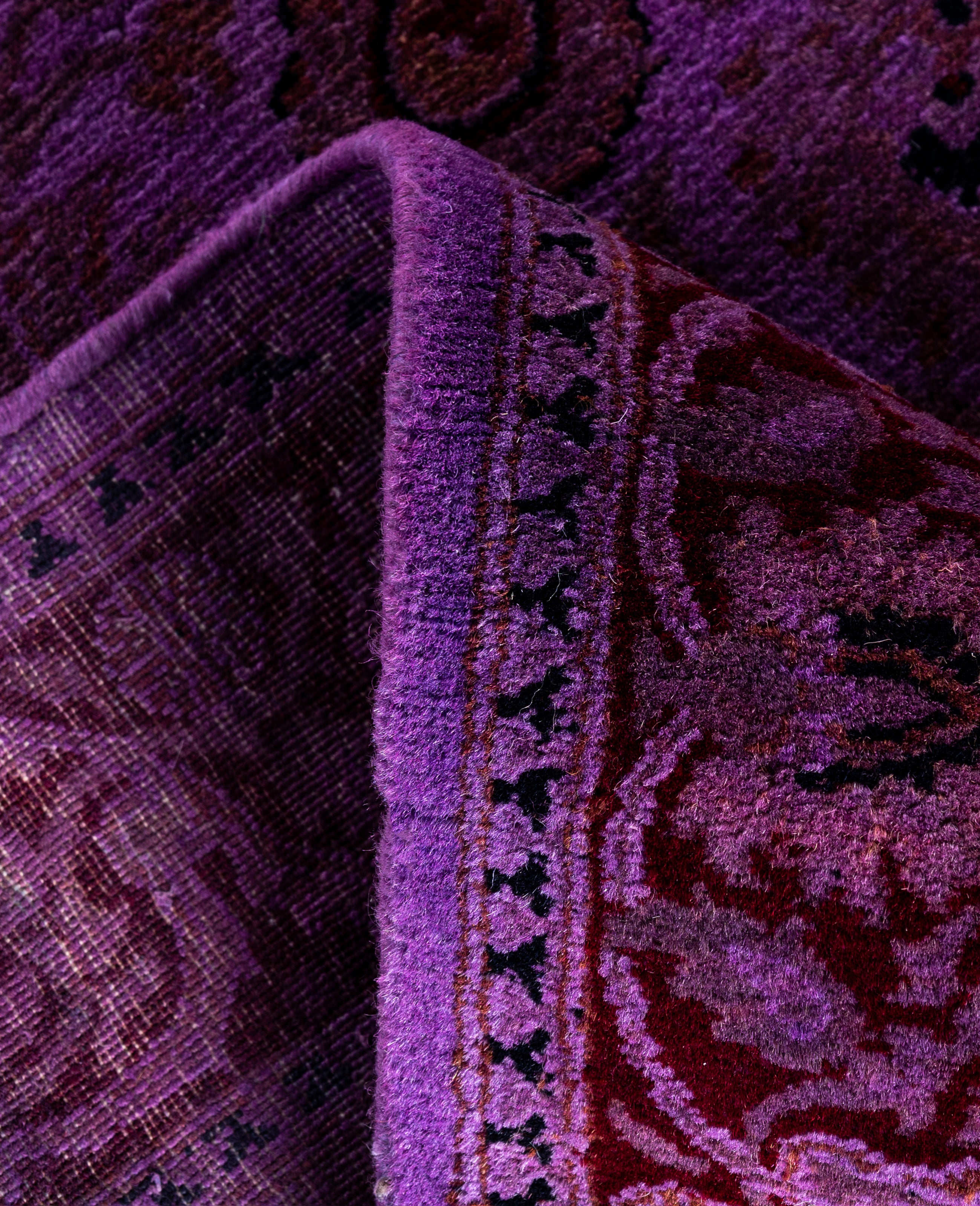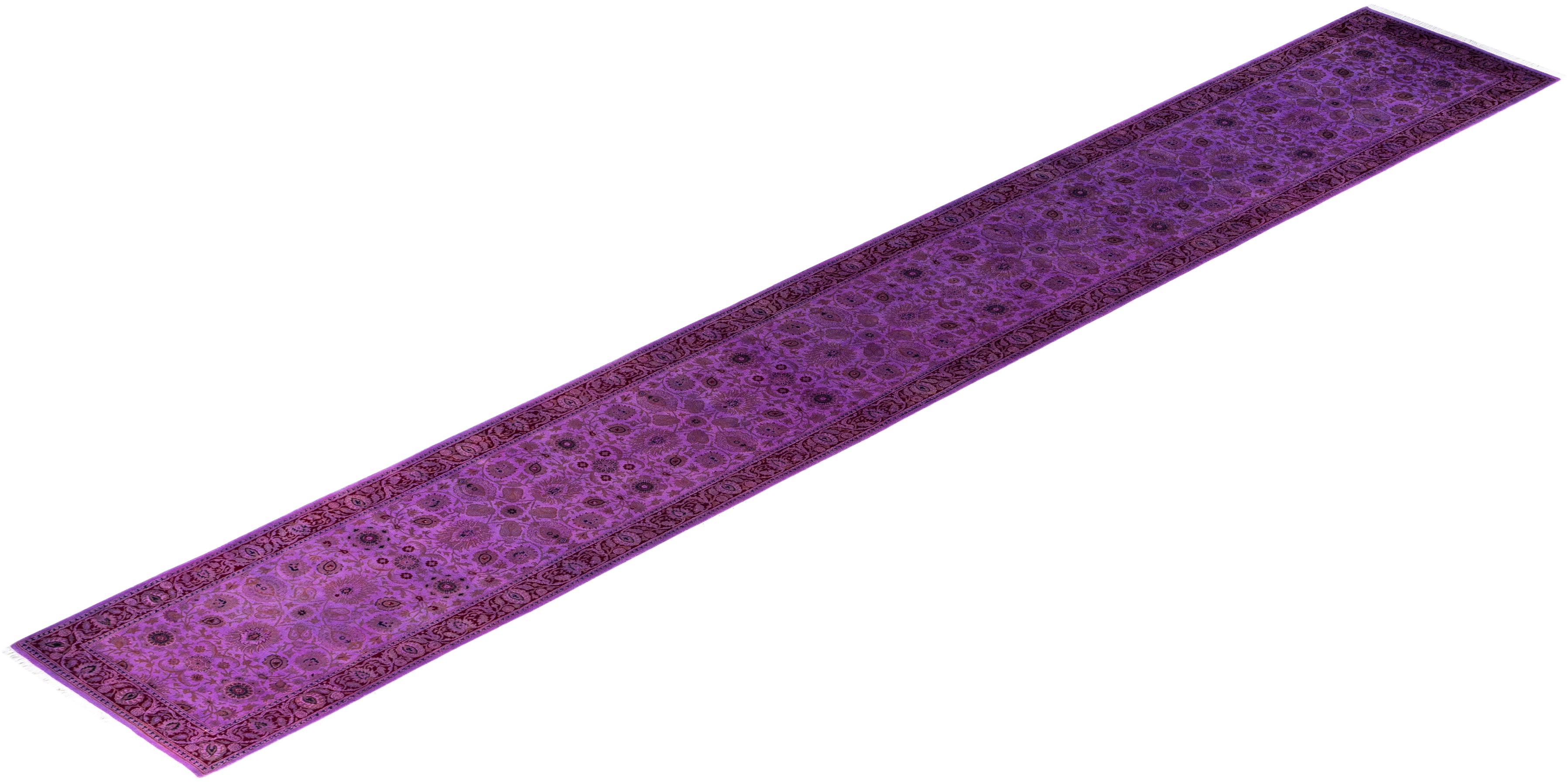 Contemporary Overdyed Wool Hand Knotted Purple Runner 2' 6" x 17' 10"