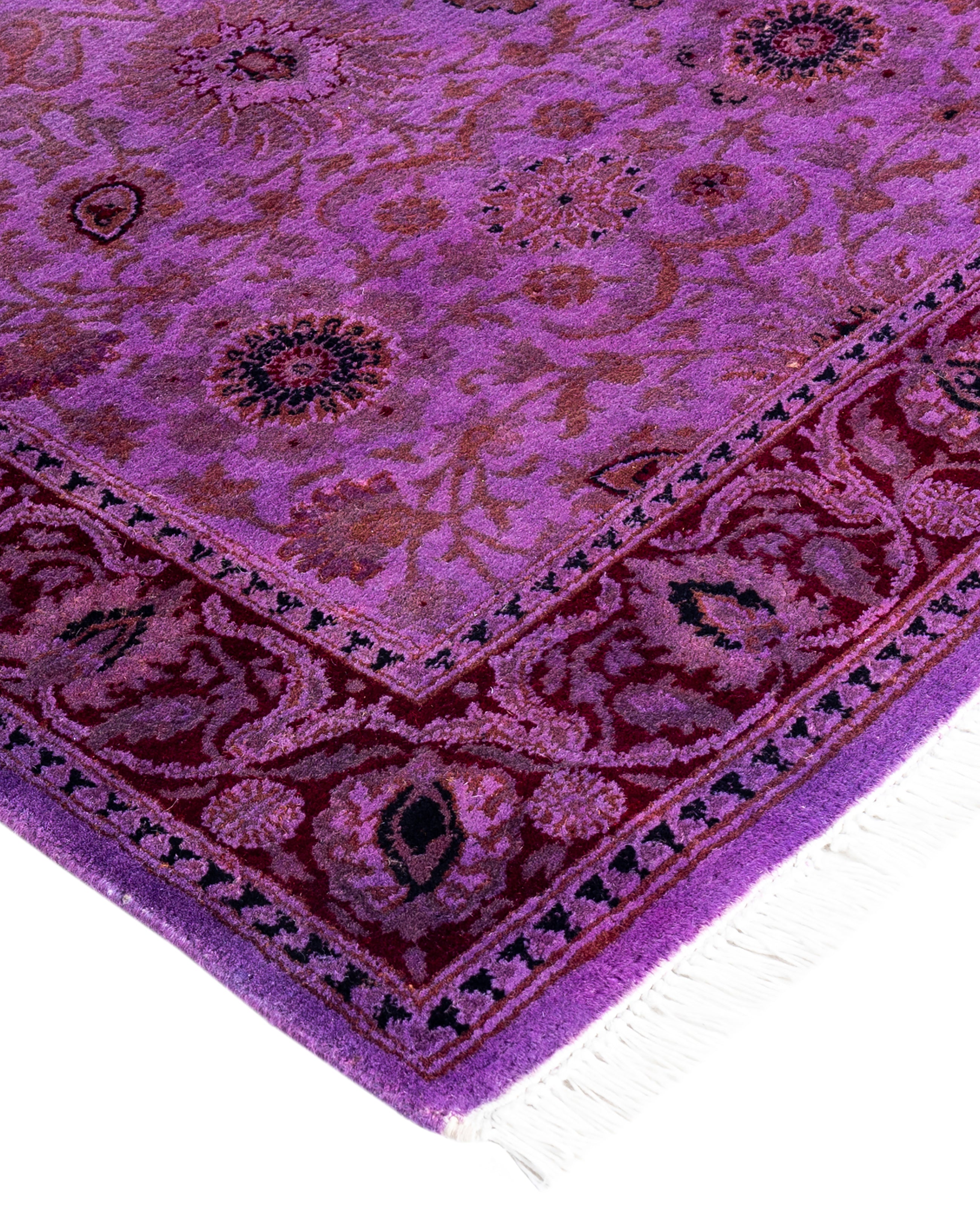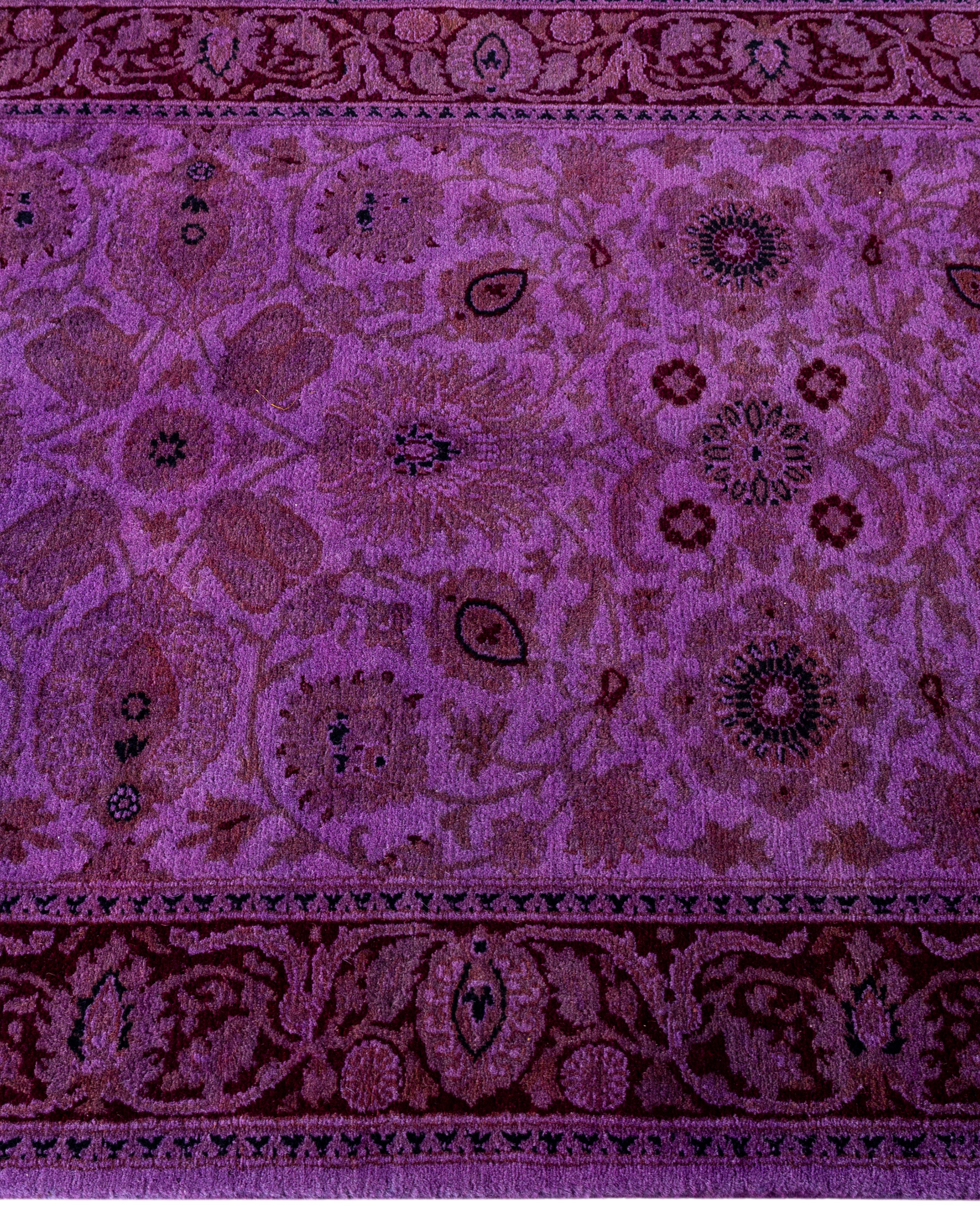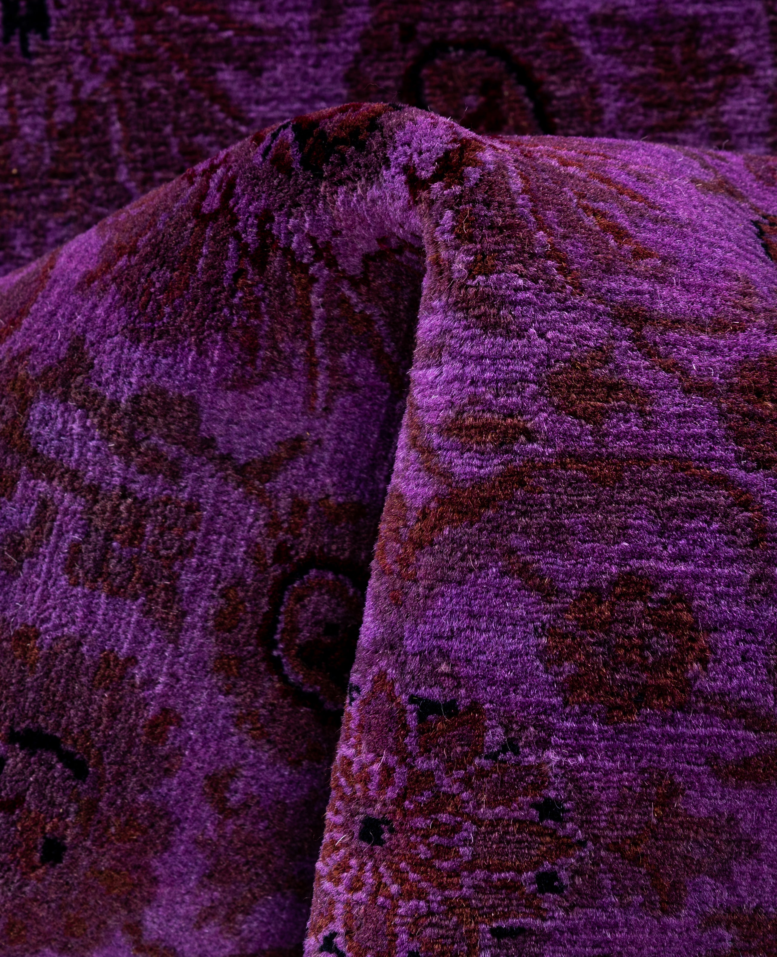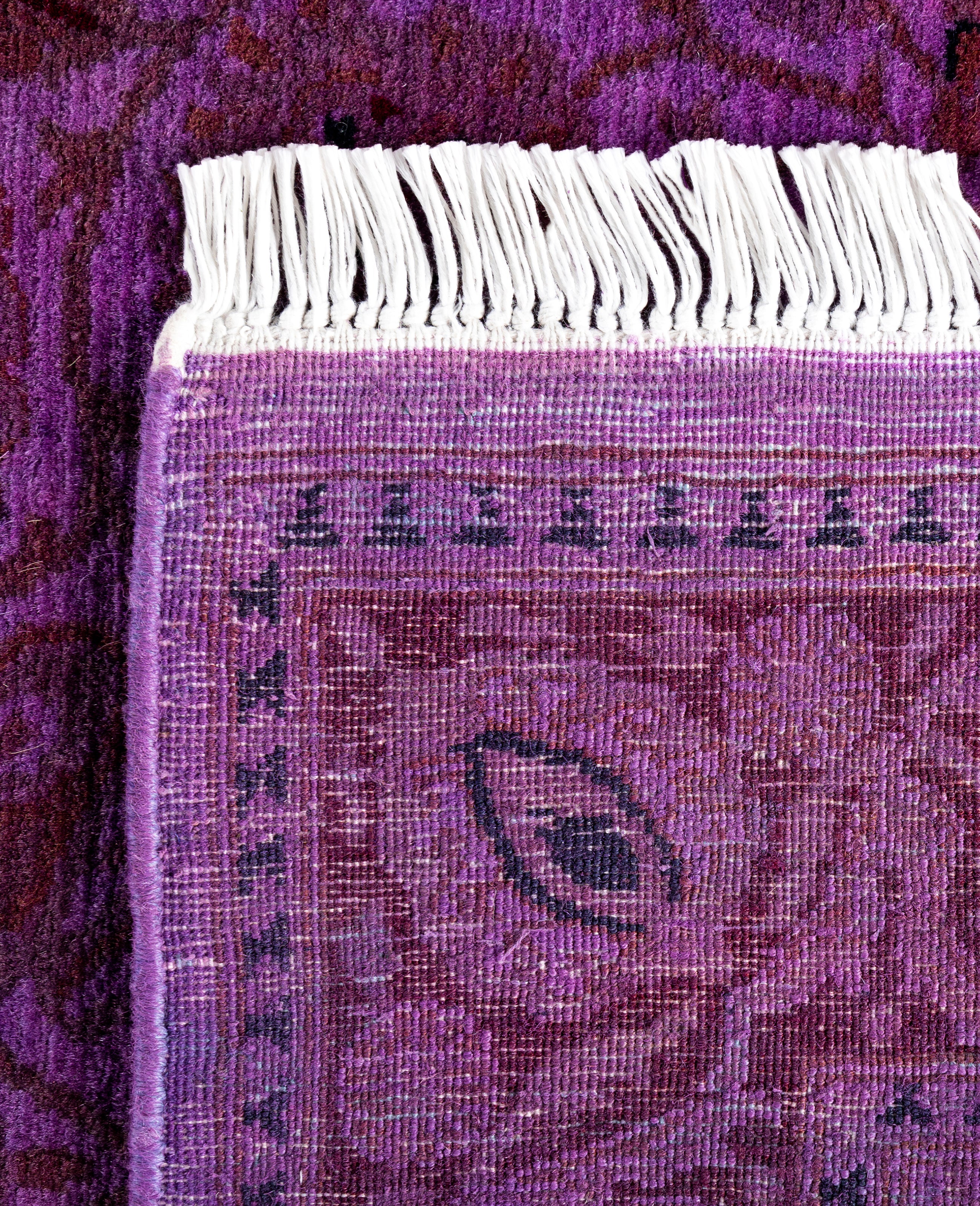 Contemporary Overdyed Wool Hand Knotted Purple Runner 2' 6" x 17' 10"