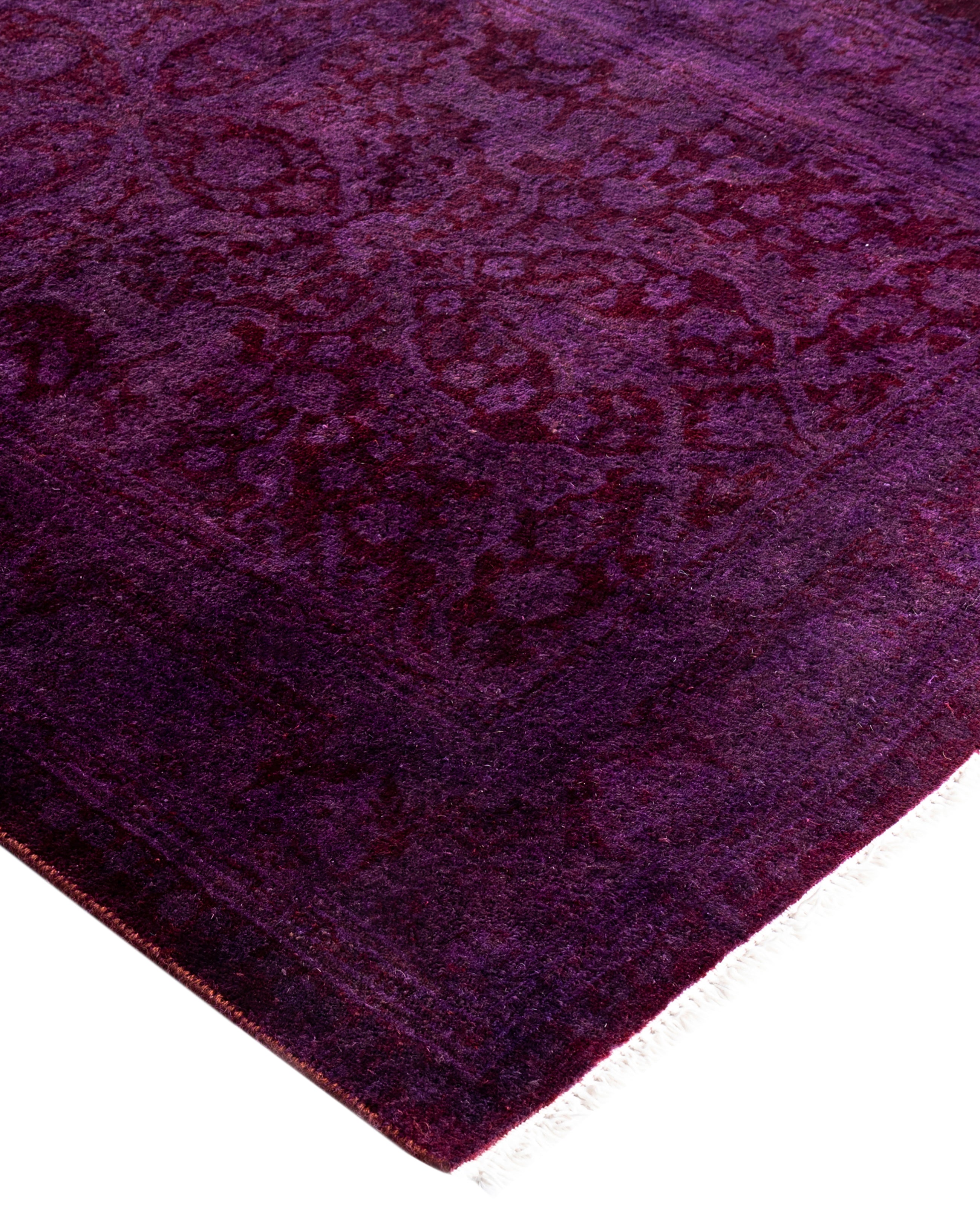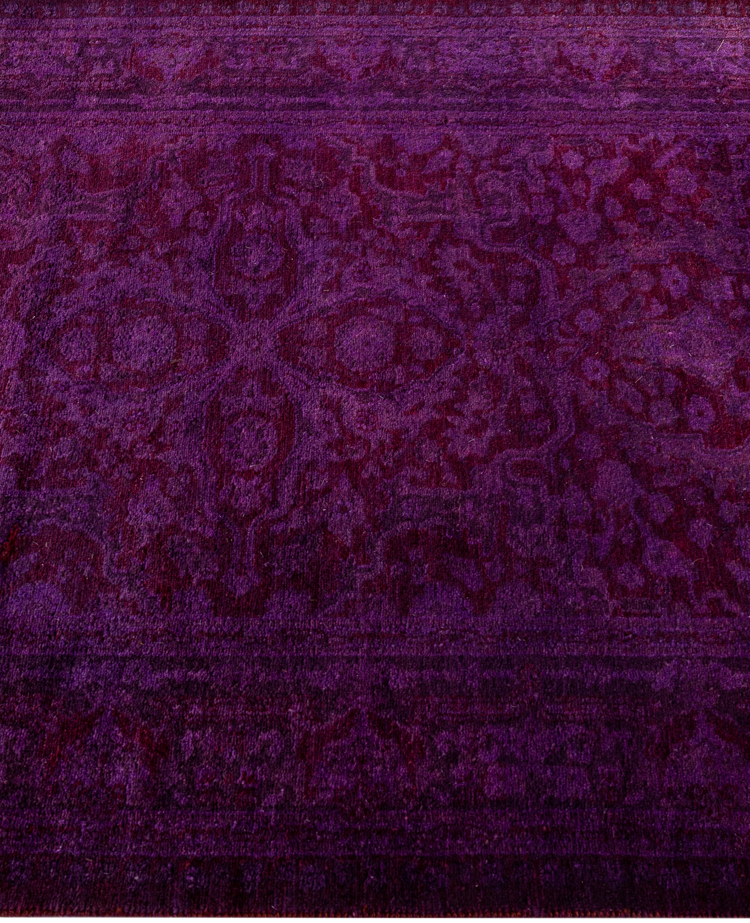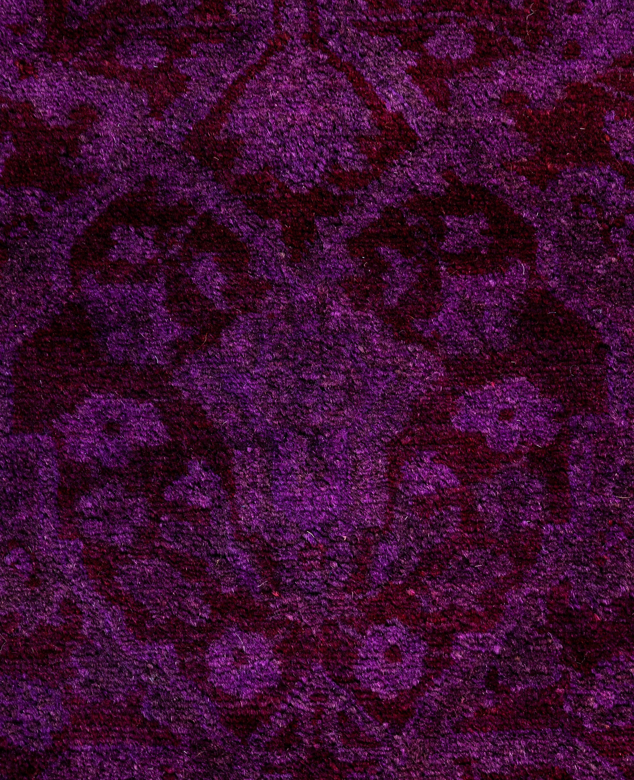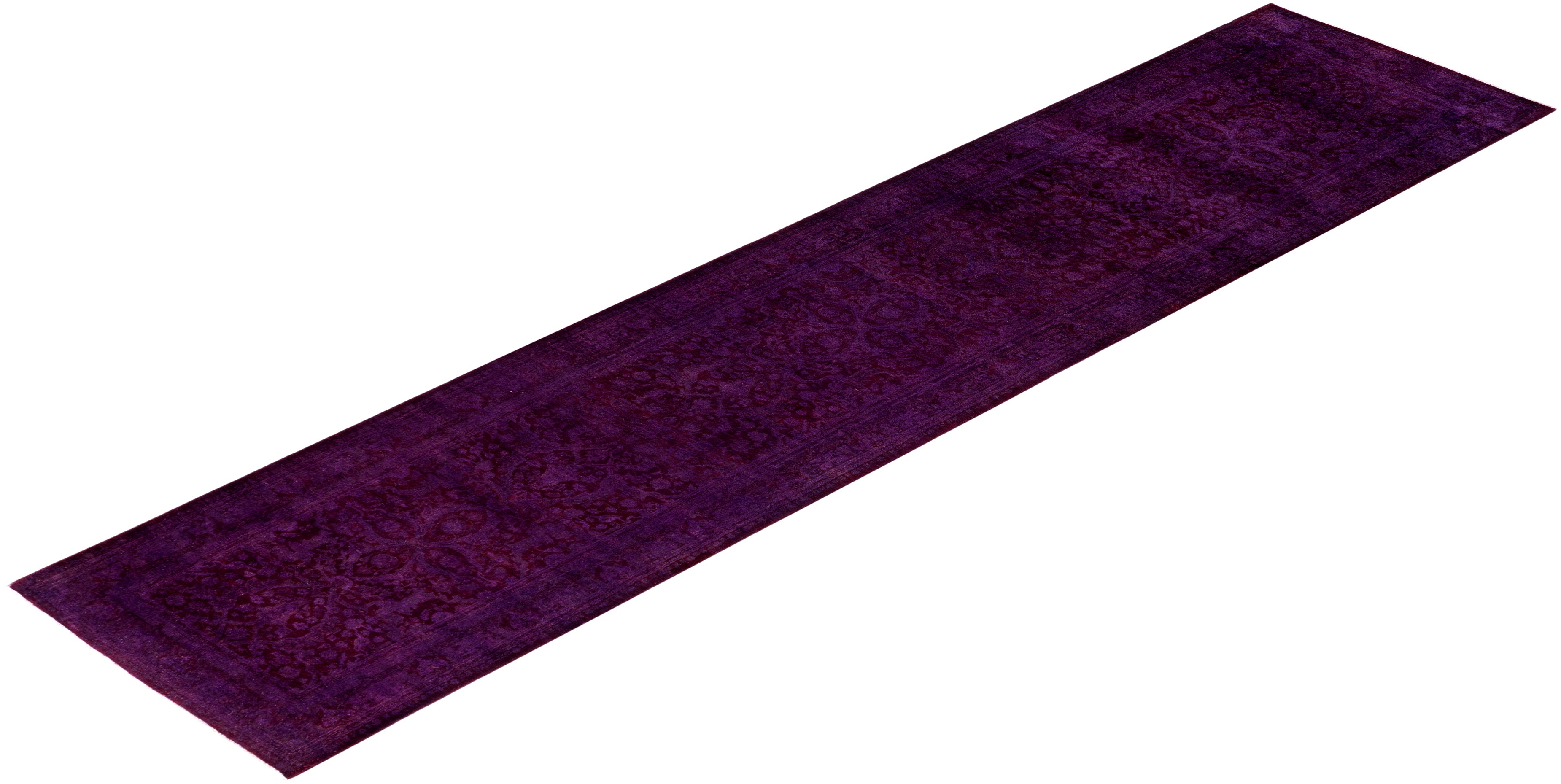 Contemporary Overdyed Wool Hand Knotted Purple Runner 2' 7" x 11' 4"