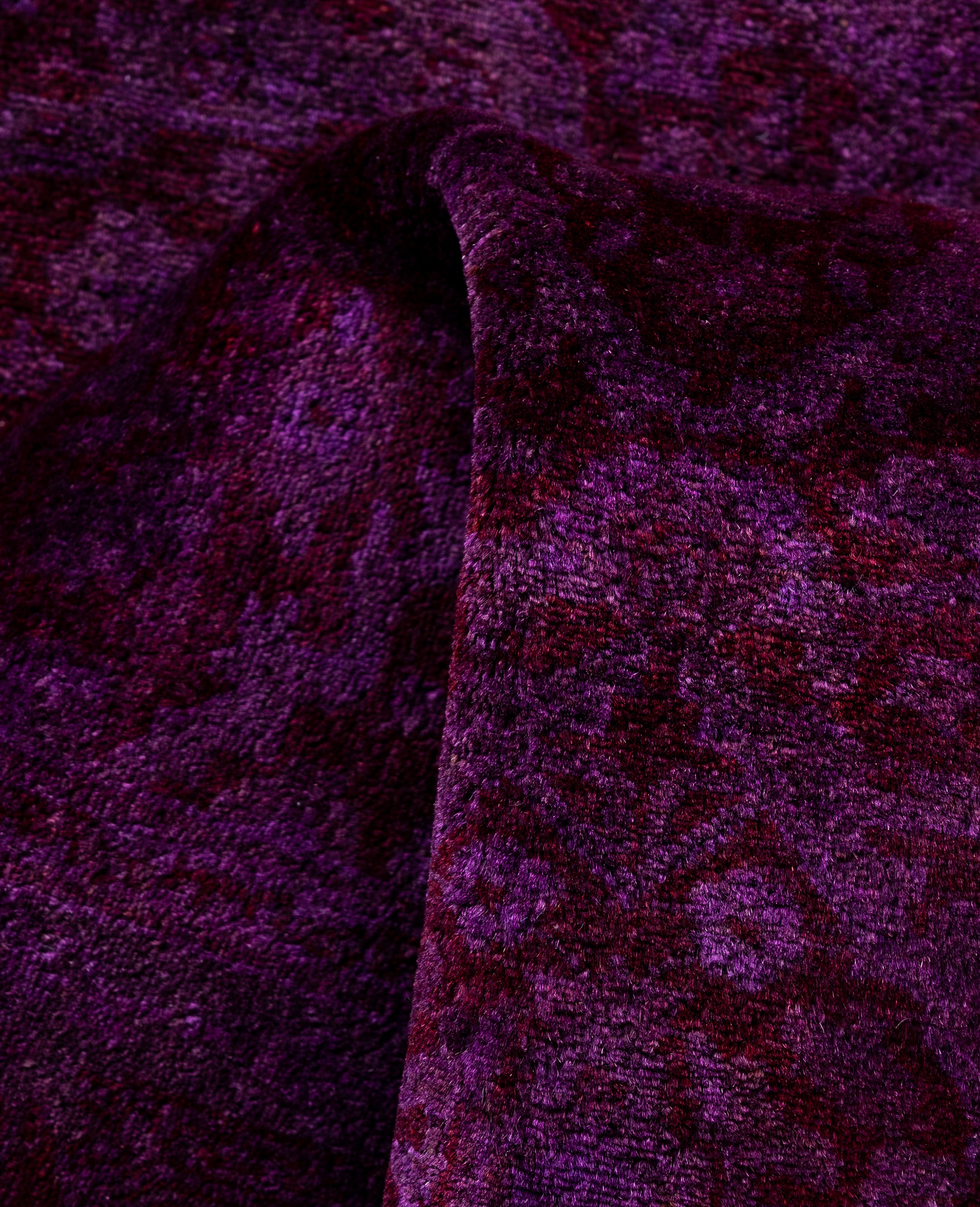 Over-dyed area rugs are created by taking vintage or traditional rugs and applying a vibrant, monochromatic dye over the existing patterns. This technique results in a bold, modern aesthetic while preserving the intricate designs beneath, blending the old with the new. The rugs are often faded and distressed before dyeing, which adds texture and depth to their appearance. The over-dye process breathes new life into worn or antique rugs, giving them a contemporary twist with rich, saturated colors like deep blues, purples, or bright reds. These rugs work well in both eclectic and modern spaces, offering a unique, artistic flair to any room. They provide a dynamic focal point, balancing between traditional craftsmanship and contemporary design trends. Over-dyed rugs are perfect for those looking to add a pop of color and character to their home decor.