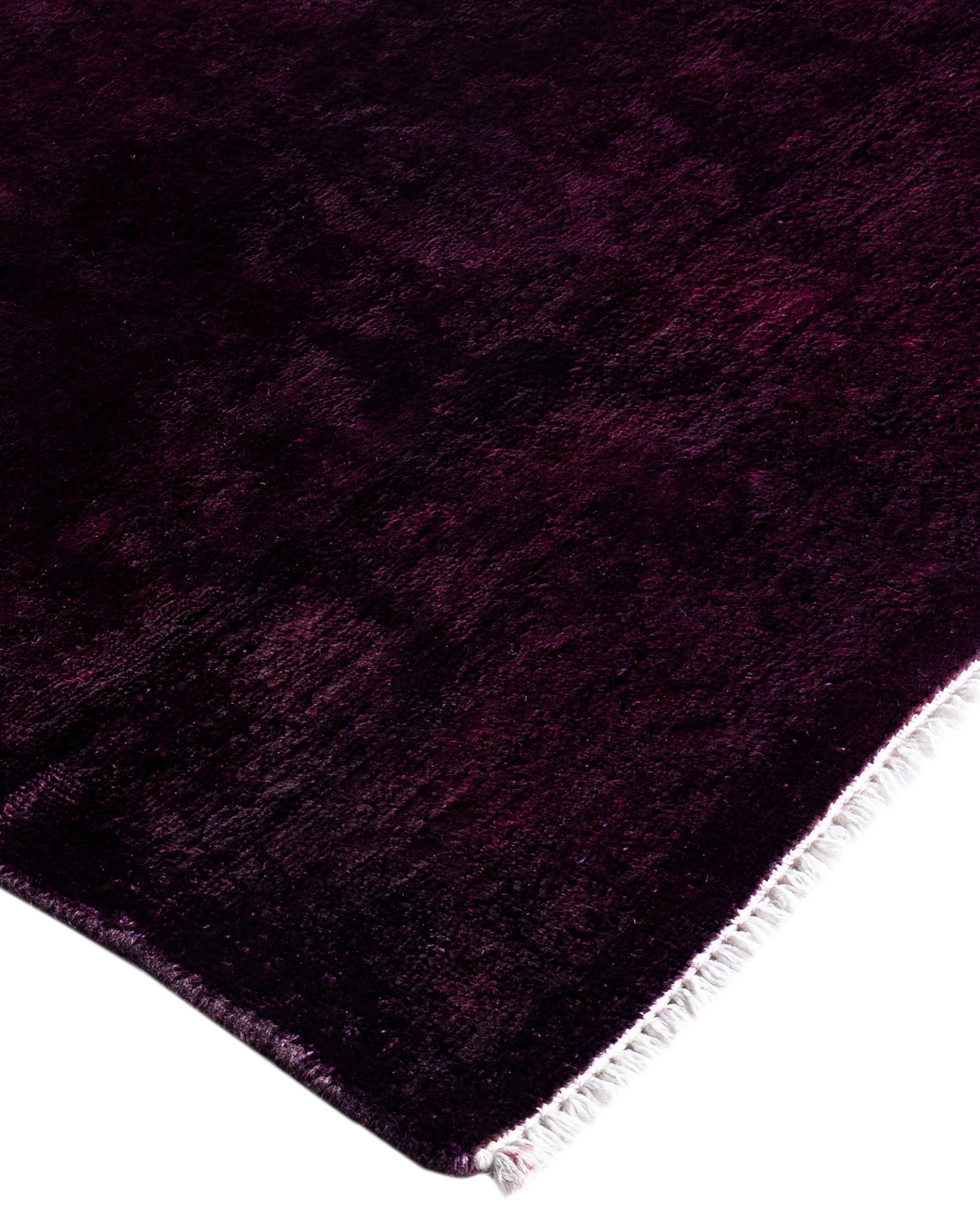Contemporary Overdyed Wool Hand Knotted Purple Runner 2' 5" x 16' 4"