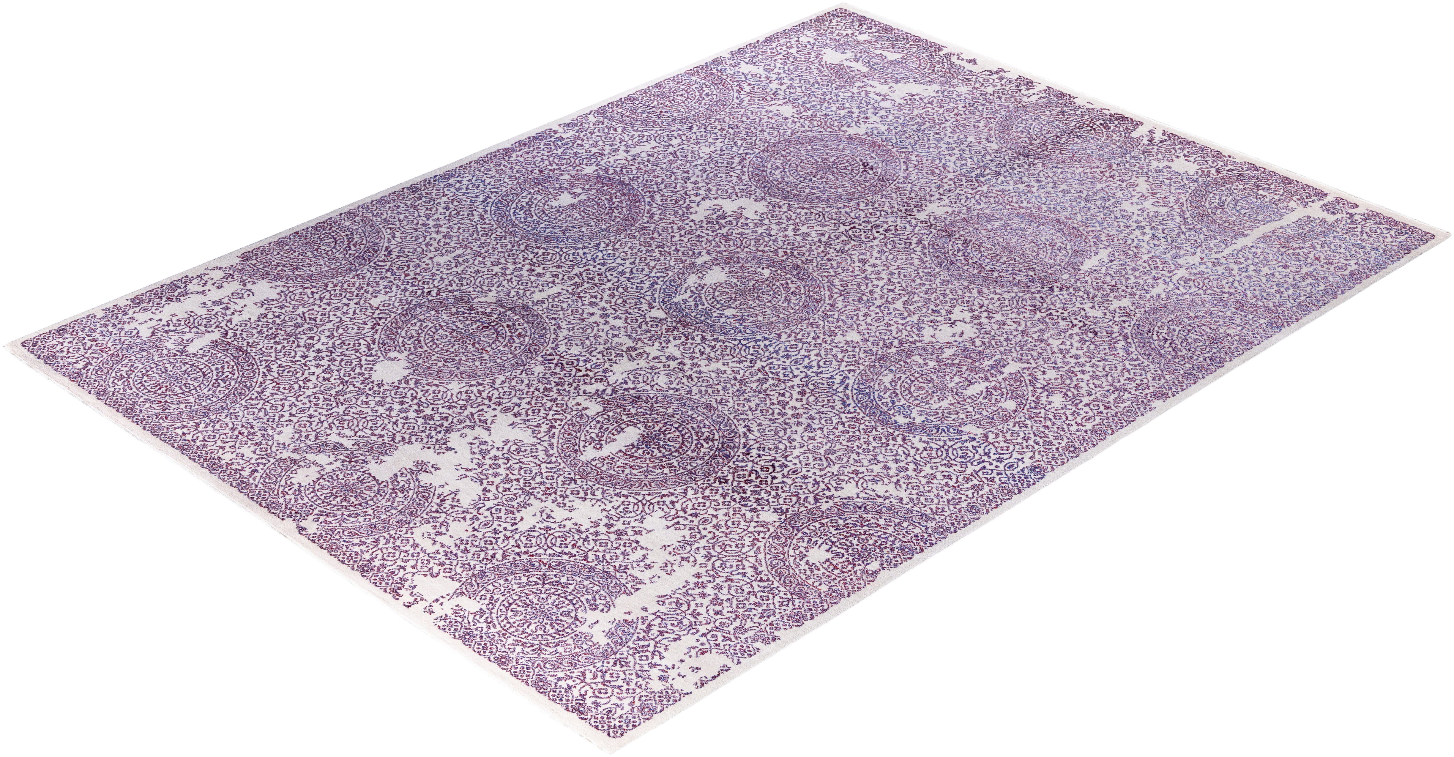 Traditional Abstarct Wool, Silk Hand Knotted Purple Area Rug 9' 0" x 12' 4"