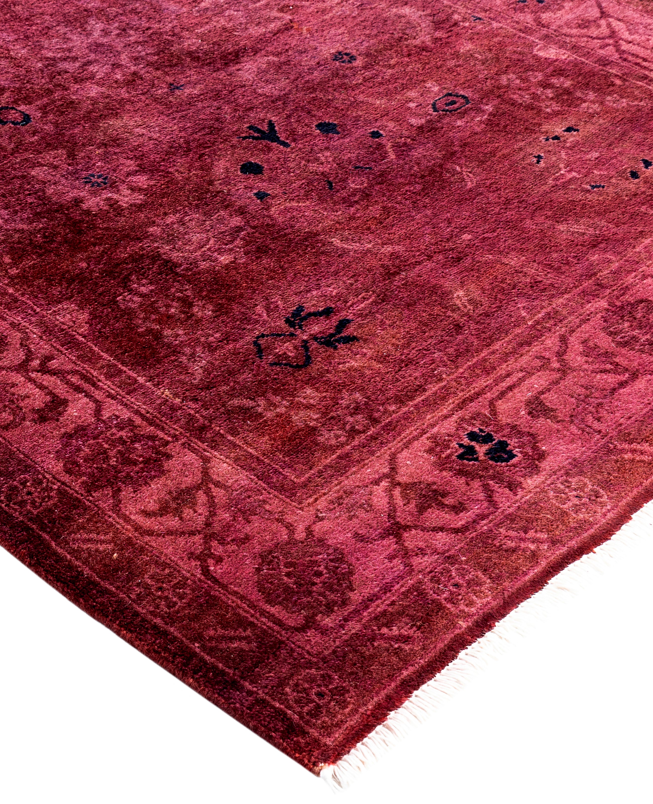 Over-dyed area rugs are created by taking vintage or traditional rugs and applying a vibrant, monochromatic dye over the existing patterns. This technique results in a bold, modern aesthetic while preserving the intricate designs beneath, blending the old with the new. The rugs are often faded and distressed before dyeing, which adds texture and depth to their appearance. The over-dye process breathes new life into worn or antique rugs, giving them a contemporary twist with rich, saturated colors like deep blues, purples, or bright reds. These rugs work well in both eclectic and modern spaces, offering a unique, artistic flair to any room. They provide a dynamic focal point, balancing between traditional craftsmanship and contemporary design trends. Over-dyed rugs are perfect for those looking to add a pop of color and character to their home decor.