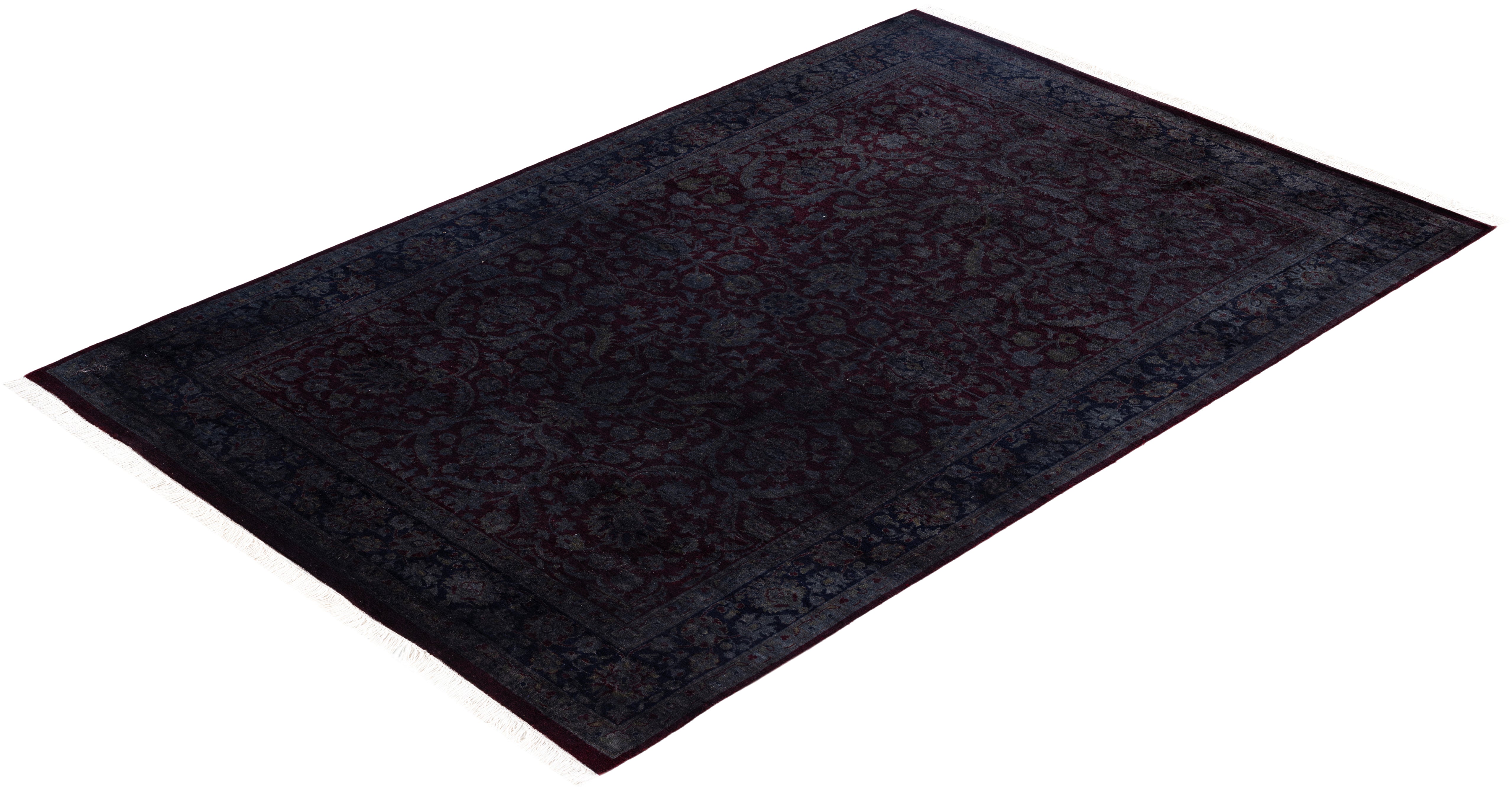 Contemporary Overdyed Wool Hand Knotted Red Area Rug 4' 2" x 6' 3"