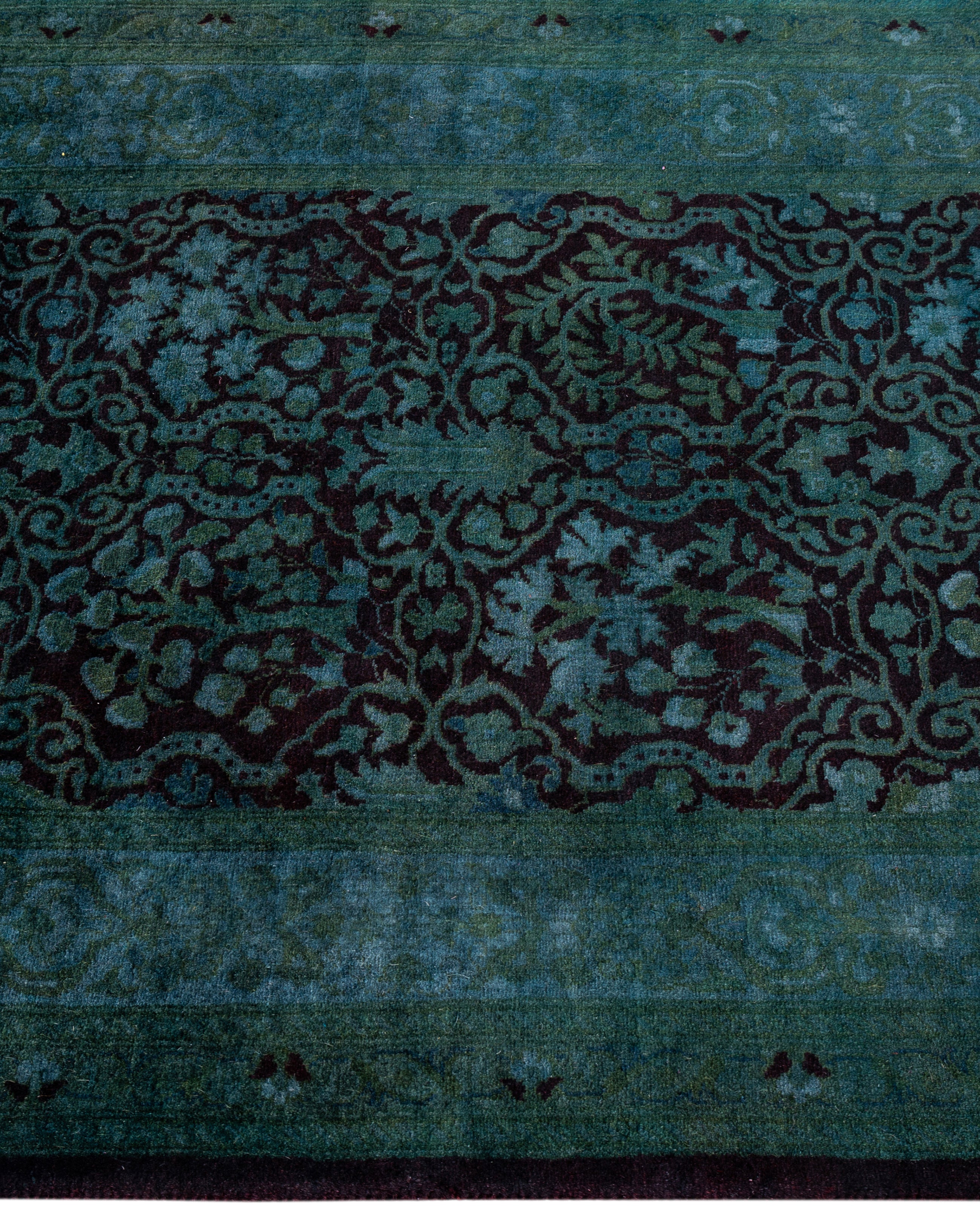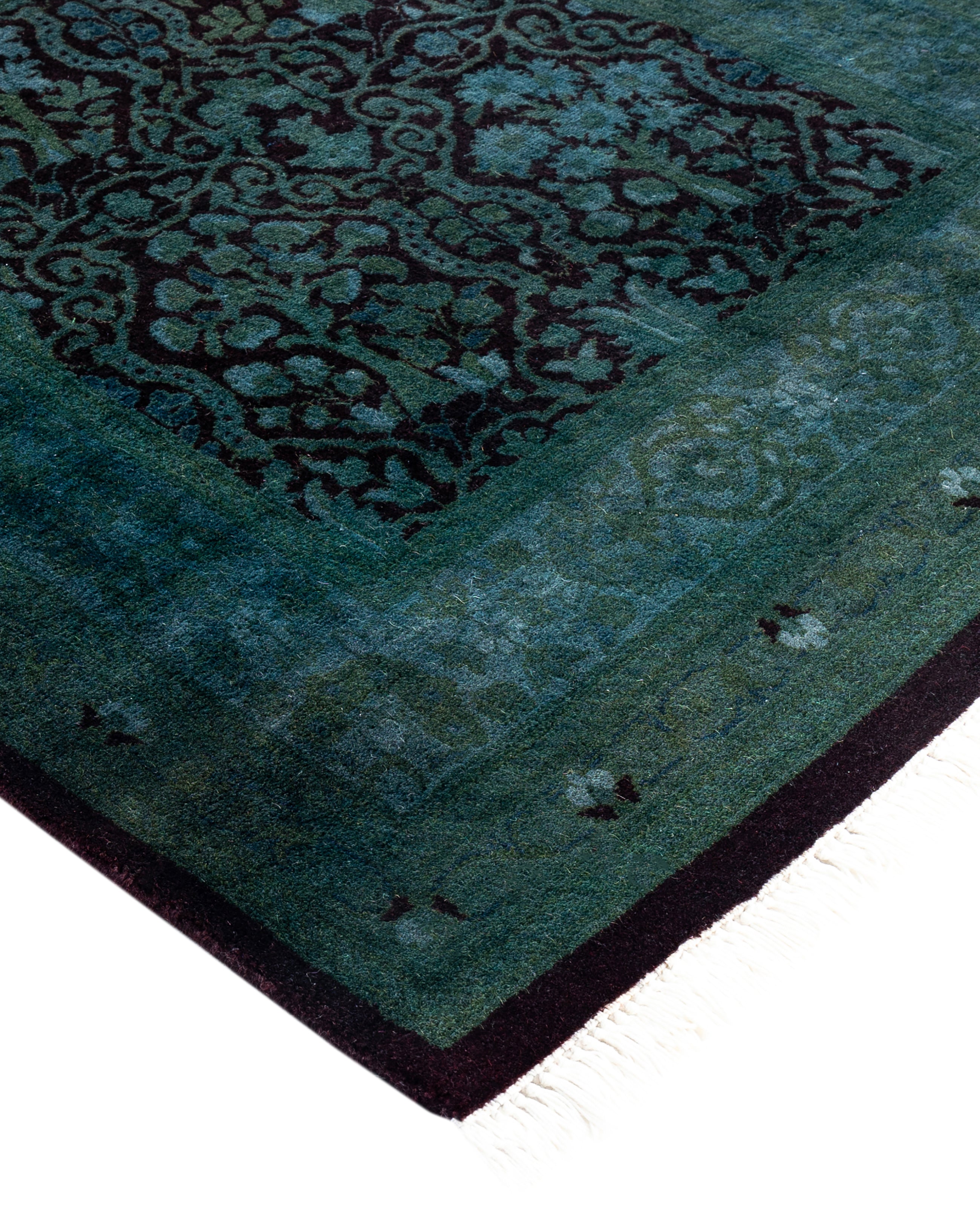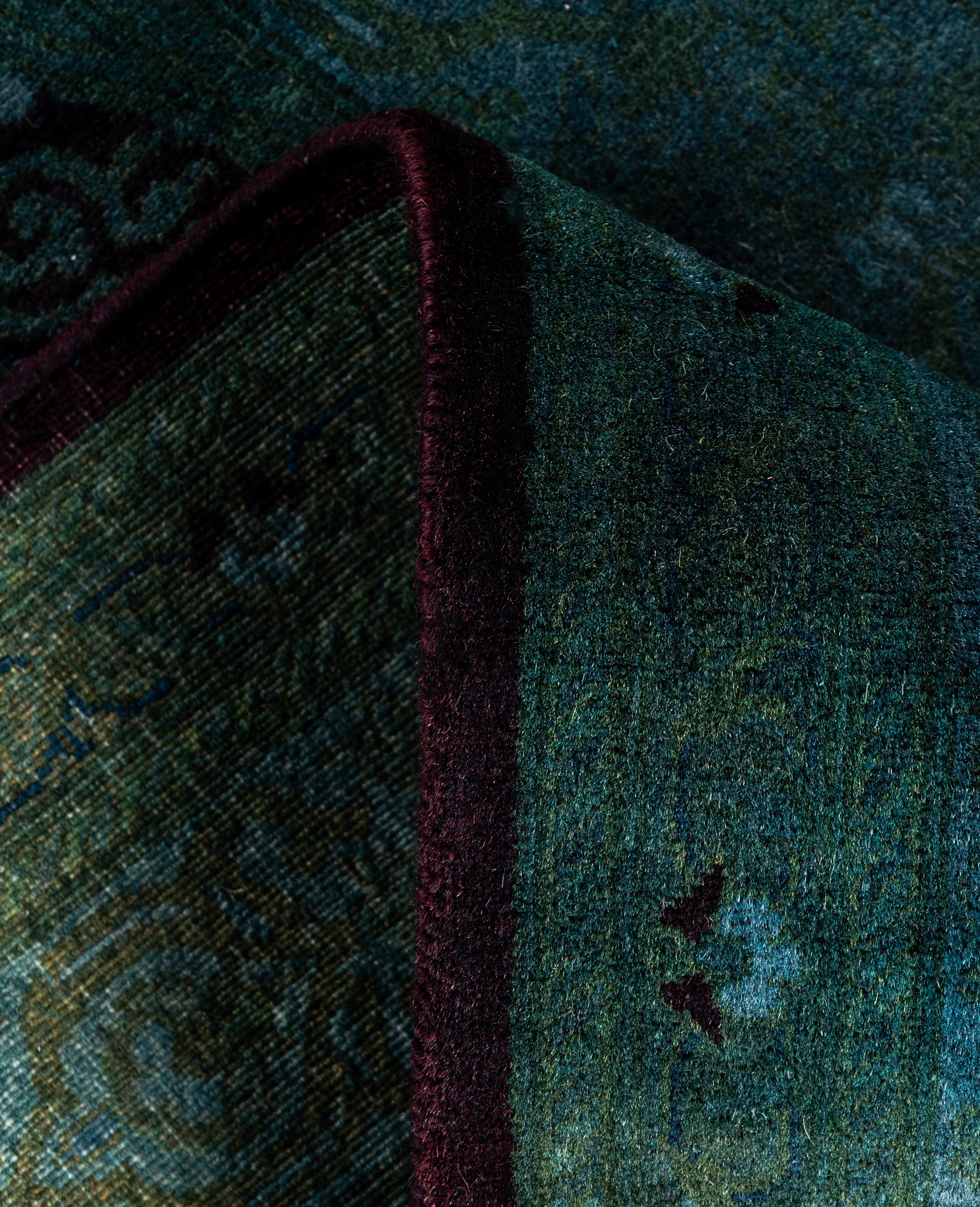 Over-dyed area rugs are created by taking vintage or traditional rugs and applying a vibrant, monochromatic dye over the existing patterns. This technique results in a bold, modern aesthetic while preserving the intricate designs beneath, blending the old with the new. The rugs are often faded and distressed before dyeing, which adds texture and depth to their appearance. The over-dye process breathes new life into worn or antique rugs, giving them a contemporary twist with rich, saturated colors like deep blues, purples, or bright reds. These rugs work well in both eclectic and modern spaces, offering a unique, artistic flair to any room. They provide a dynamic focal point, balancing between traditional craftsmanship and contemporary design trends. Over-dyed rugs are perfect for those looking to add a pop of color and character to their home decor.