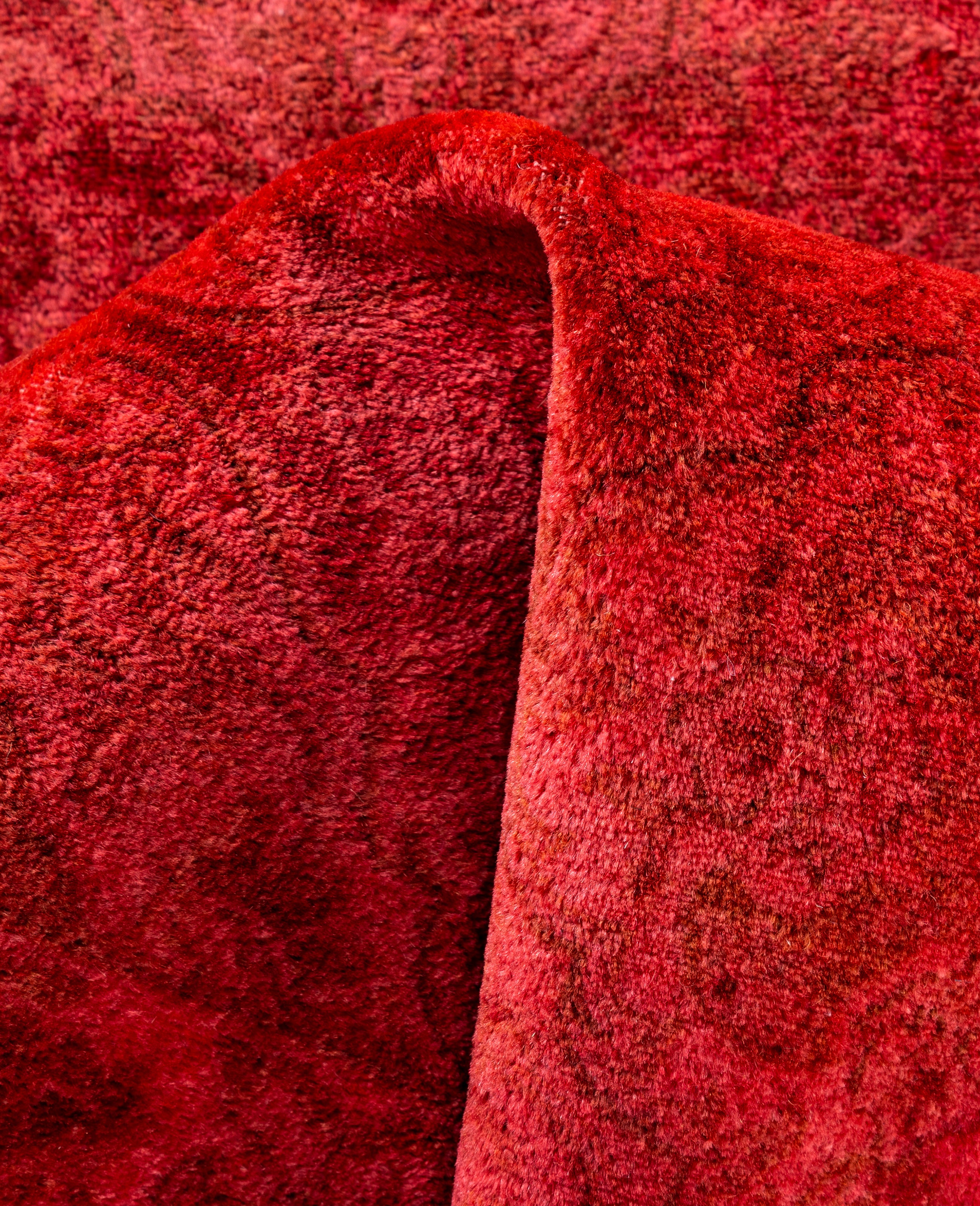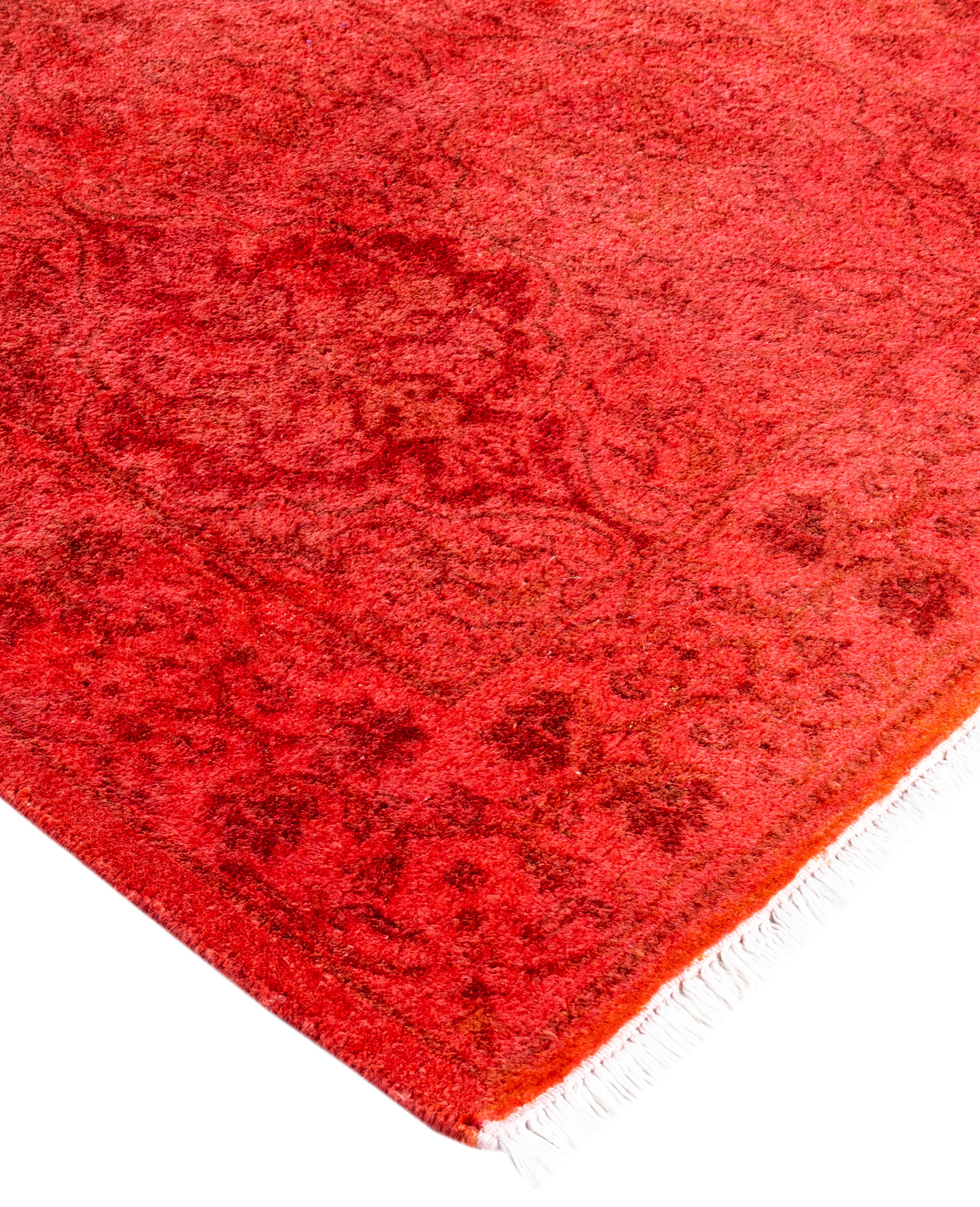 Over-dyed area rugs are created by taking vintage or traditional rugs and applying a vibrant, monochromatic dye over the existing patterns. This technique results in a bold, modern aesthetic while preserving the intricate designs beneath, blending the old with the new. The rugs are often faded and distressed before dyeing, which adds texture and depth to their appearance. The over-dye process breathes new life into worn or antique rugs, giving them a contemporary twist with rich, saturated colors like deep blues, purples, or bright reds. These rugs work well in both eclectic and modern spaces, offering a unique, artistic flair to any room. They provide a dynamic focal point, balancing between traditional craftsmanship and contemporary design trends. Over-dyed rugs are perfect for those looking to add a pop of color and character to their home decor.