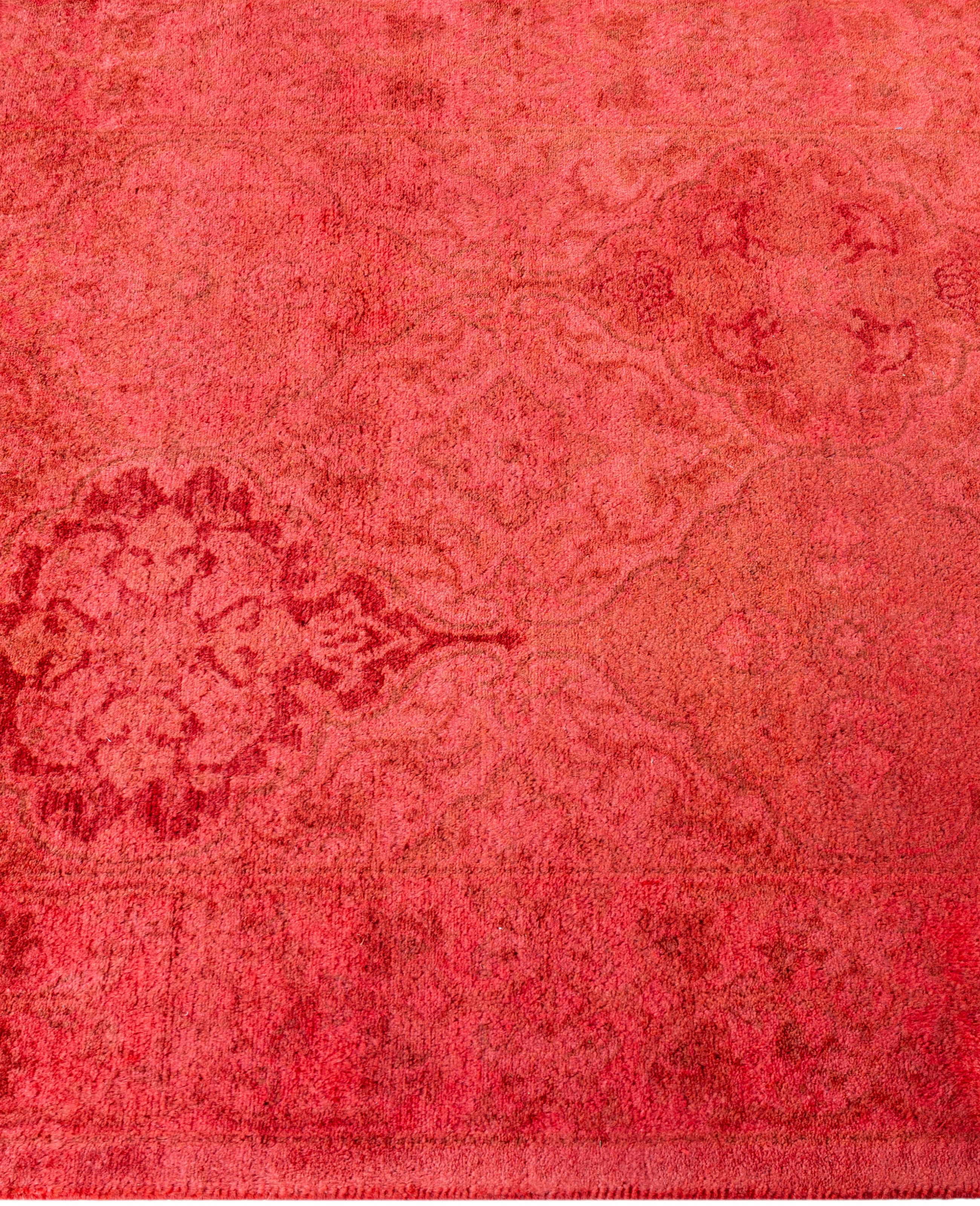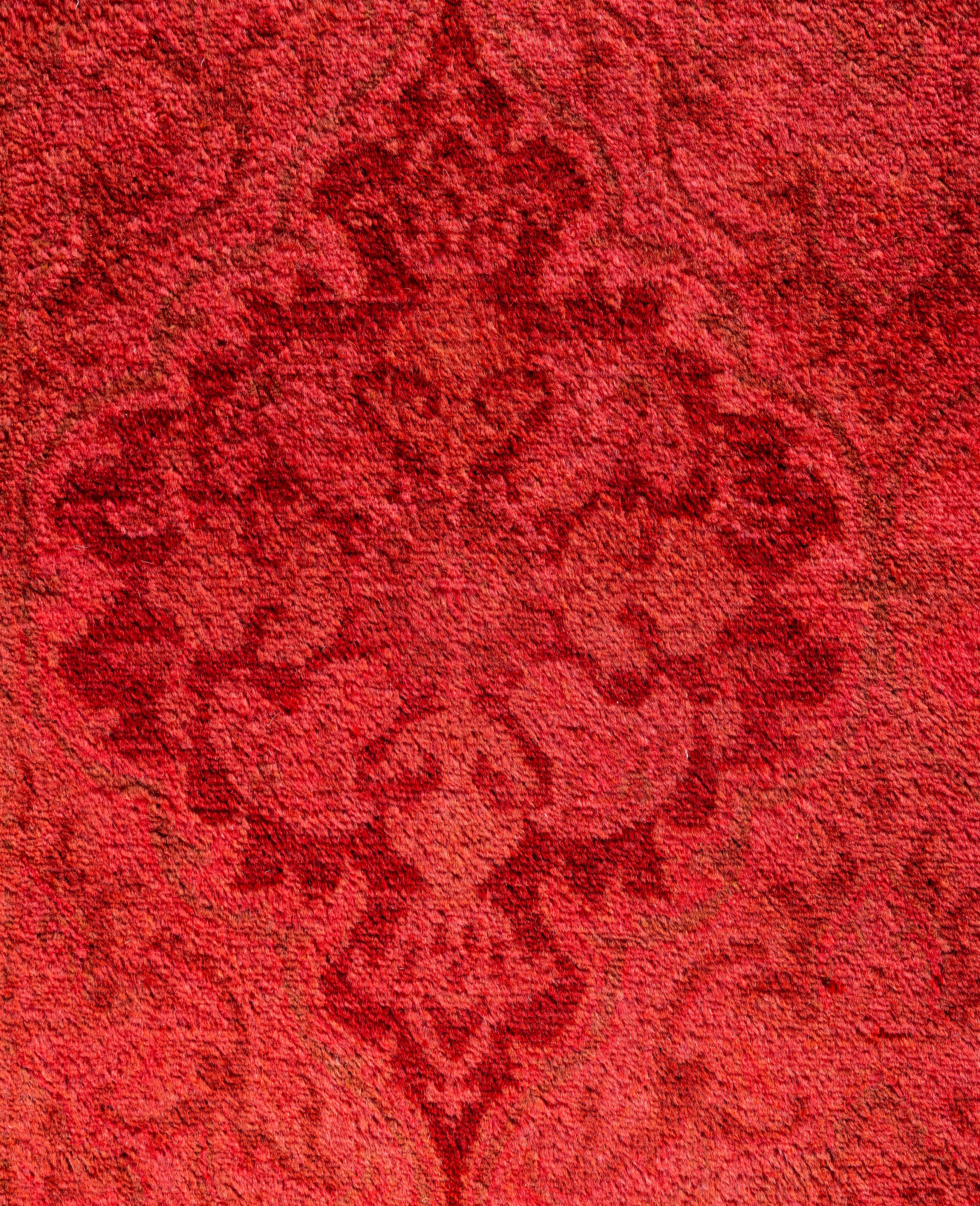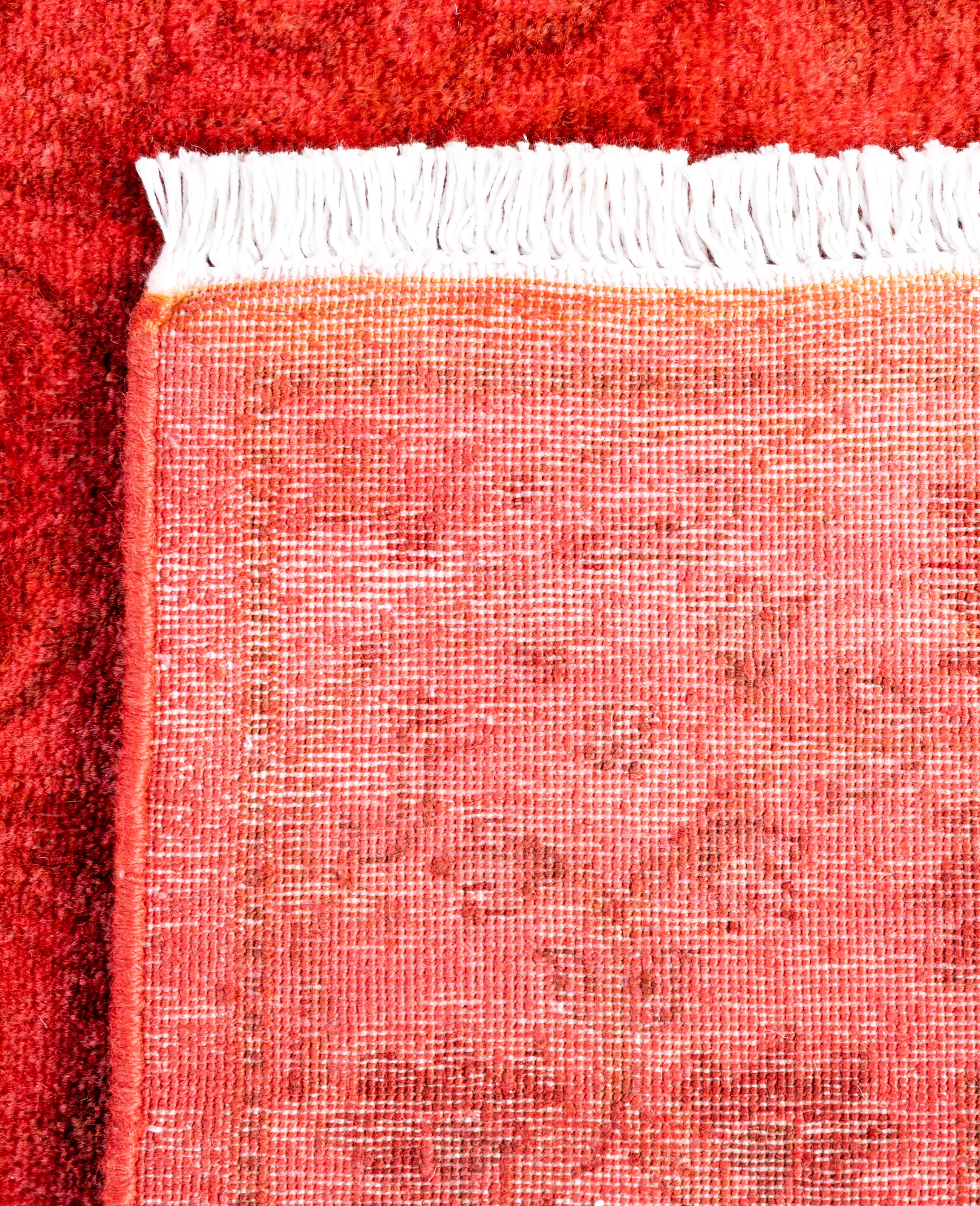 Contemporary Overdyed Wool Hand Knotted Red Runner 2' 6" x 13' 9"
