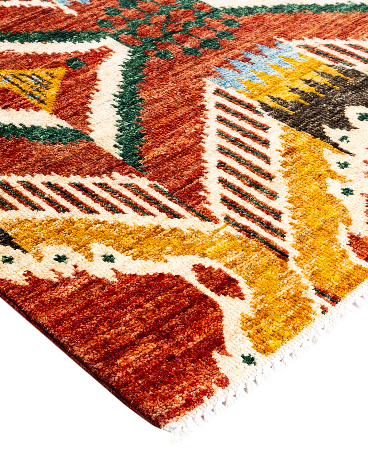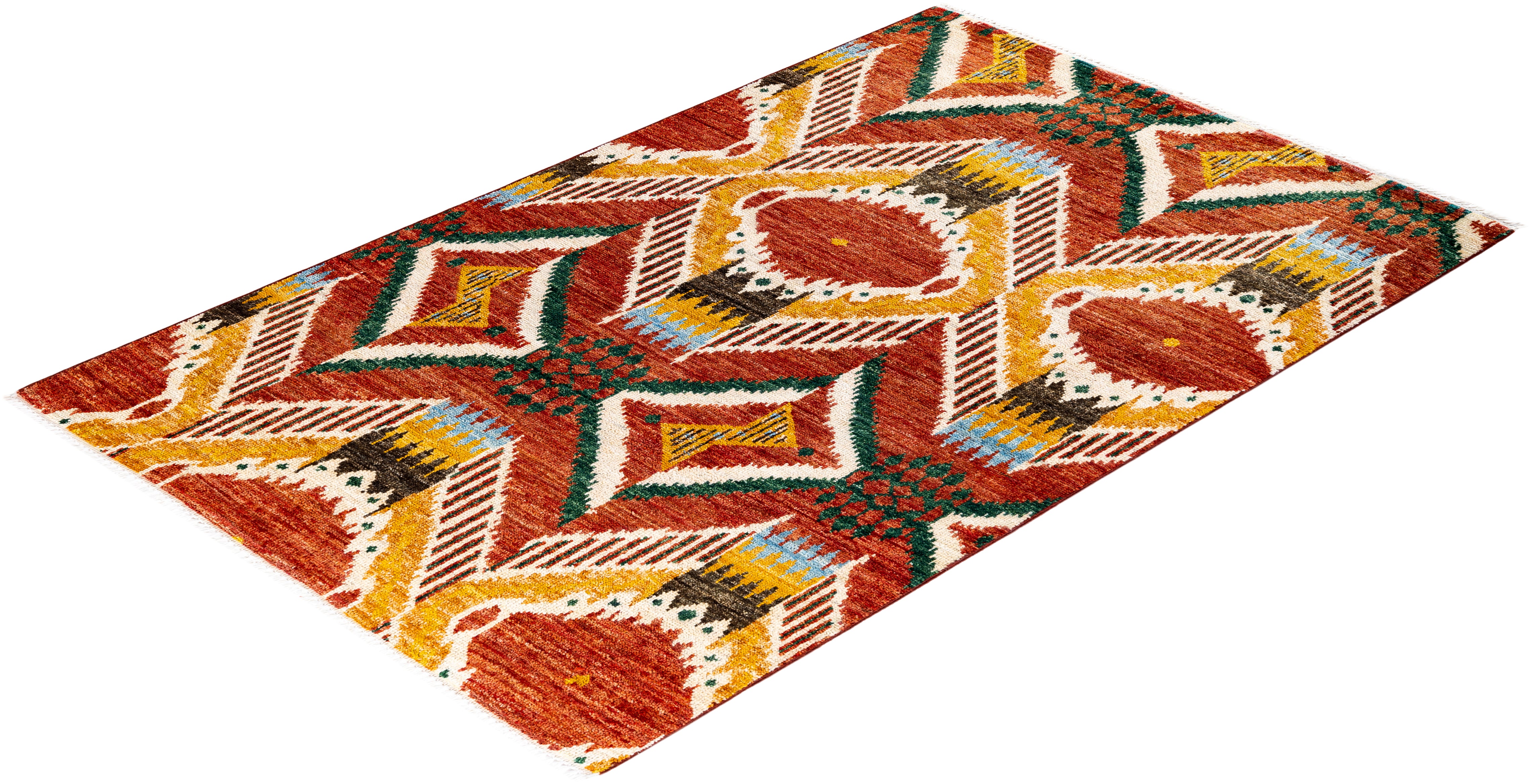 Contemporary Hand-Knotted Modern Abstract Red Area Rug 4' 1" x 6' 3"