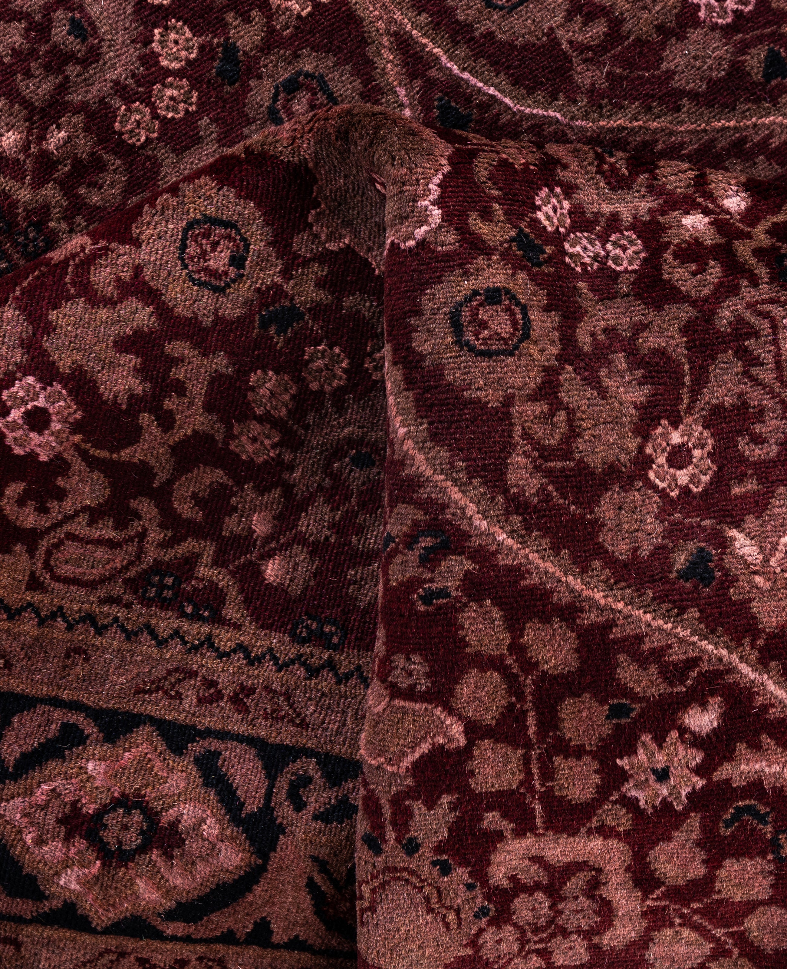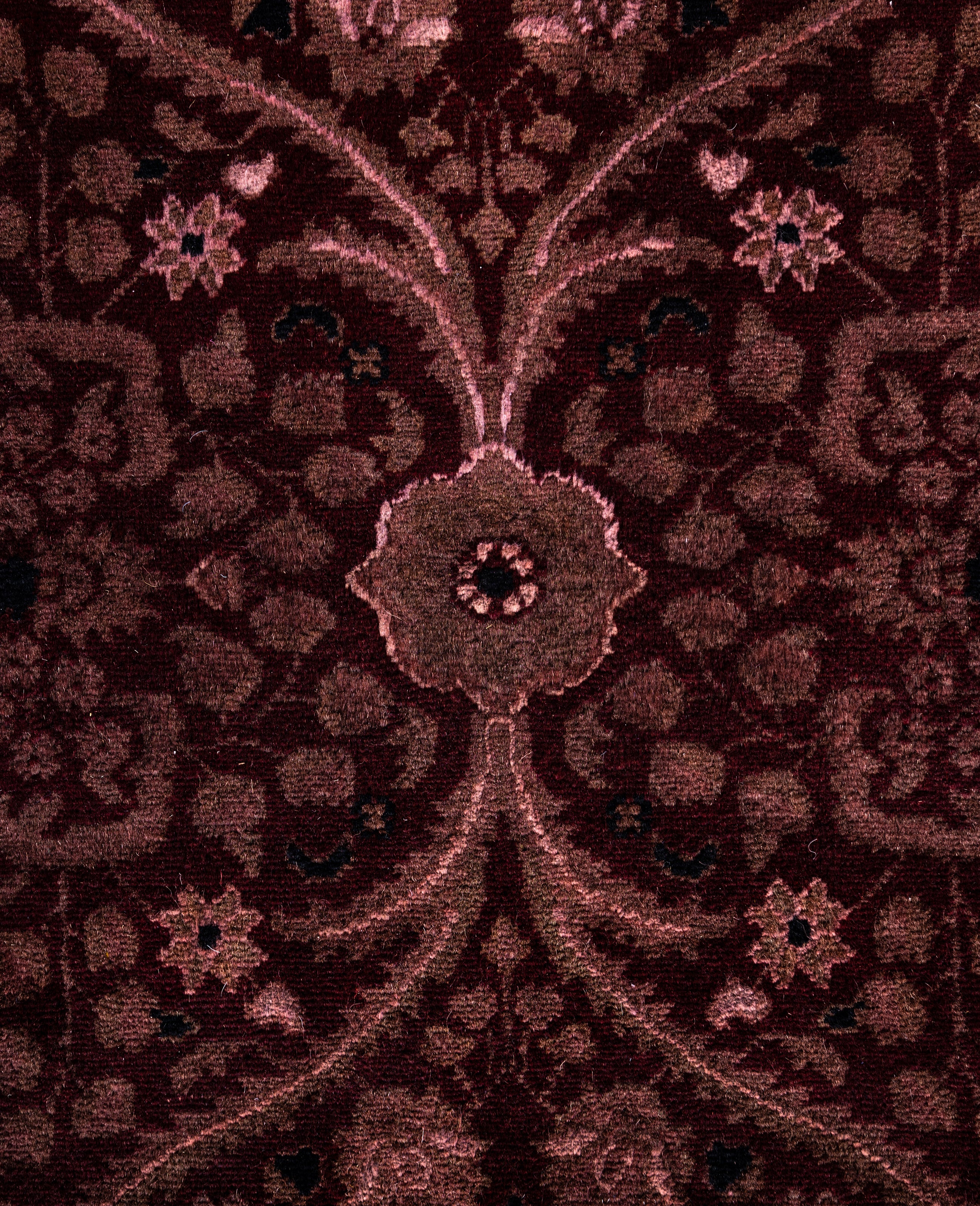 Over-dyed area rugs are created by taking vintage or traditional rugs and applying a vibrant, monochromatic dye over the existing patterns. This technique results in a bold, modern aesthetic while preserving the intricate designs beneath, blending the old with the new. The rugs are often faded and distressed before dyeing, which adds texture and depth to their appearance. The over-dye process breathes new life into worn or antique rugs, giving them a contemporary twist with rich, saturated colors like deep blues, purples, or bright reds. These rugs work well in both eclectic and modern spaces, offering a unique, artistic flair to any room. They provide a dynamic focal point, balancing between traditional craftsmanship and contemporary design trends. Over-dyed rugs are perfect for those looking to add a pop of color and character to their home decor.