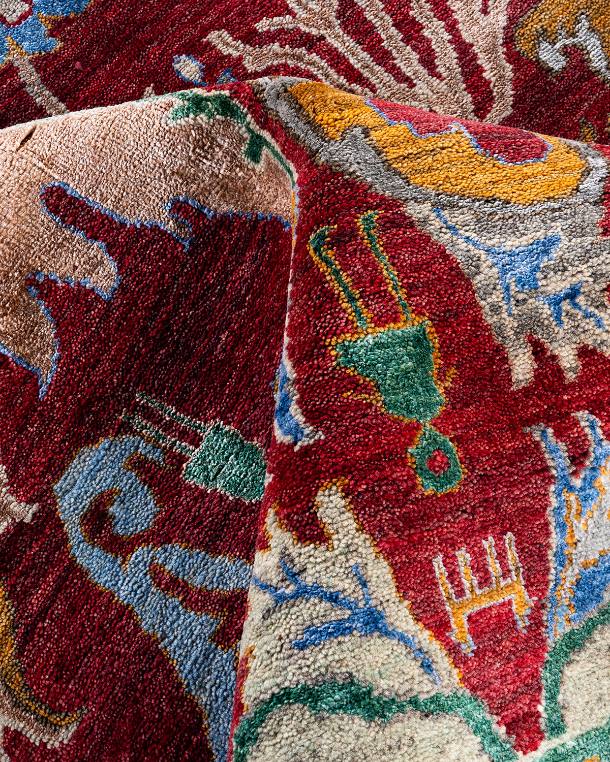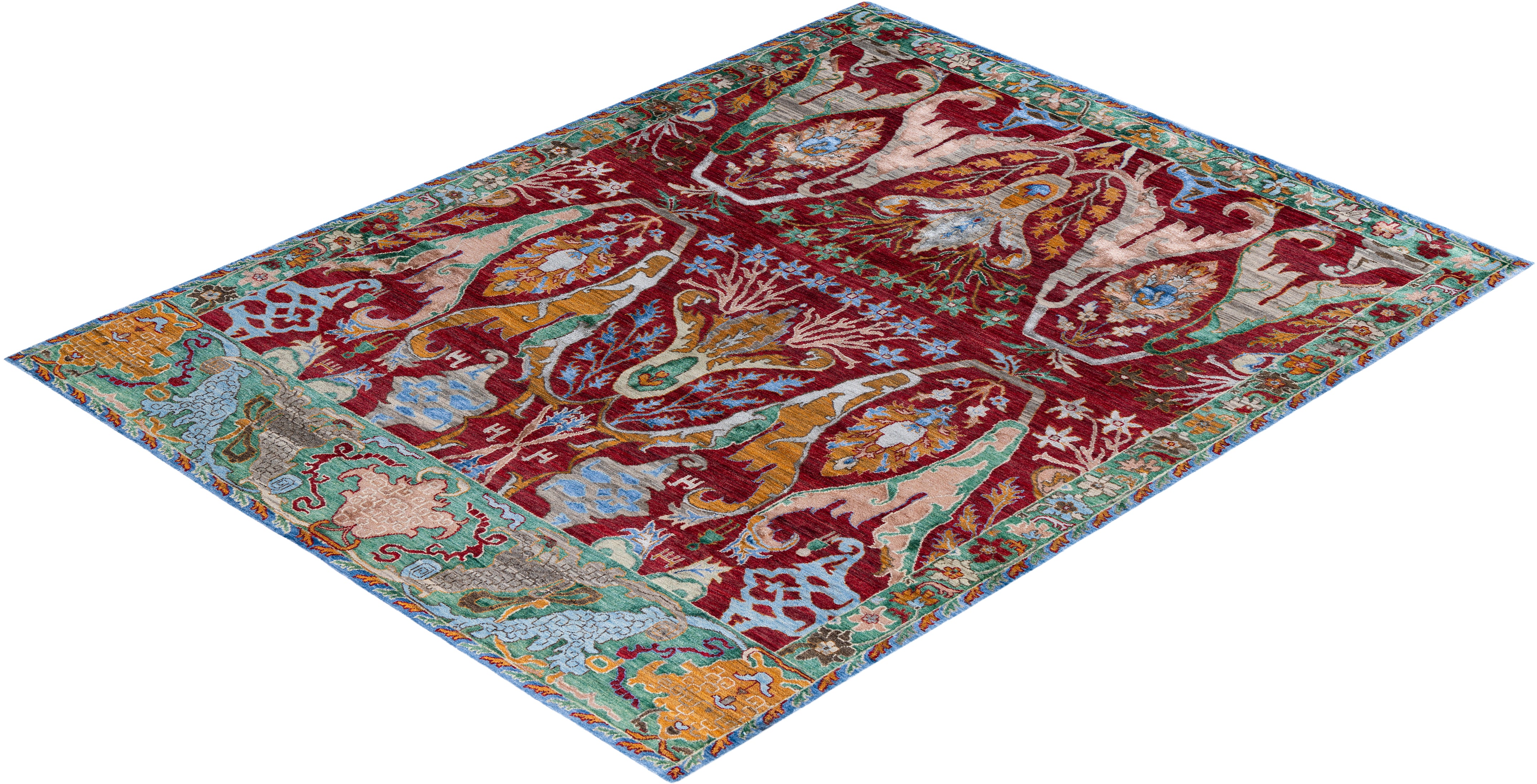 Contemporary Modern Hand Knotted Floral Silk & Wool Blend Red Area Rug 8' 1" x 10' 1"