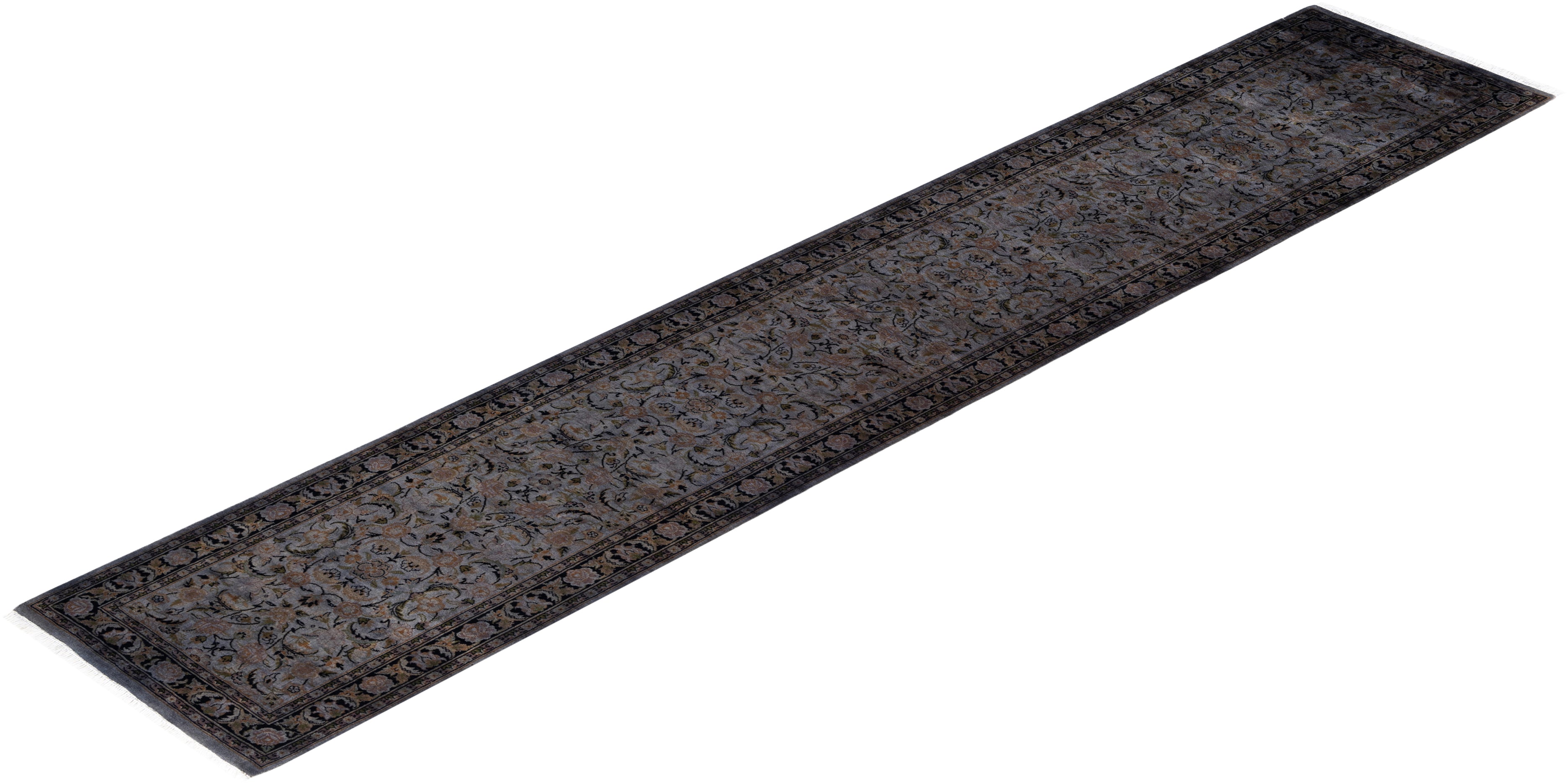 Contemporary Overdyed Wool Hand Knotted Gray Runner 2' 7" x 13' 5"