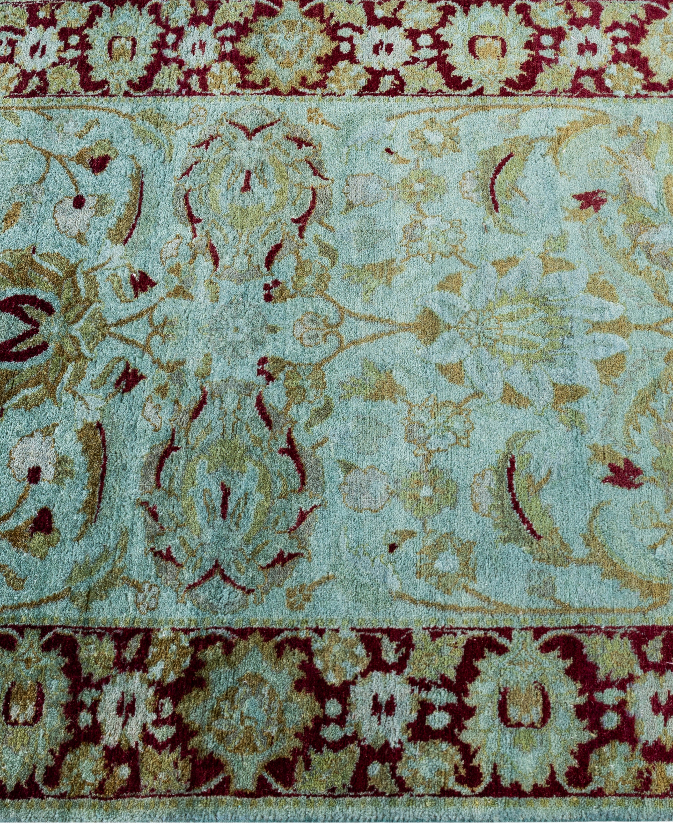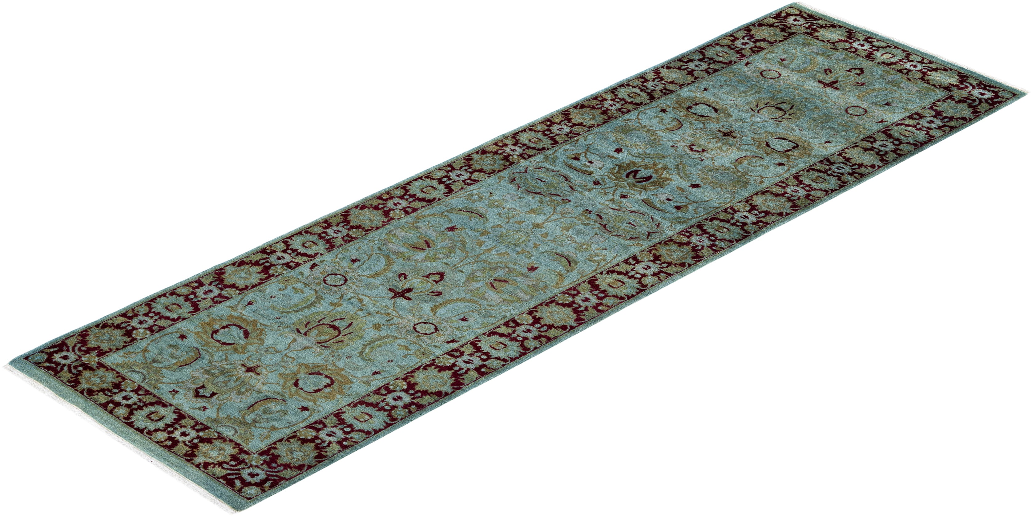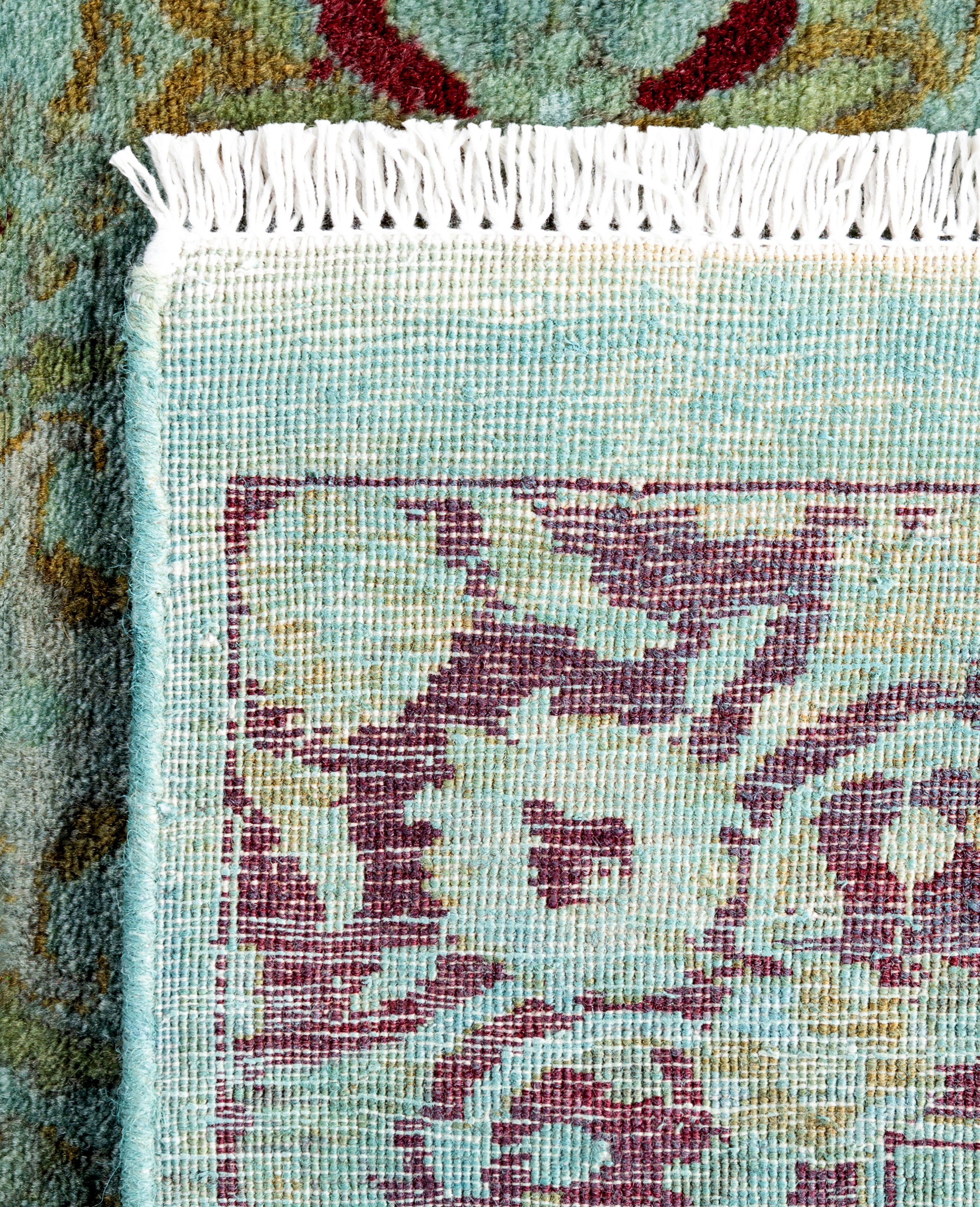 Contemporary Overdyed Wool Hand Knotted Green Runner 2' 6" x 8' 5"