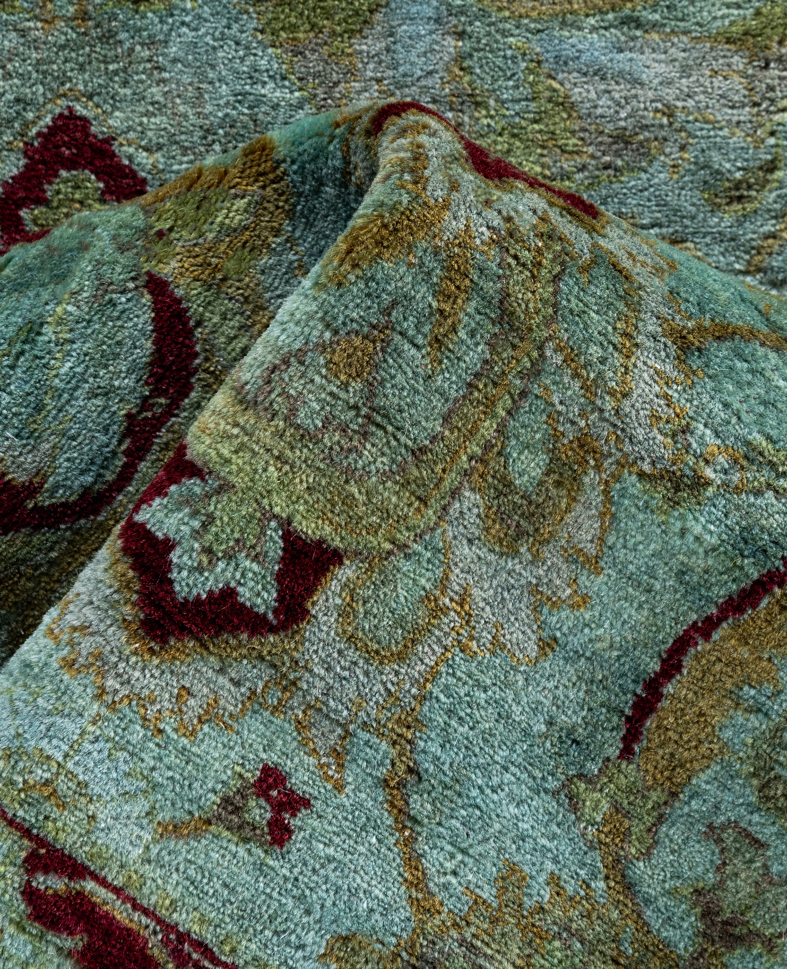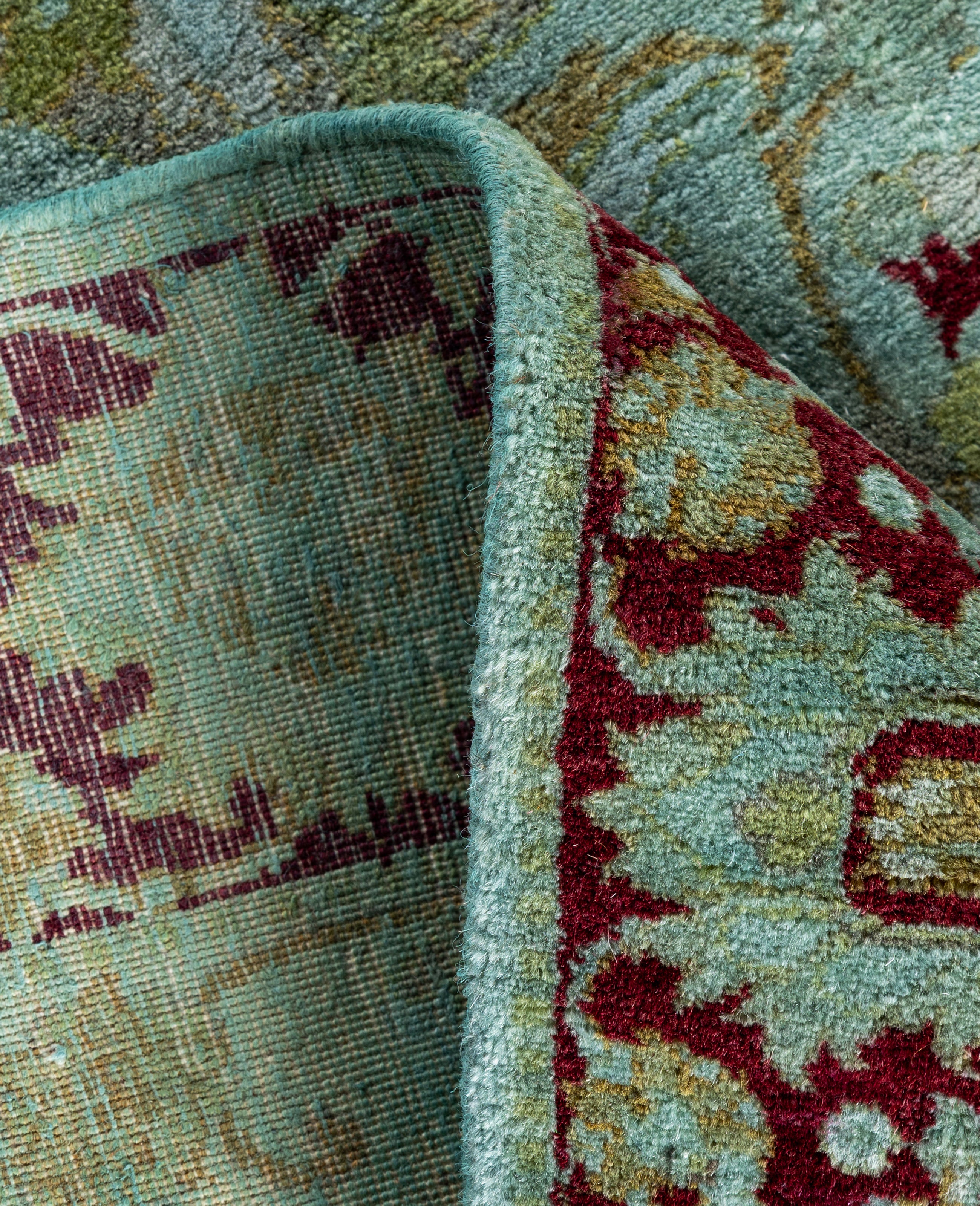 Over-dyed area rugs are created by taking vintage or traditional rugs and applying a vibrant, monochromatic dye over the existing patterns. This technique results in a bold, modern aesthetic while preserving the intricate designs beneath, blending the old with the new. The rugs are often faded and distressed before dyeing, which adds texture and depth to their appearance. The over-dye process breathes new life into worn or antique rugs, giving them a contemporary twist with rich, saturated colors like deep blues, purples, or bright reds. These rugs work well in both eclectic and modern spaces, offering a unique, artistic flair to any room. They provide a dynamic focal point, balancing between traditional craftsmanship and contemporary design trends. Over-dyed rugs are perfect for those looking to add a pop of color and character to their home decor.