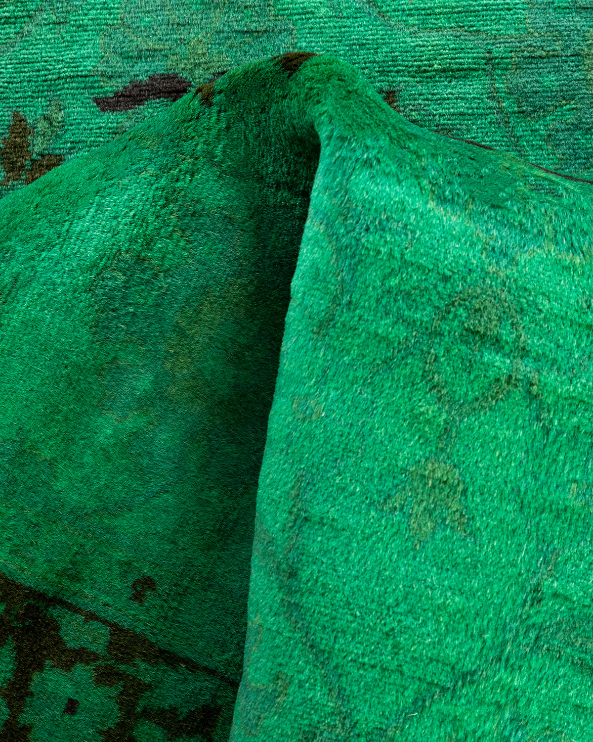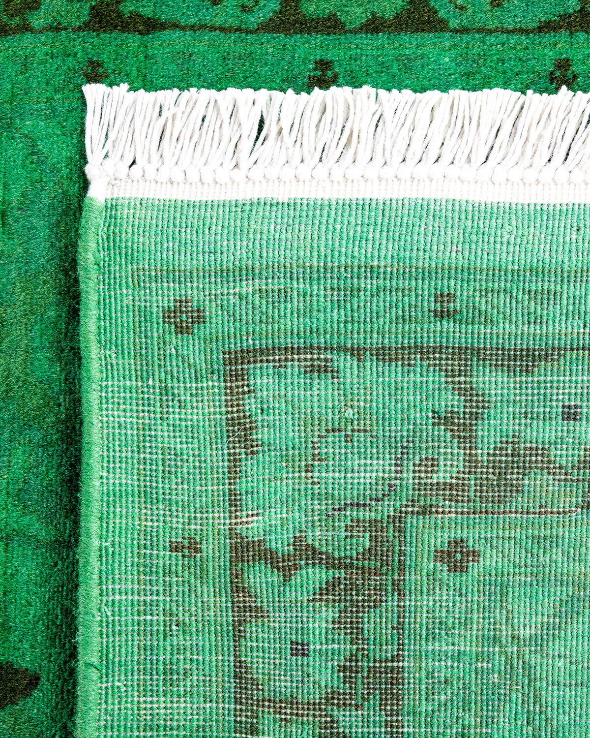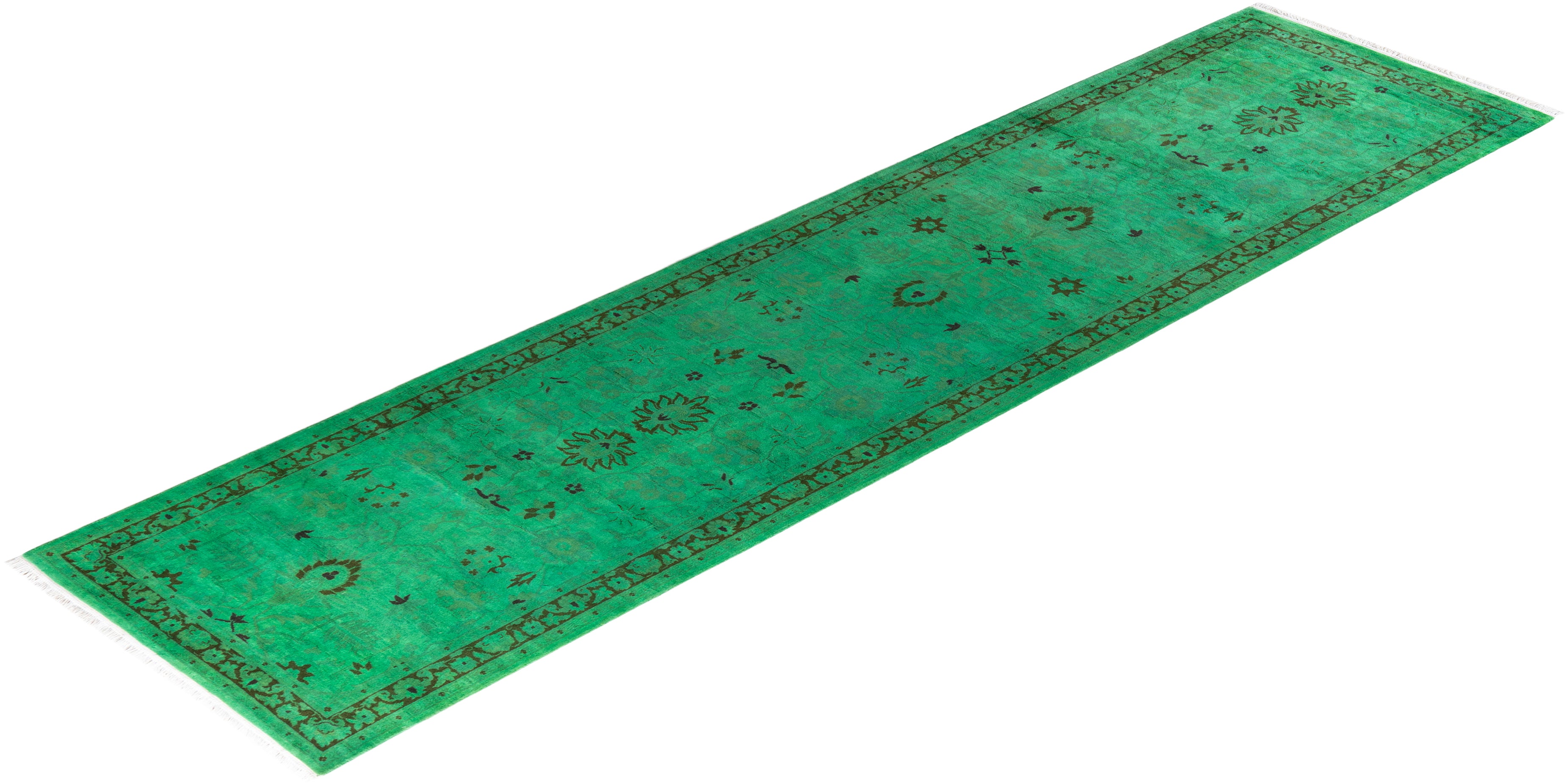 Contemporary Hand-Knotted Overdyed Green Runner 2' 6" x 10' 2"