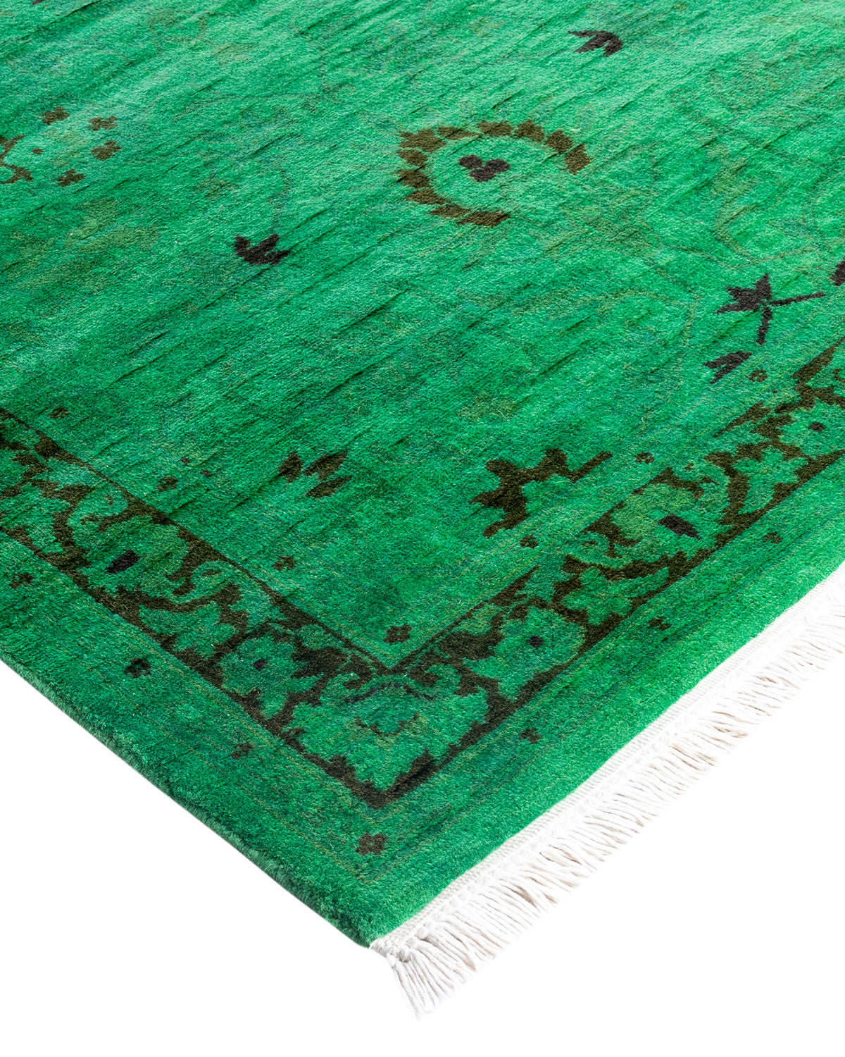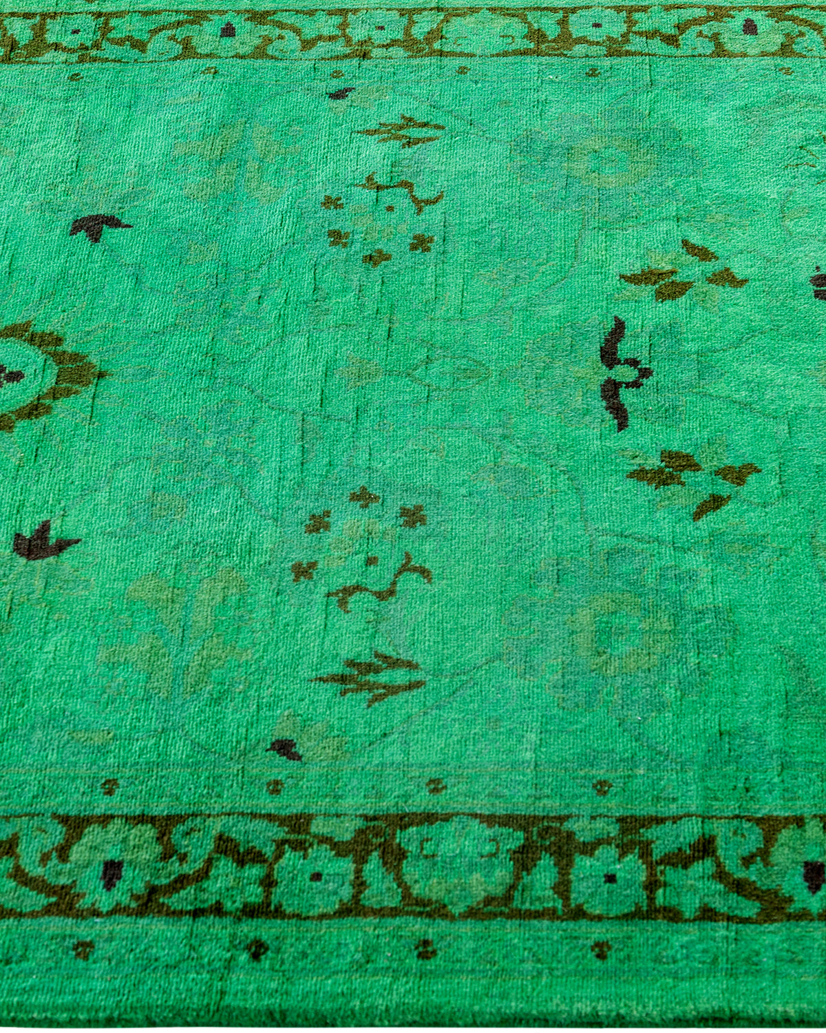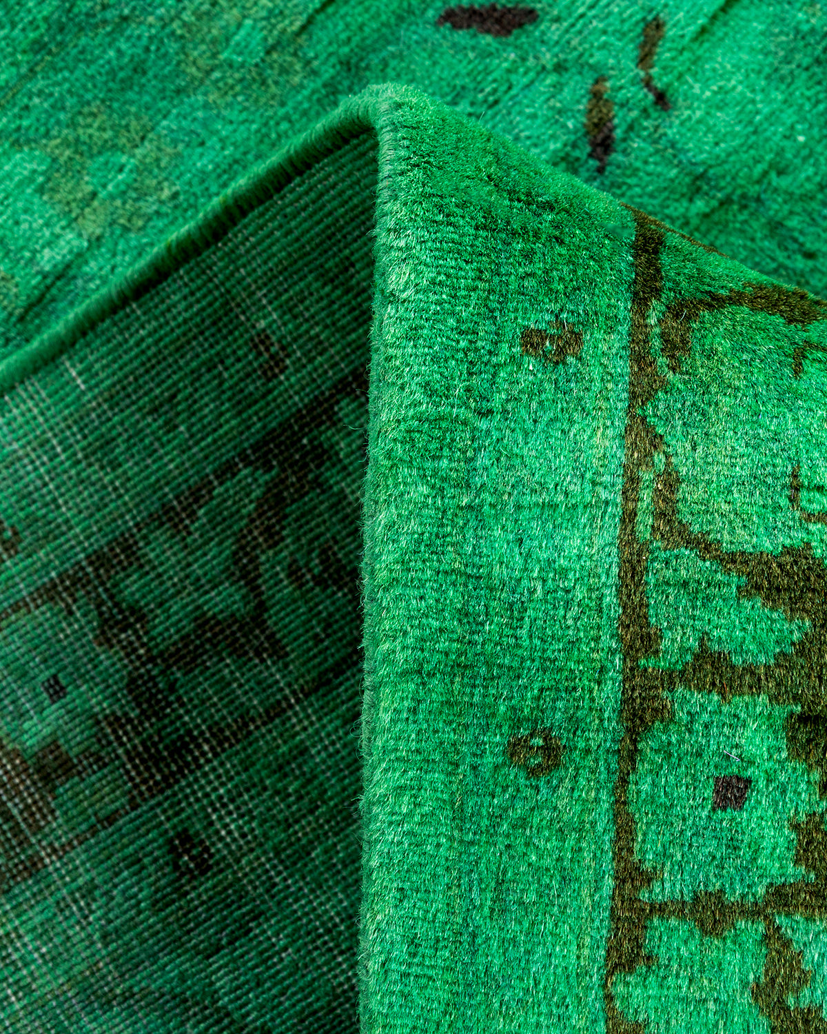 Contemporary Hand-Knotted Overdyed Green Runner 2' 6" x 10' 2"