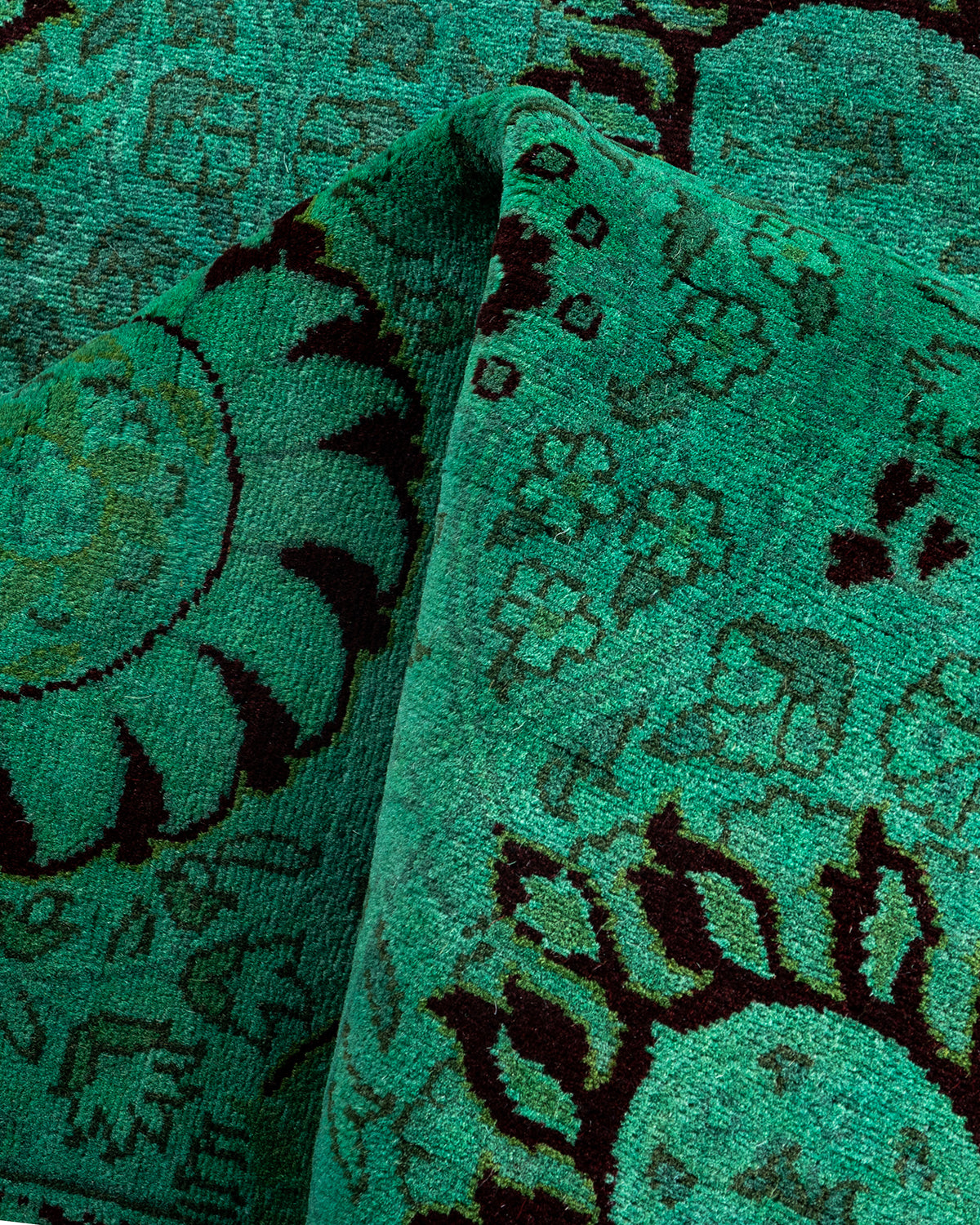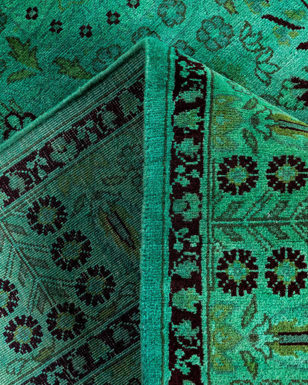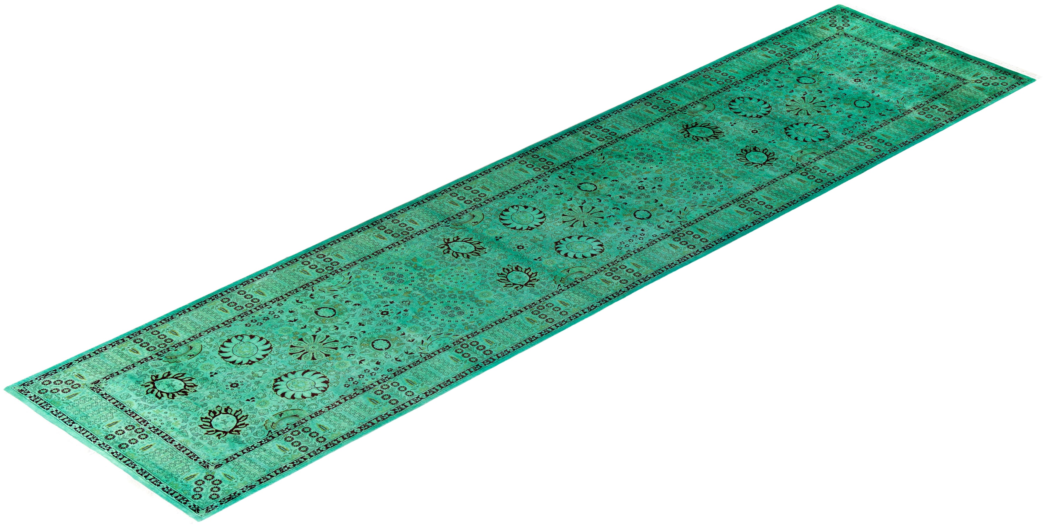 Contemporary Hand-Knotted Overdyed Green Runner 3' 0" x 12' 4"