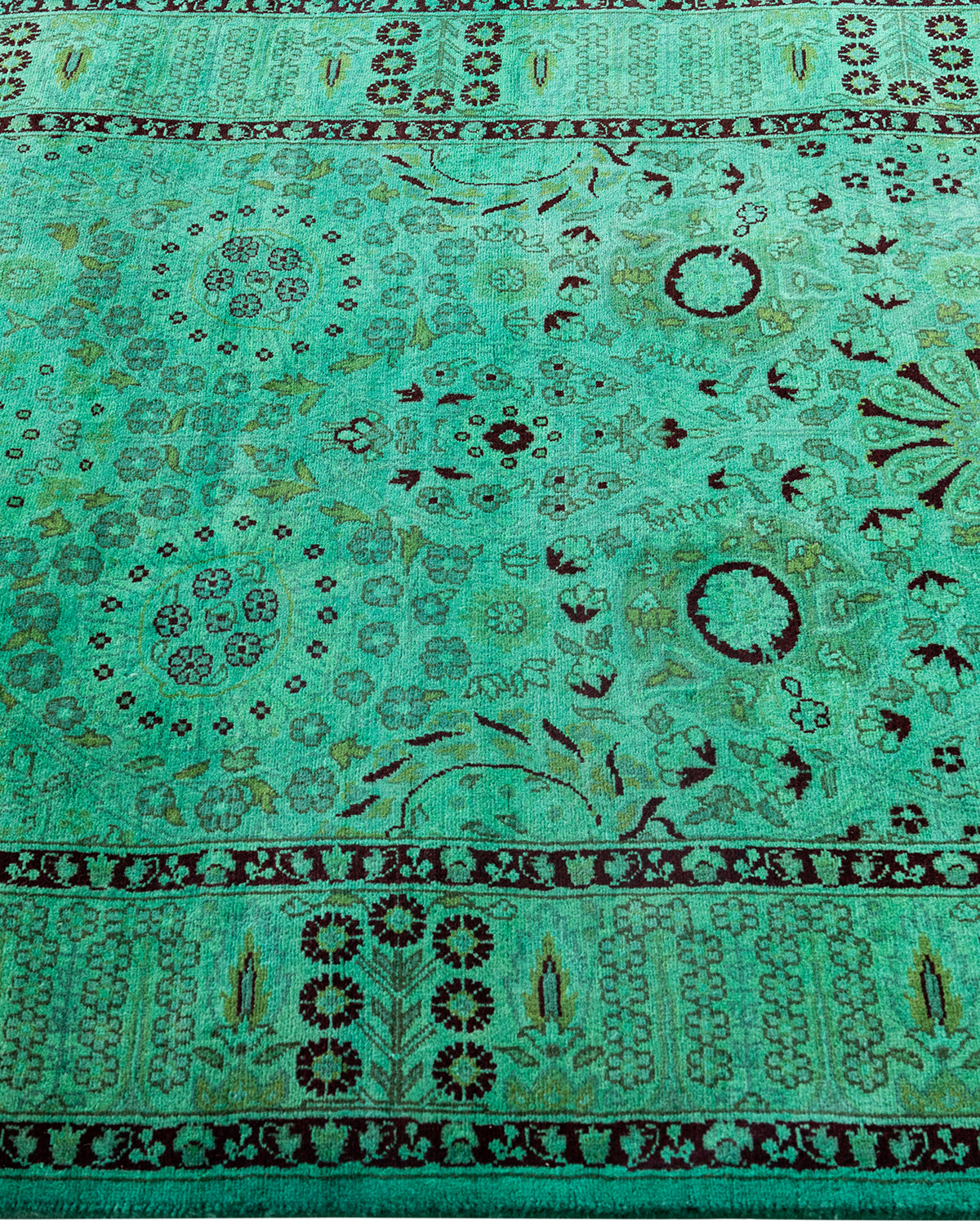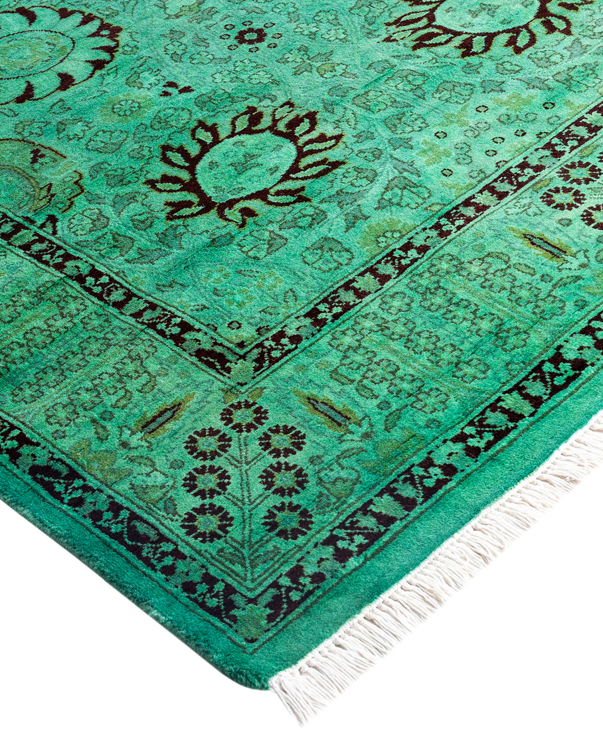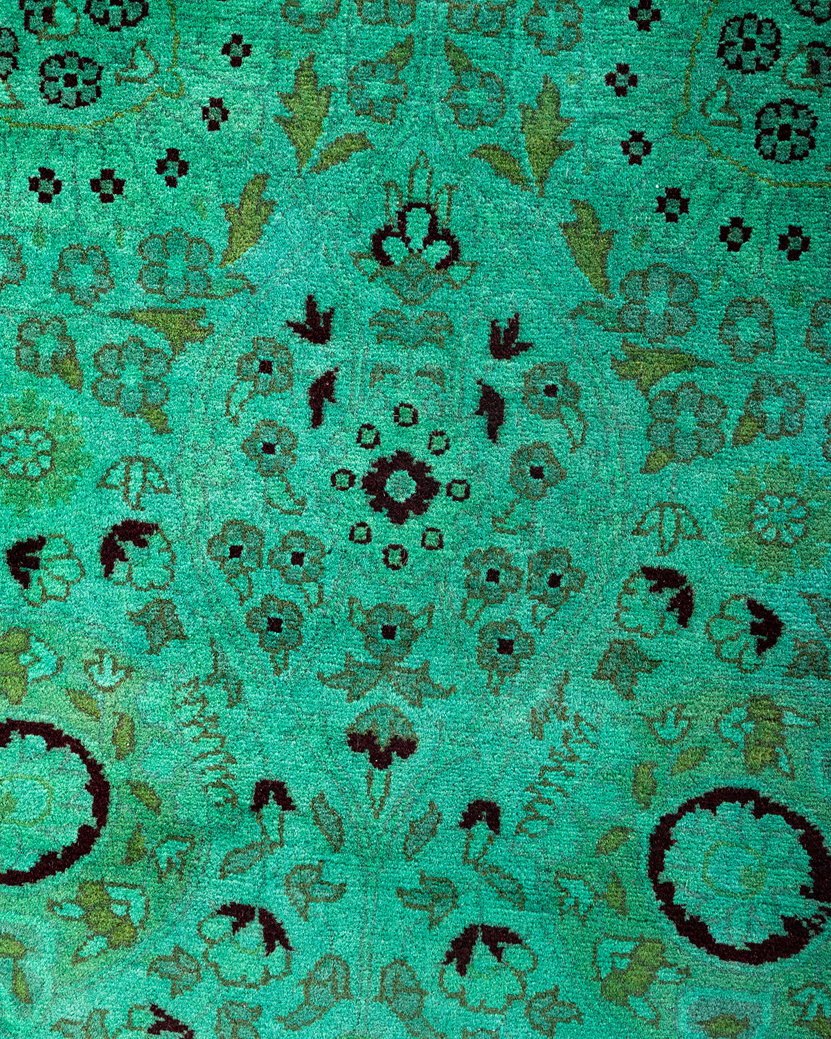 Contemporary Hand-Knotted Overdyed Green Runner 3' 0" x 12' 4"
