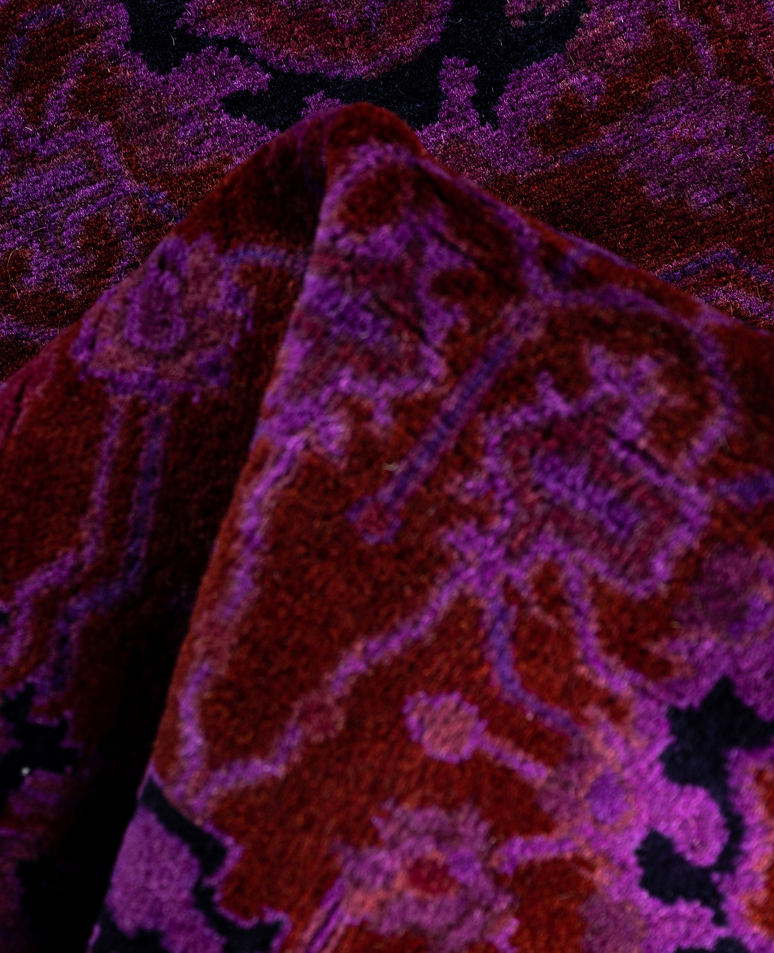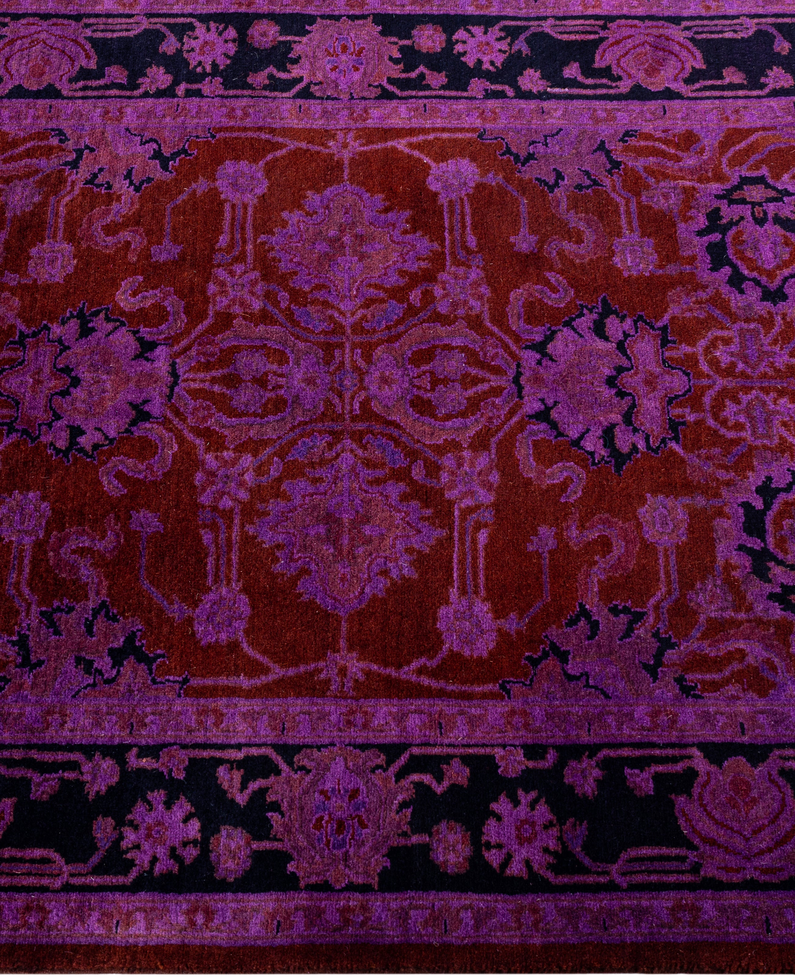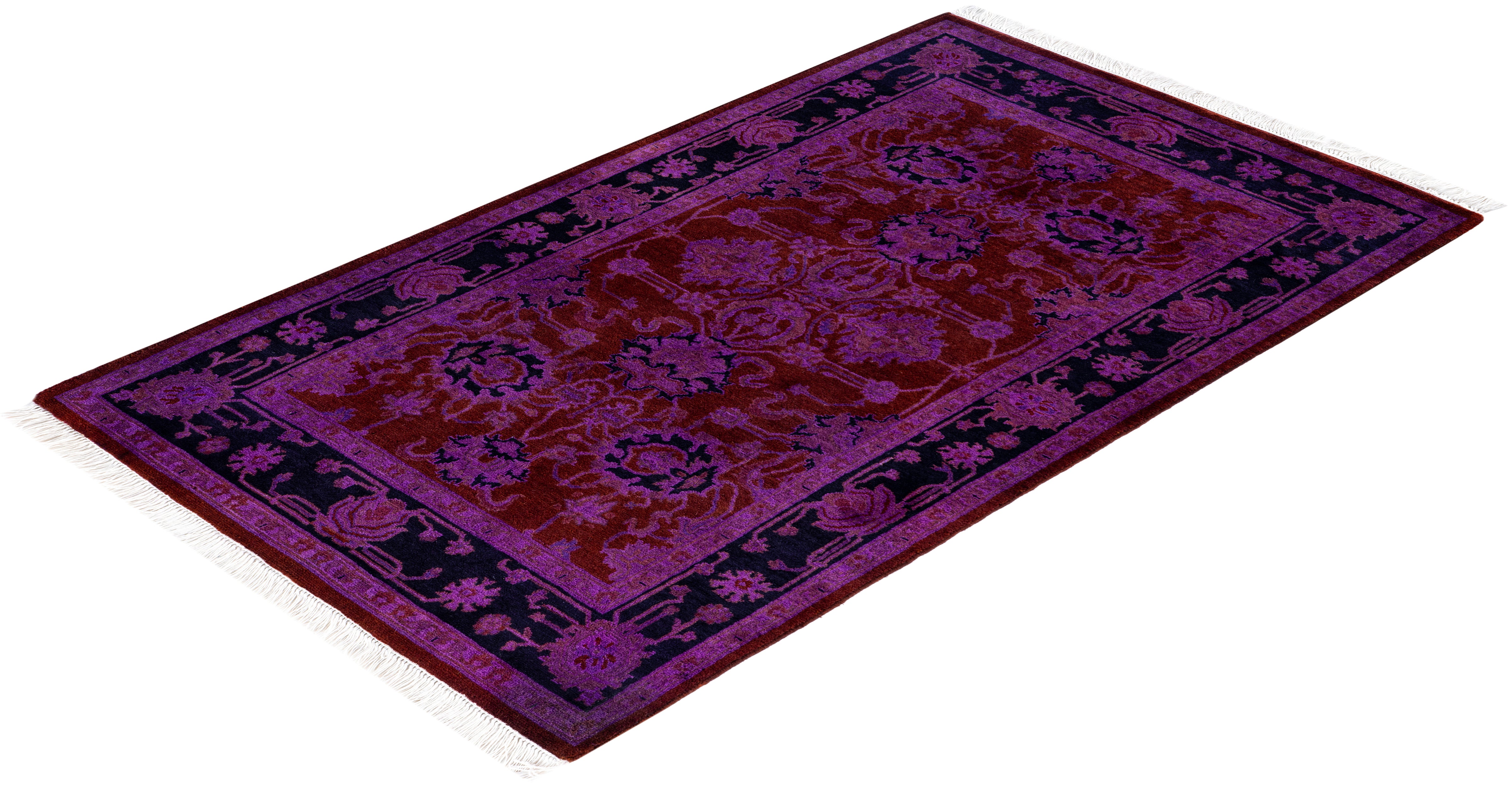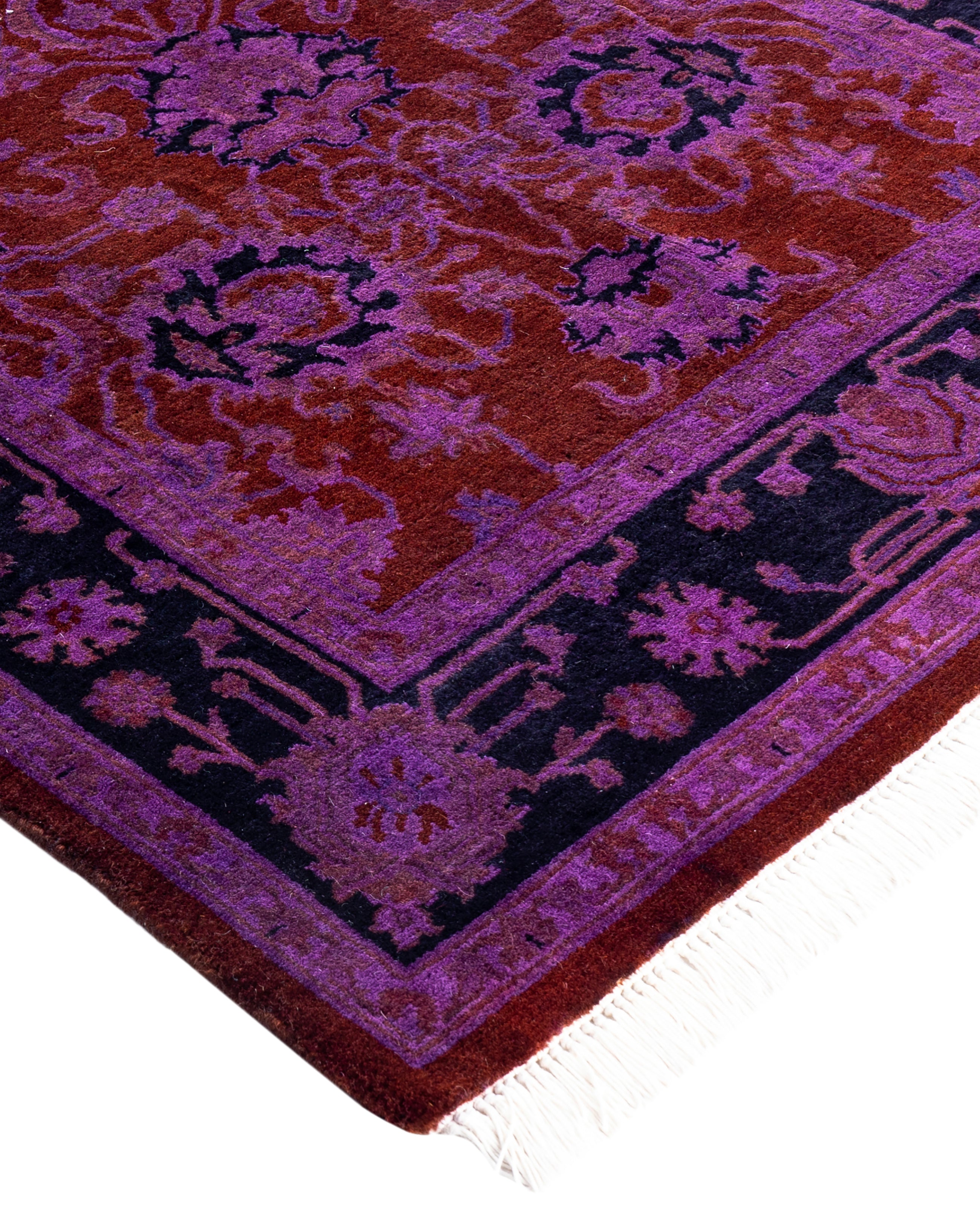 Over-dyed area rugs are created by taking vintage or traditional rugs and applying a vibrant, monochromatic dye over the existing patterns. This technique results in a bold, modern aesthetic while preserving the intricate designs beneath, blending the old with the new. The rugs are often faded and distressed before dyeing, which adds texture and depth to their appearance. The over-dye process breathes new life into worn or antique rugs, giving them a contemporary twist with rich, saturated colors like deep blues, purples, or bright reds. These rugs work well in both eclectic and modern spaces, offering a unique, artistic flair to any room. They provide a dynamic focal point, balancing between traditional craftsmanship and contemporary design trends. Over-dyed rugs are perfect for those looking to add a pop of color and character to their home decor.