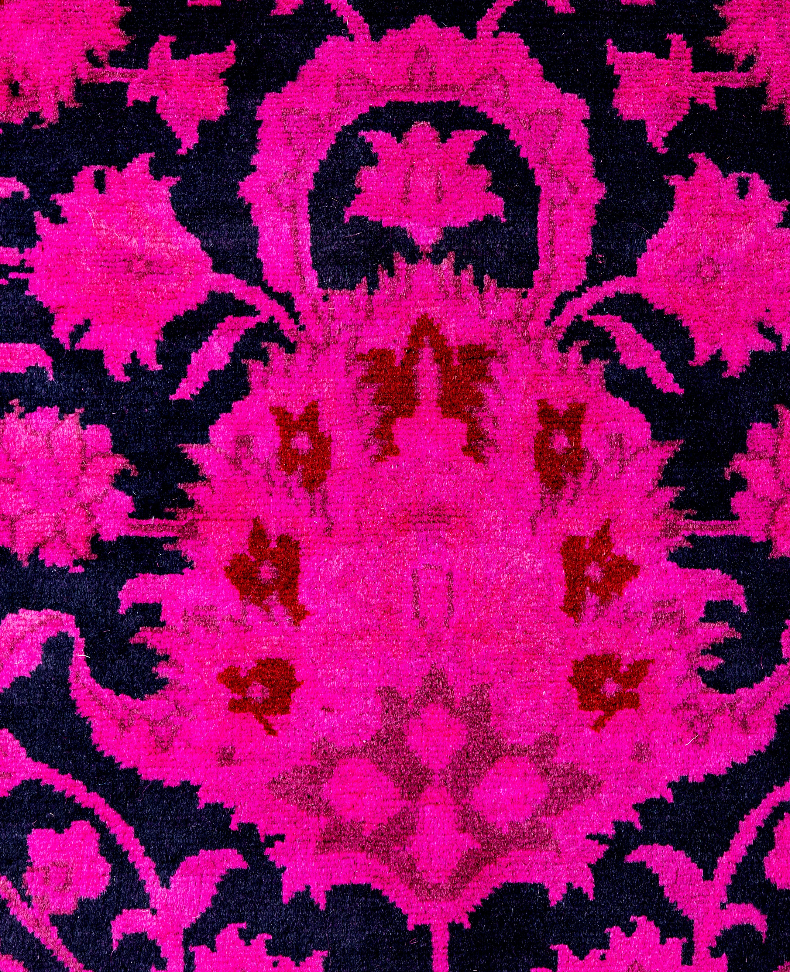 Over-dyed area rugs are created by taking vintage or traditional rugs and applying a vibrant, monochromatic dye over the existing patterns. This technique results in a bold, modern aesthetic while preserving the intricate designs beneath, blending the old with the new. The rugs are often faded and distressed before dyeing, which adds texture and depth to their appearance. The over-dye process breathes new life into worn or antique rugs, giving them a contemporary twist with rich, saturated colors like deep blues, purples, or bright reds. These rugs work well in both eclectic and modern spaces, offering a unique, artistic flair to any room. They provide a dynamic focal point, balancing between traditional craftsmanship and contemporary design trends. Over-dyed rugs are perfect for those looking to add a pop of color and character to their home decor.