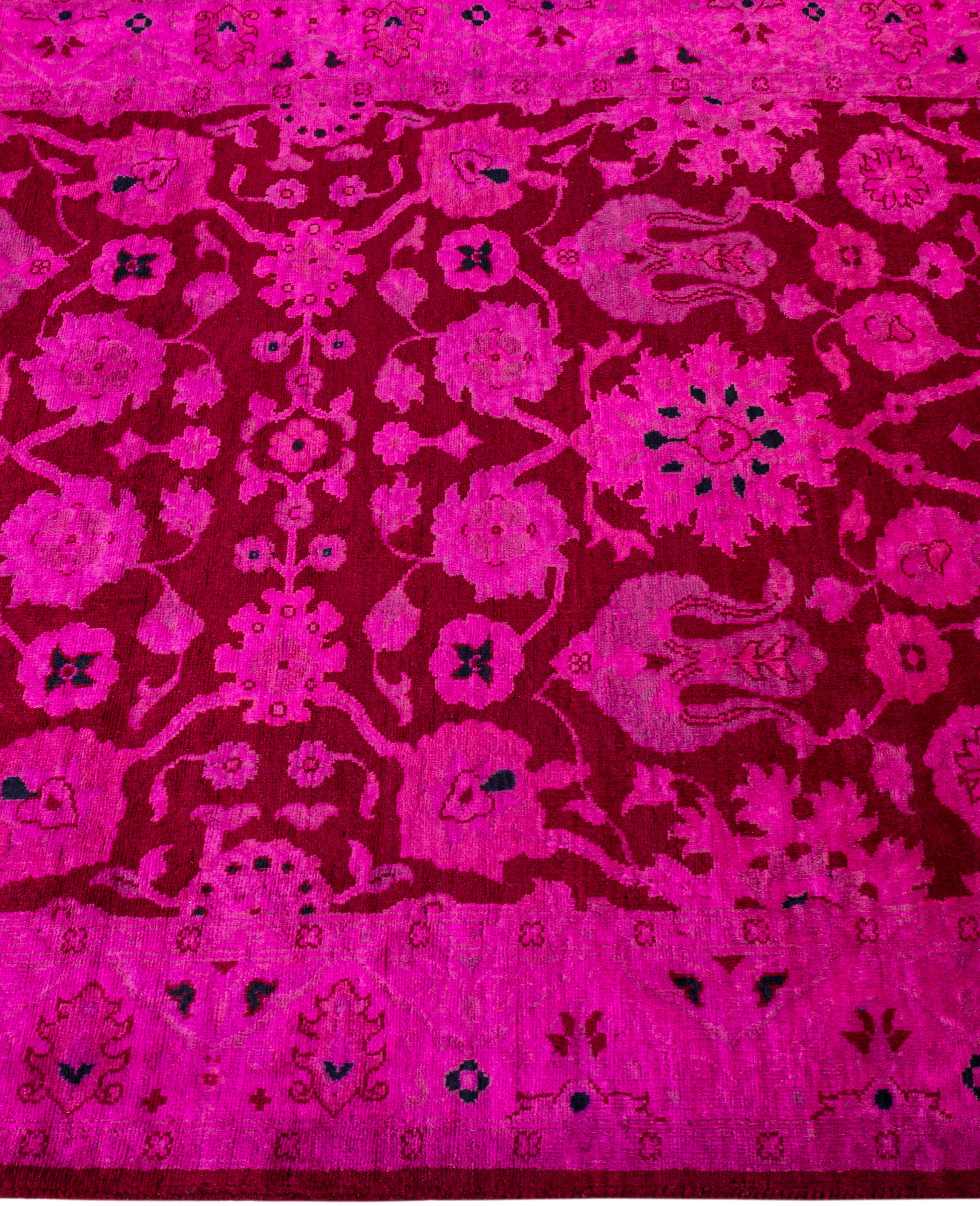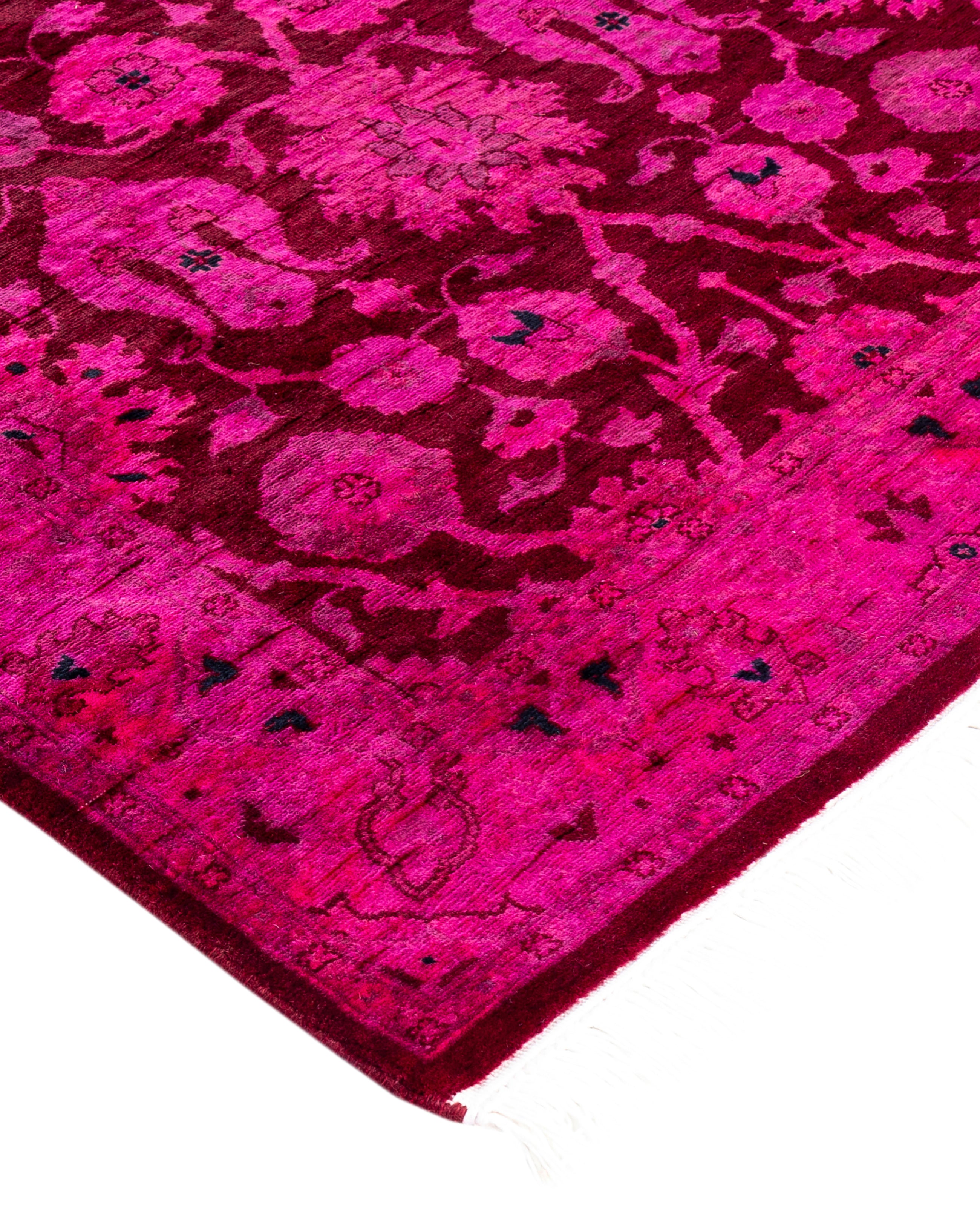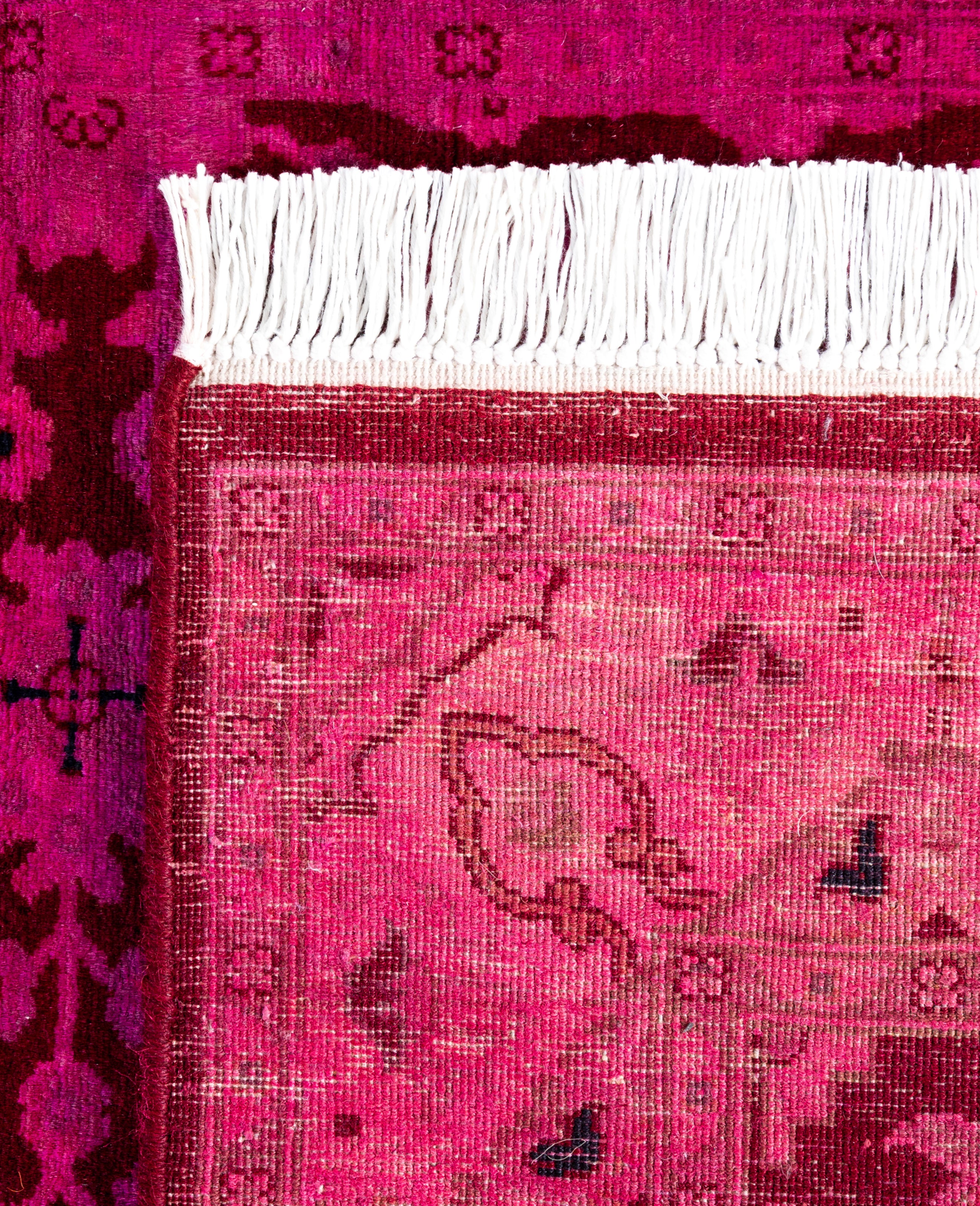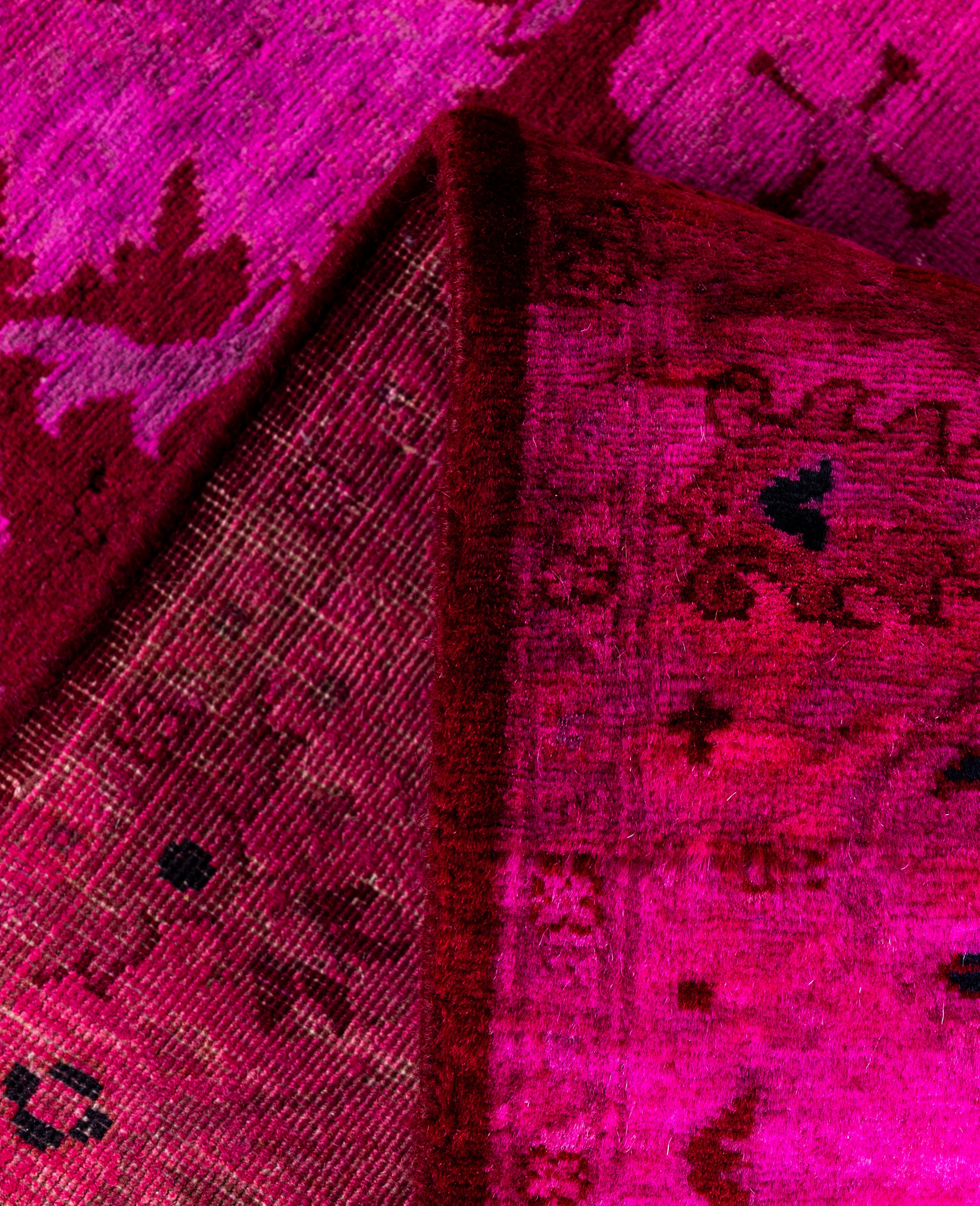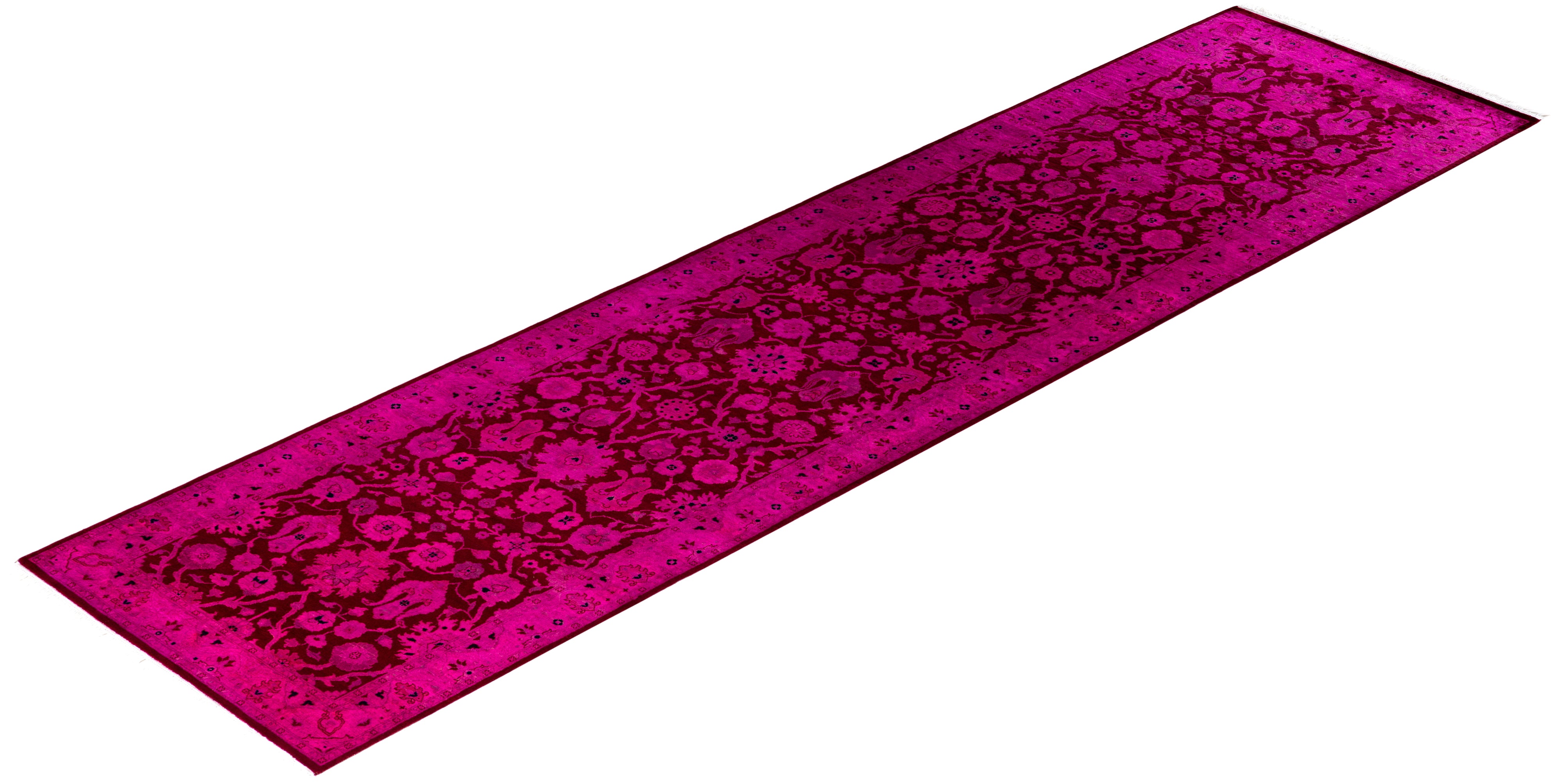 Contemporary Overdyed Wool Hand Knotted Pink Runner 2' 7" x 10' 1"