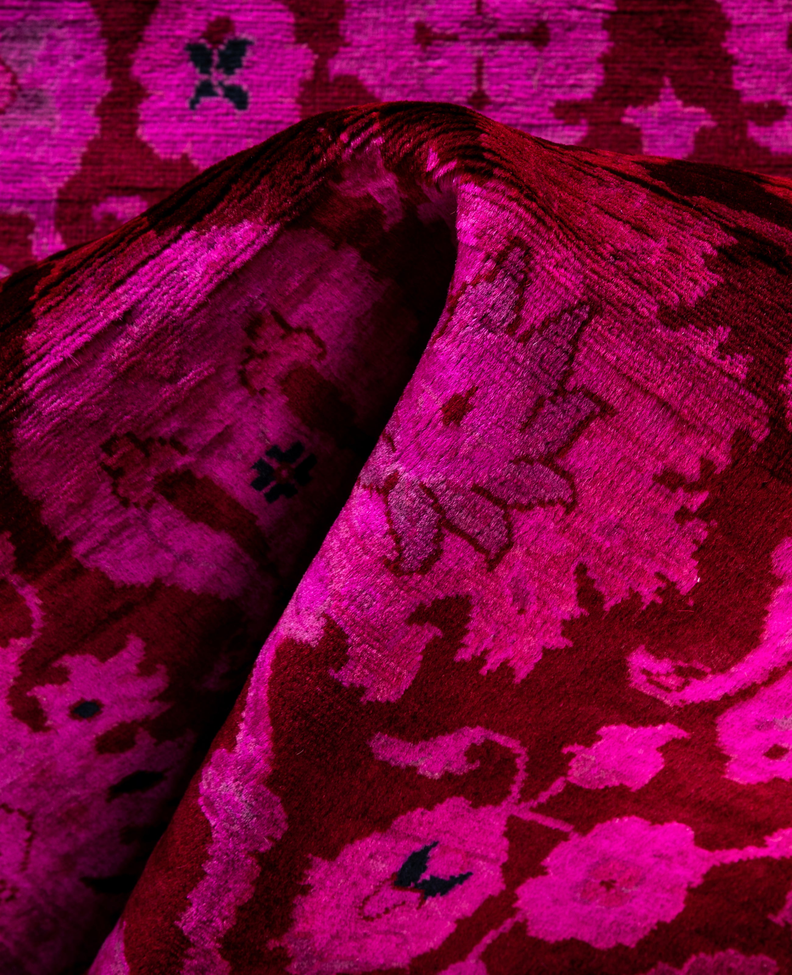 Over-dyed area rugs are created by taking vintage or traditional rugs and applying a vibrant, monochromatic dye over the existing patterns. This technique results in a bold, modern aesthetic while preserving the intricate designs beneath, blending the old with the new. The rugs are often faded and distressed before dyeing, which adds texture and depth to their appearance. The over-dye process breathes new life into worn or antique rugs, giving them a contemporary twist with rich, saturated colors like deep blues, purples, or bright reds. These rugs work well in both eclectic and modern spaces, offering a unique, artistic flair to any room. They provide a dynamic focal point, balancing between traditional craftsmanship and contemporary design trends. Over-dyed rugs are perfect for those looking to add a pop of color and character to their home decor.