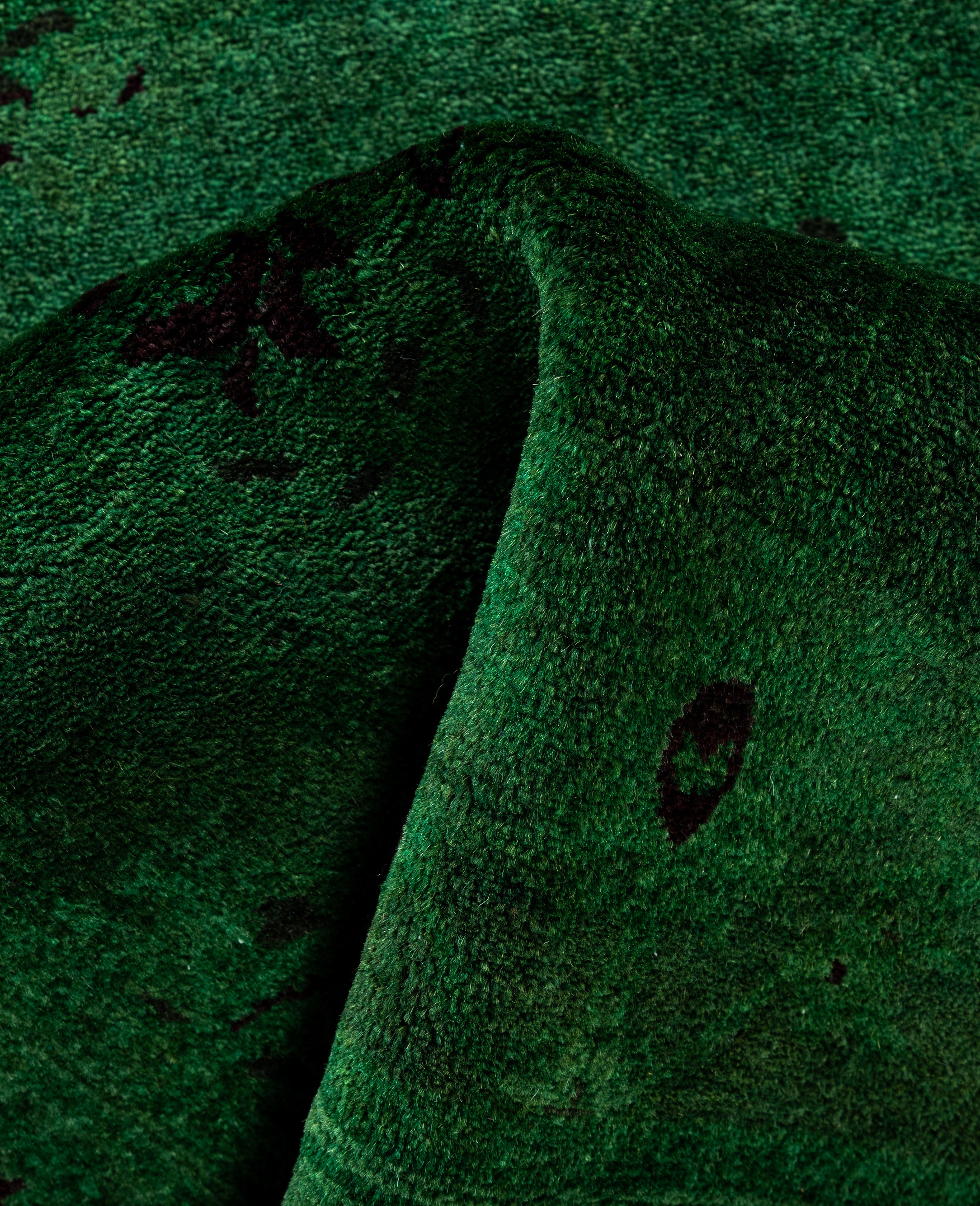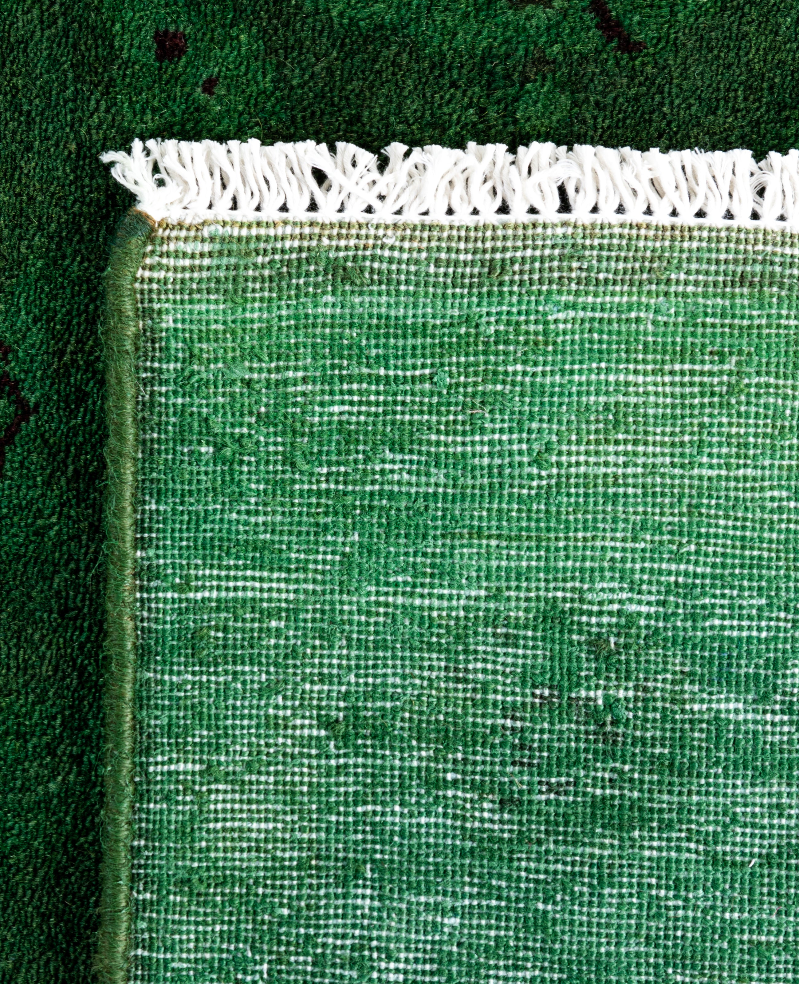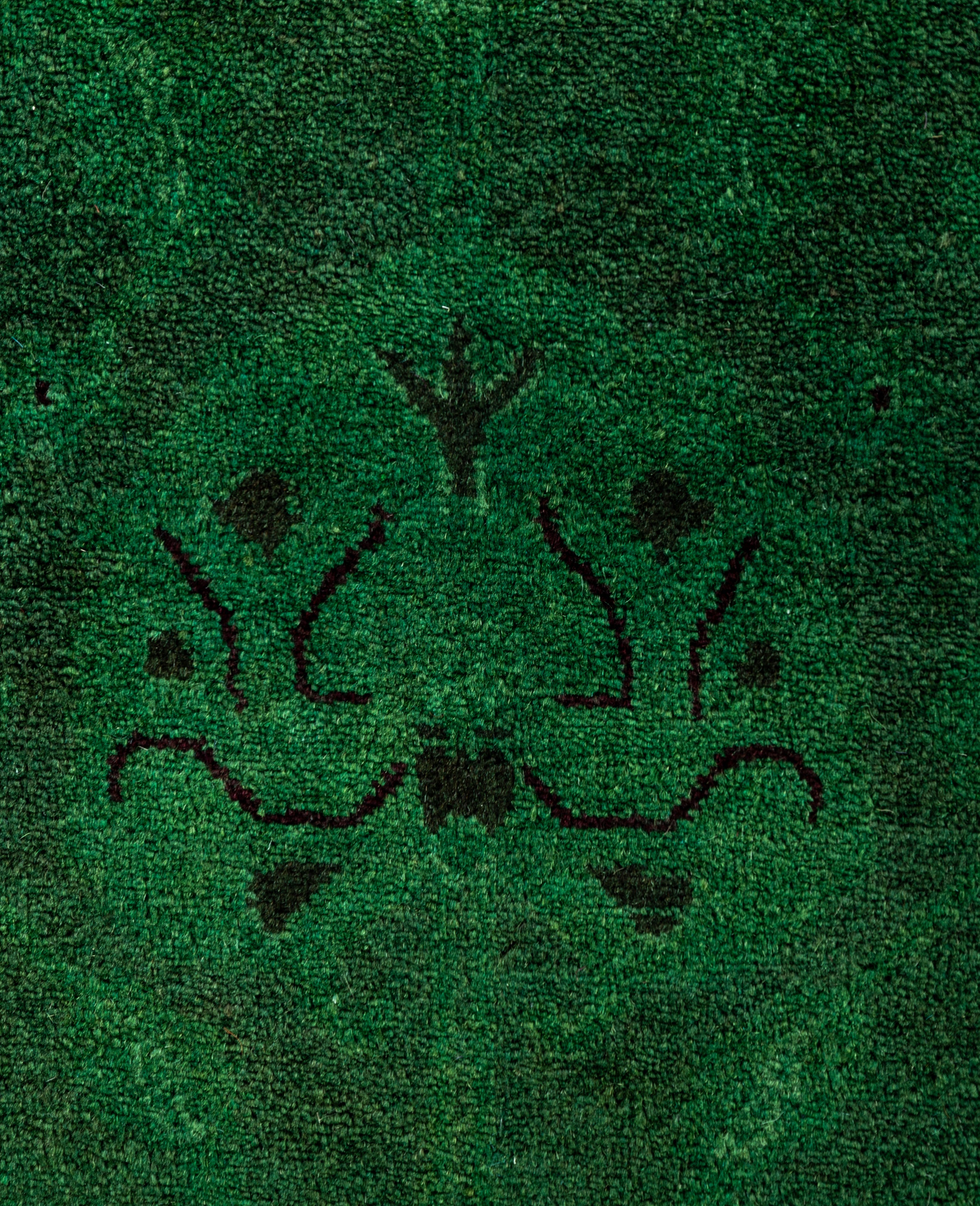 Contemporary Overdyed Wool Hand Knotted Green Runner 3' 1" x 13' 0"