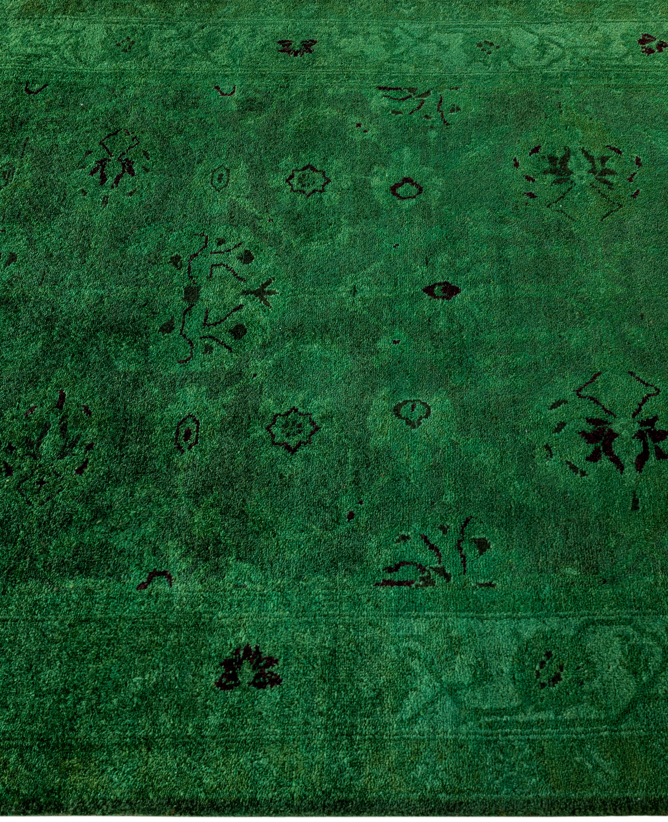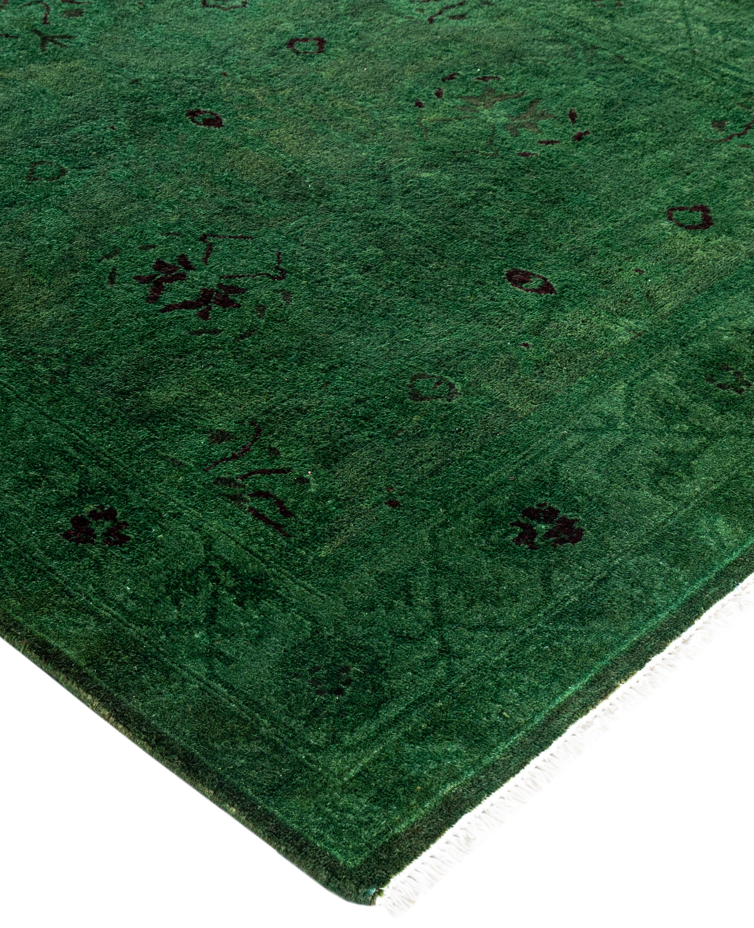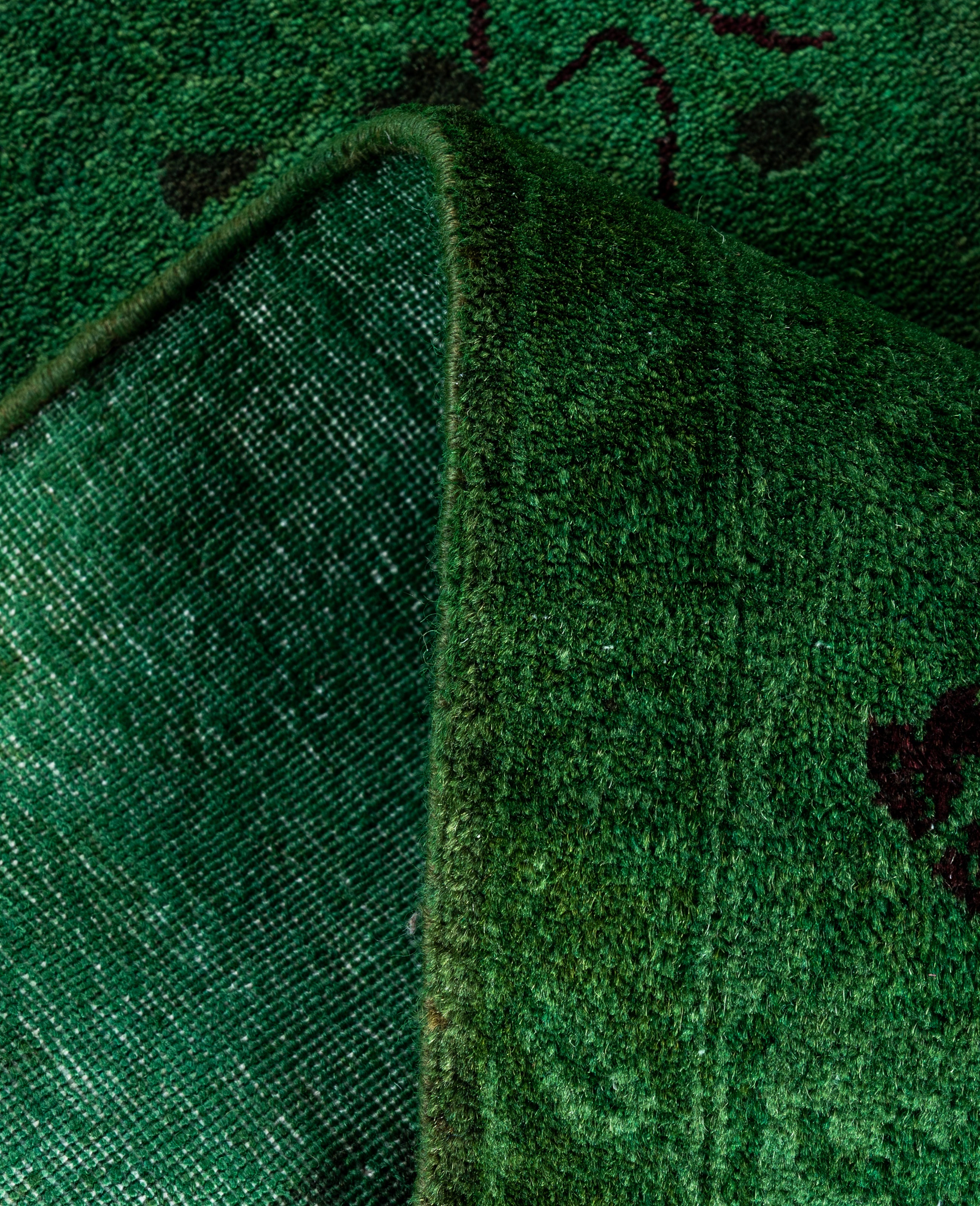 Contemporary Overdyed Wool Hand Knotted Green Runner 3' 1" x 13' 0"