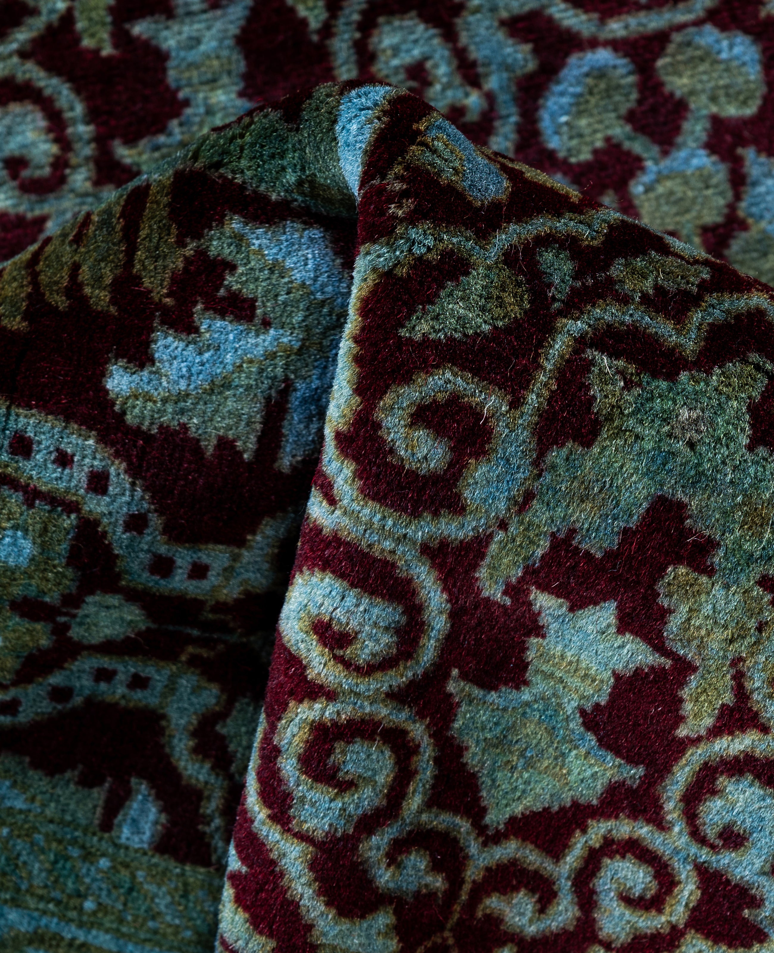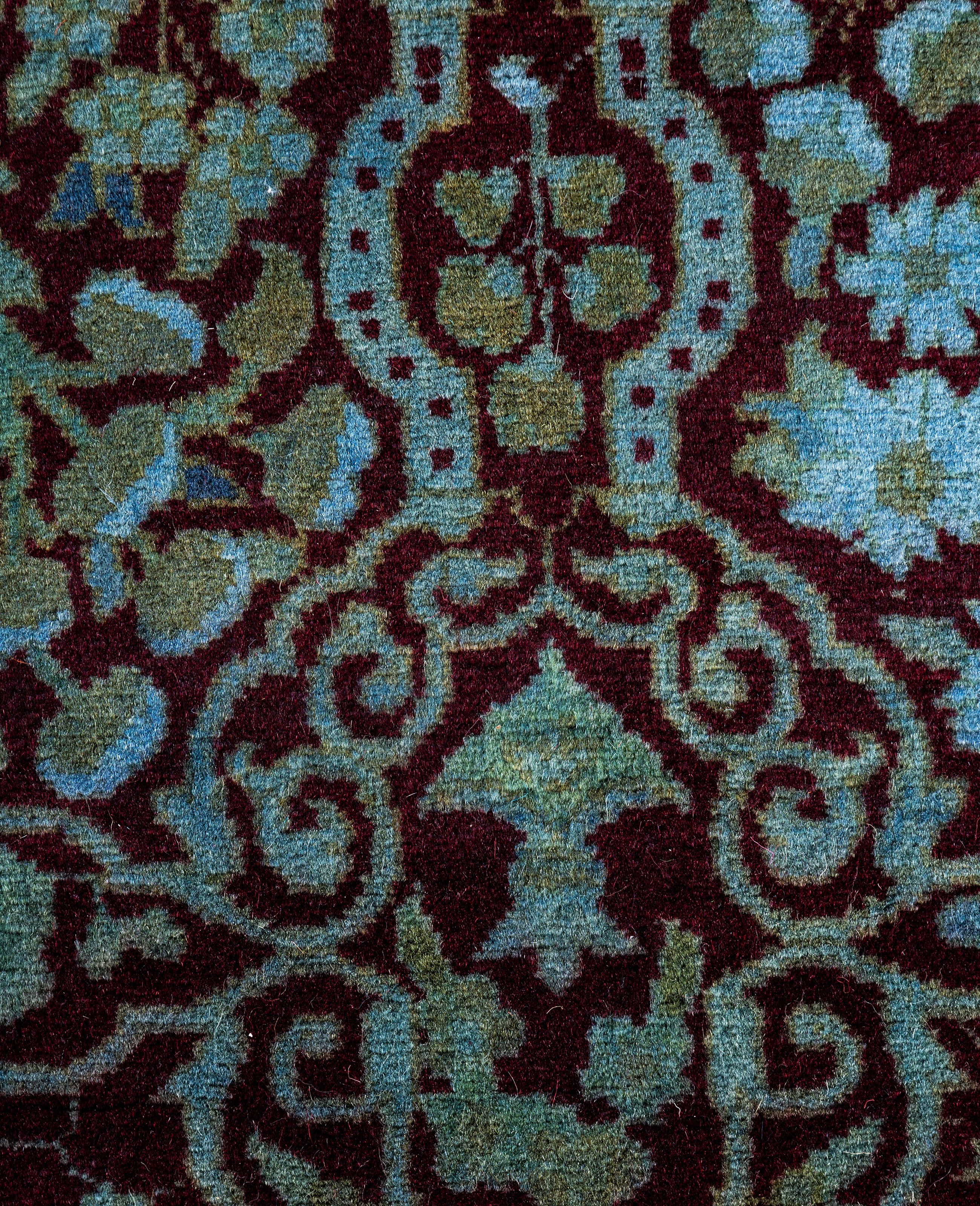 Over-dyed area rugs are created by taking vintage or traditional rugs and applying a vibrant, monochromatic dye over the existing patterns. This technique results in a bold, modern aesthetic while preserving the intricate designs beneath, blending the old with the new. The rugs are often faded and distressed before dyeing, which adds texture and depth to their appearance. The over-dye process breathes new life into worn or antique rugs, giving them a contemporary twist with rich, saturated colors like deep blues, purples, or bright reds. These rugs work well in both eclectic and modern spaces, offering a unique, artistic flair to any room. They provide a dynamic focal point, balancing between traditional craftsmanship and contemporary design trends. Over-dyed rugs are perfect for those looking to add a pop of color and character to their home decor.