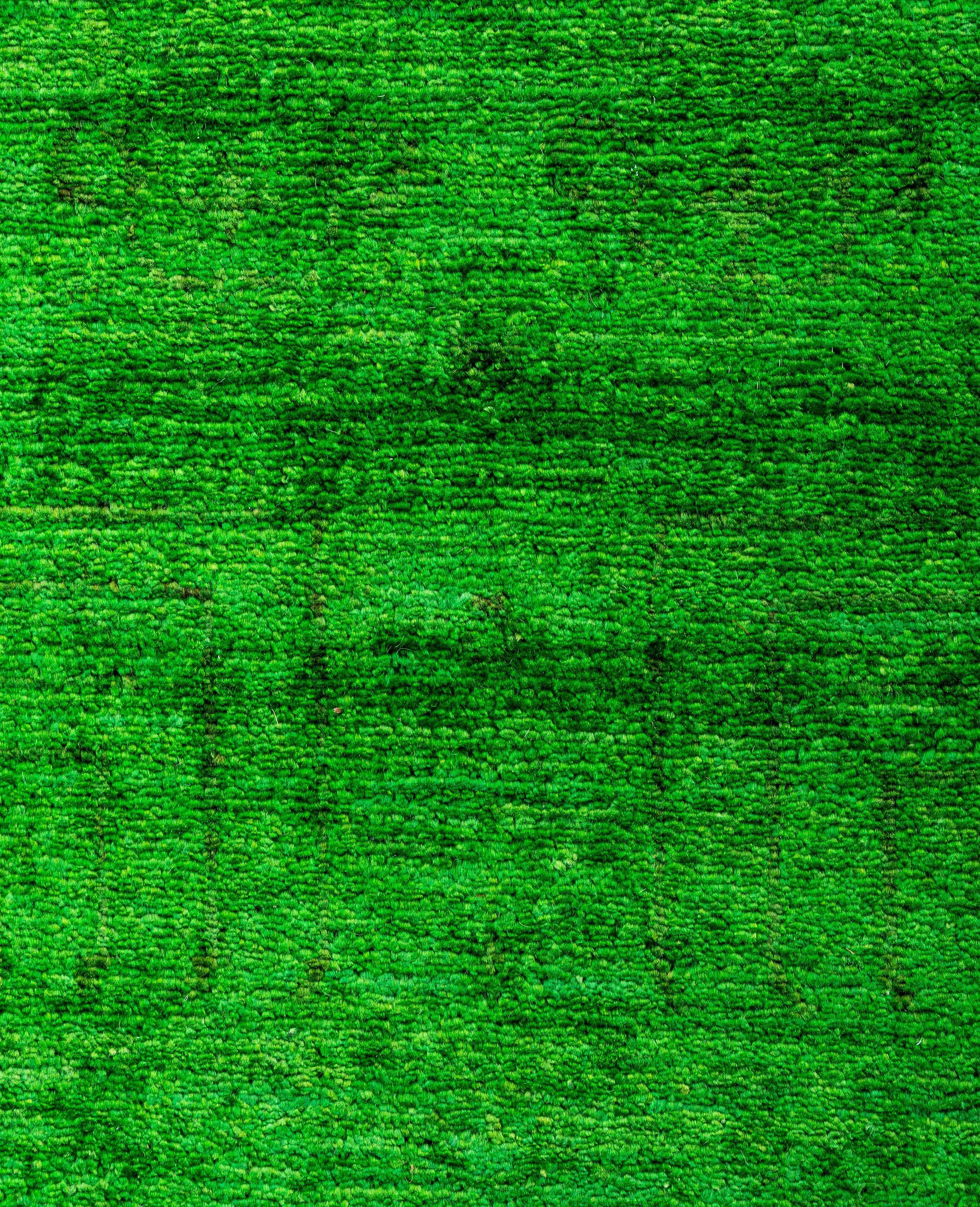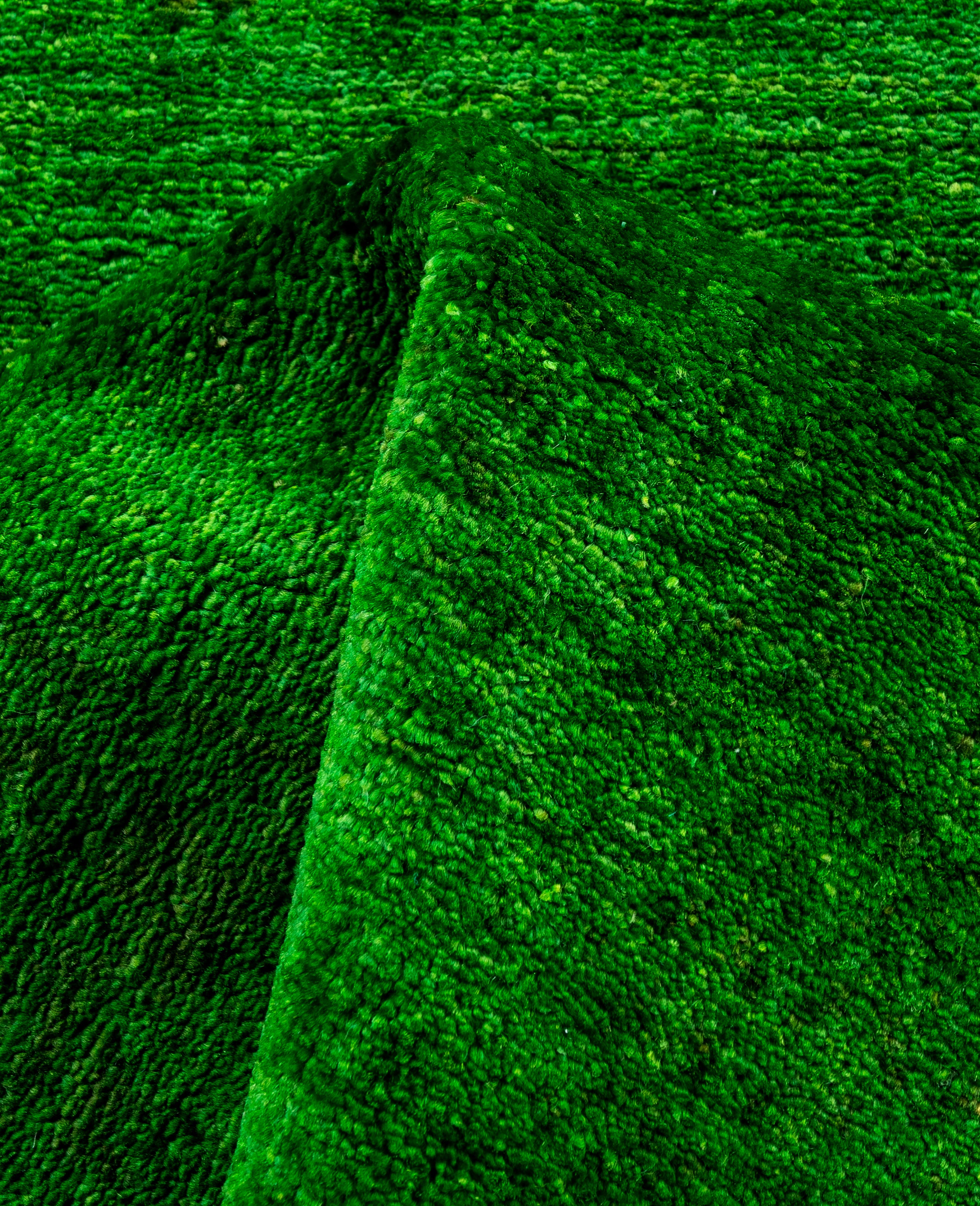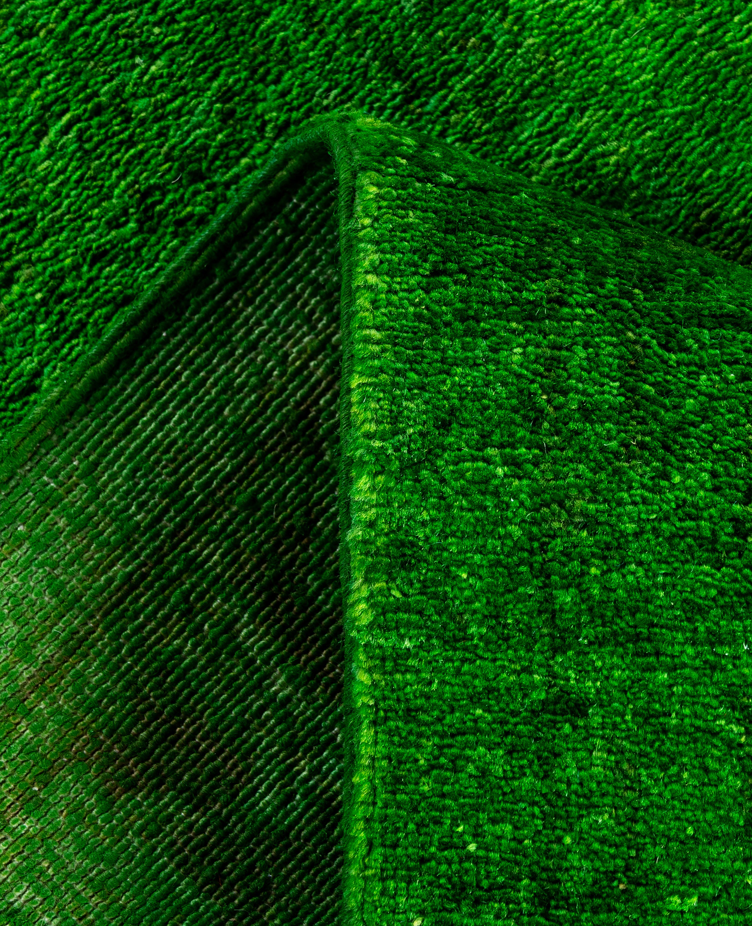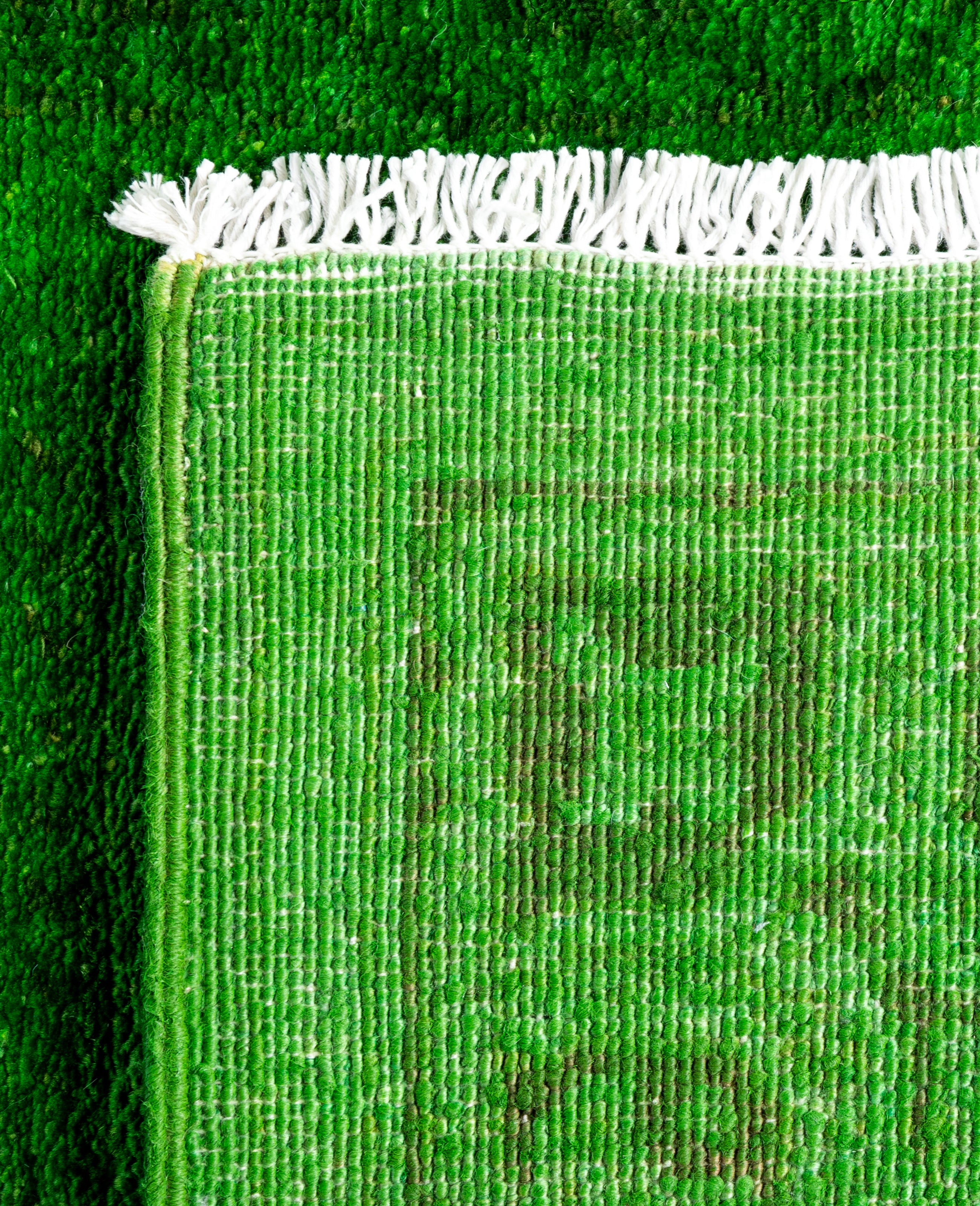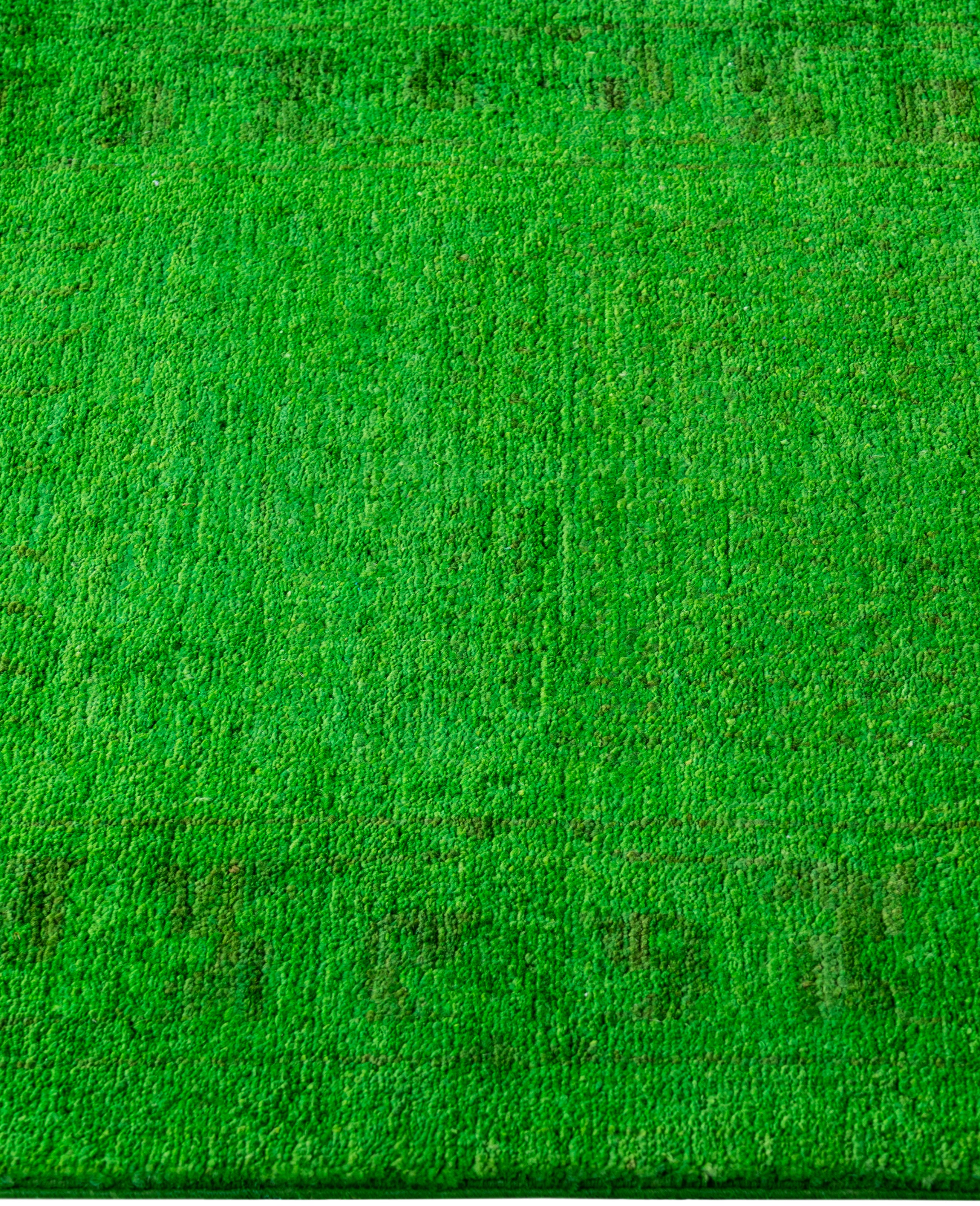 Contemporary Overdyed Wool Hand Knotted Green Runner 2' 4" x 14' 0"