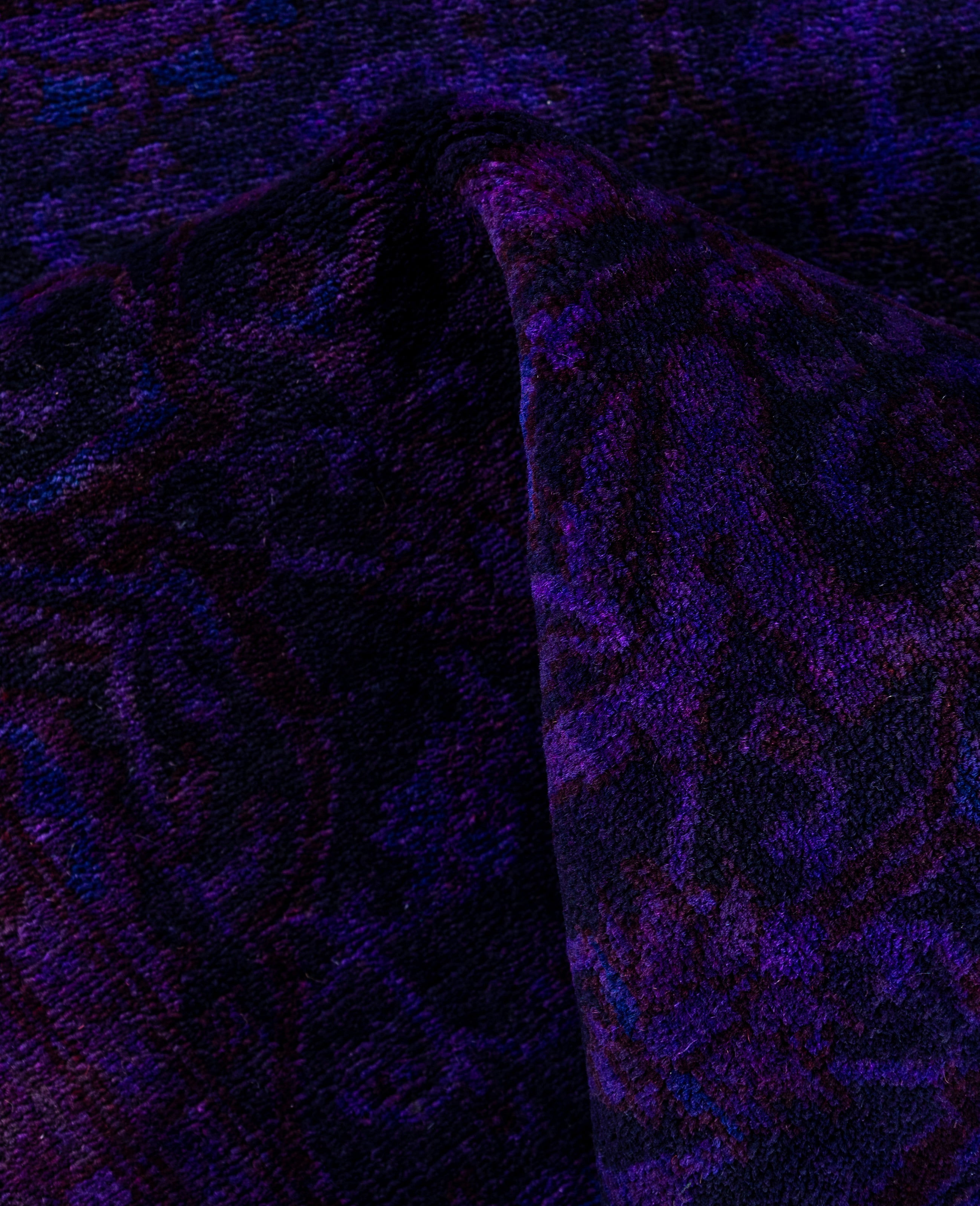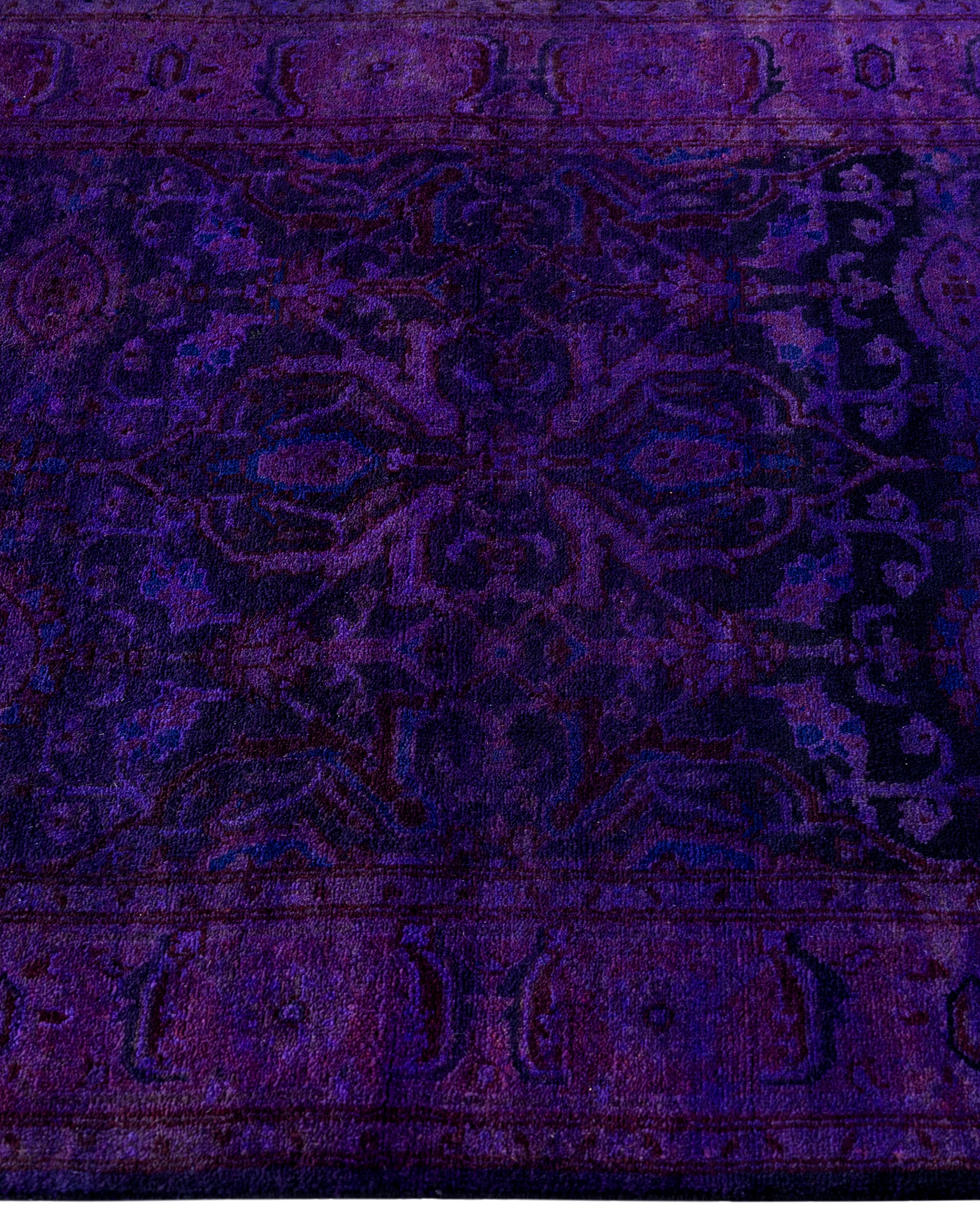 Over-dyed area rugs are created by taking vintage or traditional rugs and applying a vibrant, monochromatic dye over the existing patterns. This technique results in a bold, modern aesthetic while preserving the intricate designs beneath, blending the old with the new. The rugs are often faded and distressed before dyeing, which adds texture and depth to their appearance. The over-dye process breathes new life into worn or antique rugs, giving them a contemporary twist with rich, saturated colors like deep blues, purples, or bright reds. These rugs work well in both eclectic and modern spaces, offering a unique, artistic flair to any room. They provide a dynamic focal point, balancing between traditional craftsmanship and contemporary design trends. Over-dyed rugs are perfect for those looking to add a pop of color and character to their home decor.