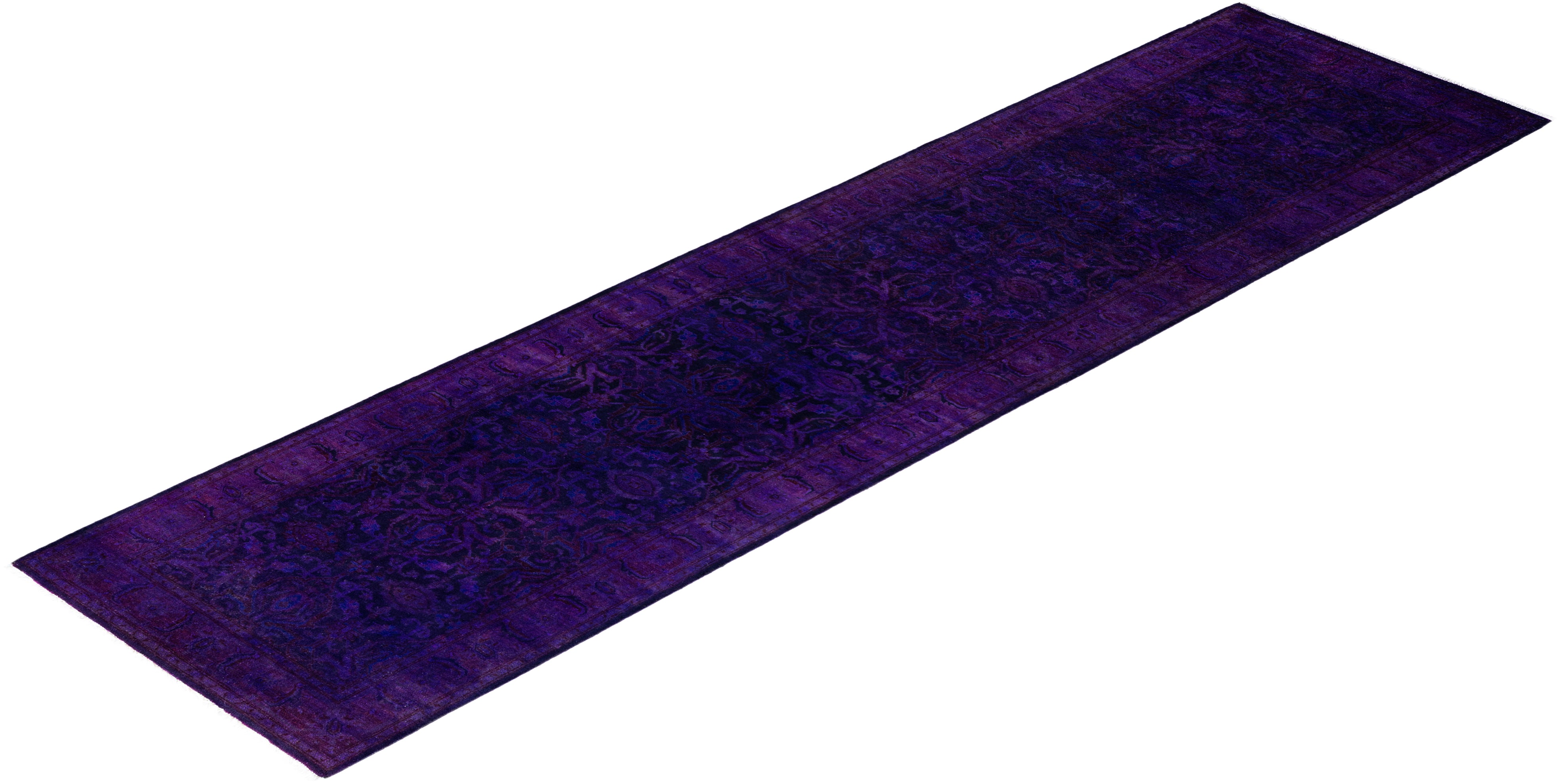Overdyed One-of-a-Kind Wool Purple Runner 2' 6" x 10' 3"