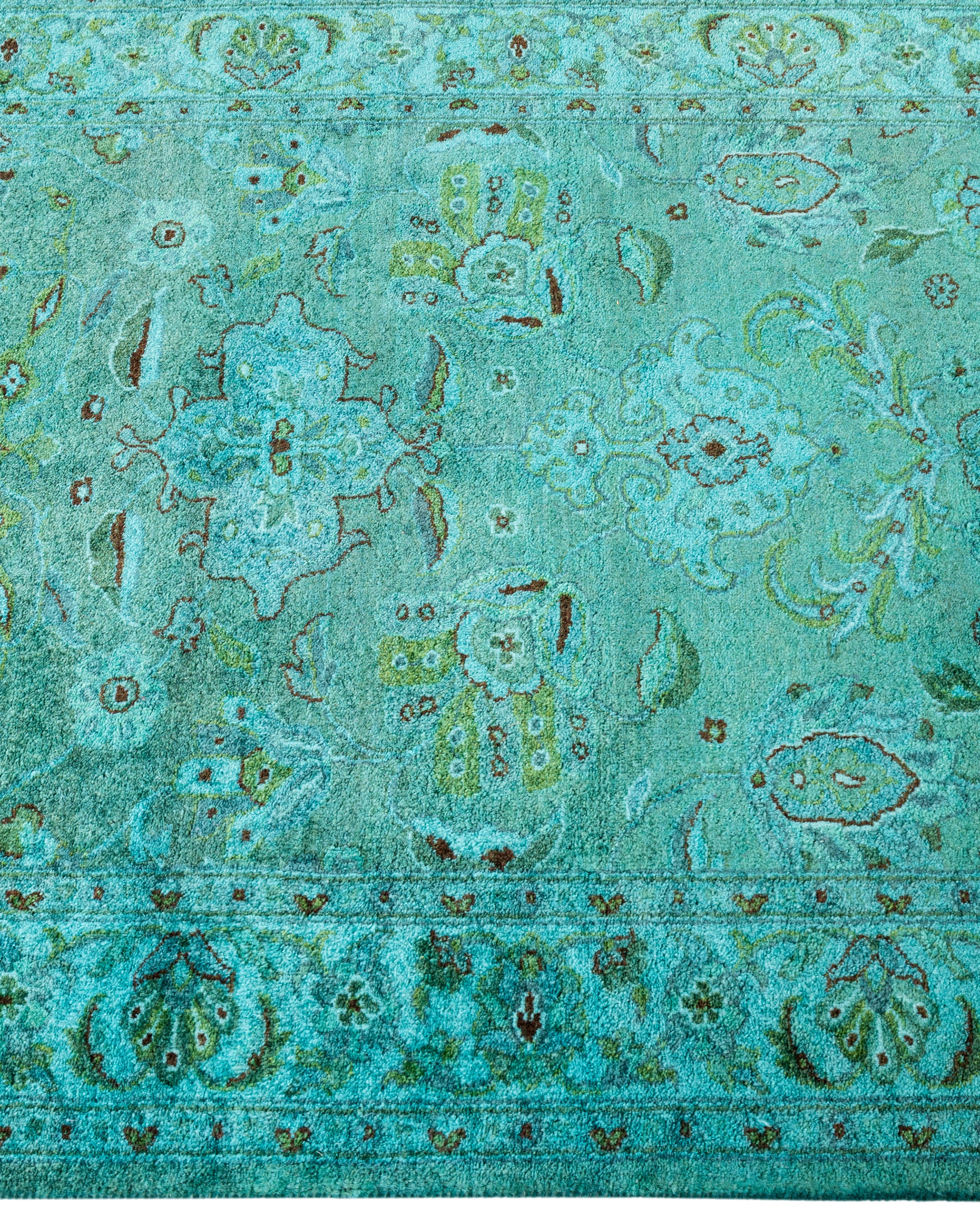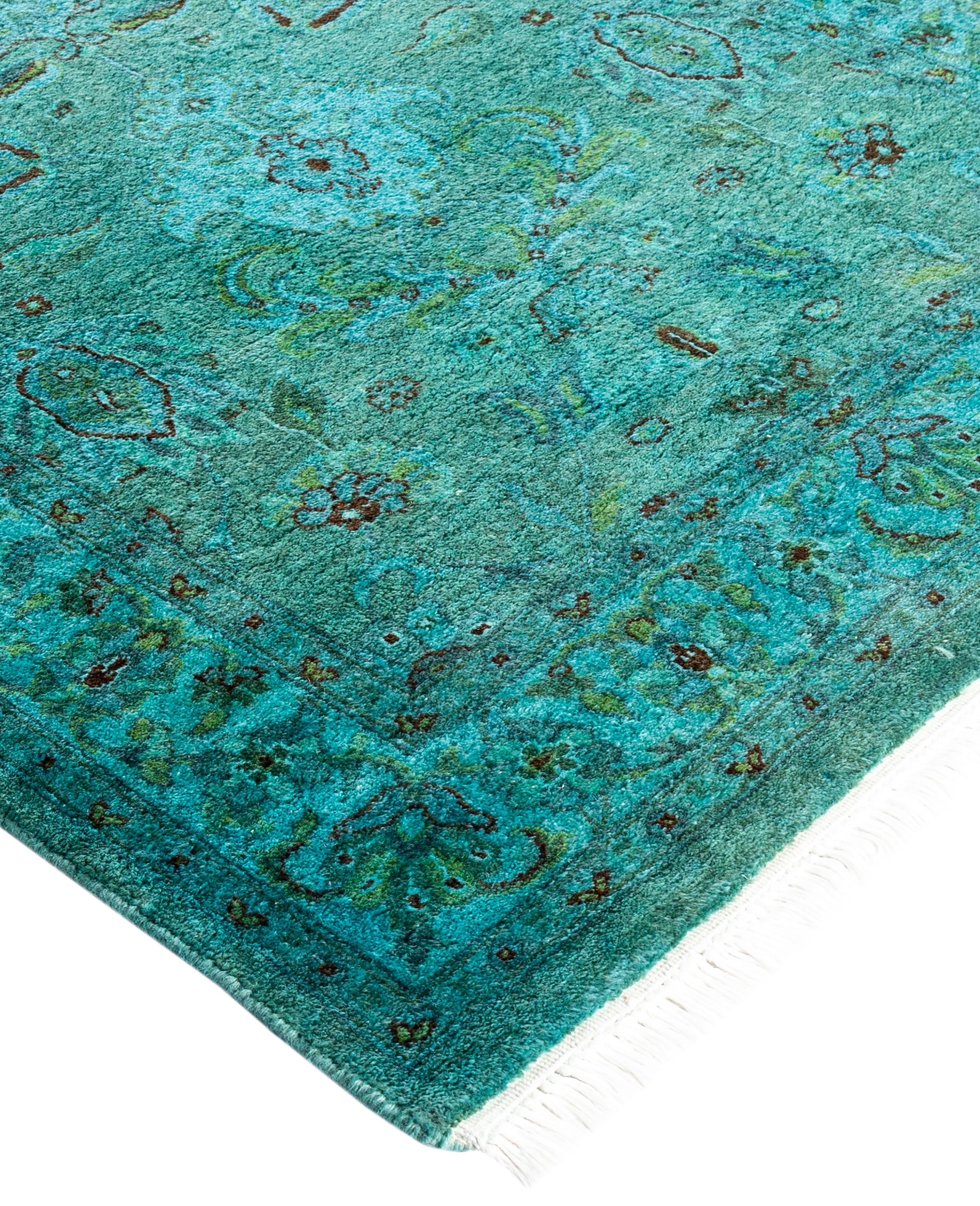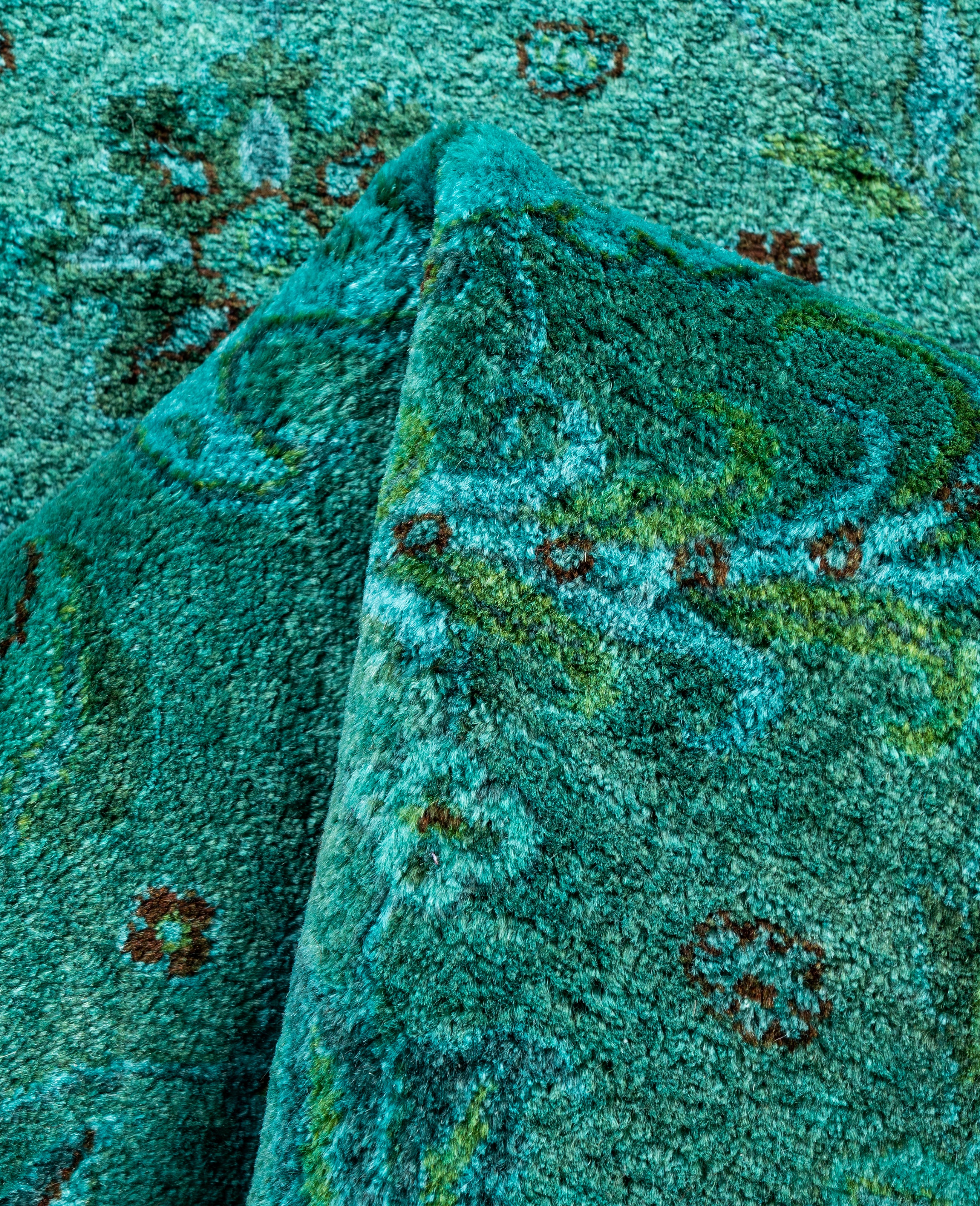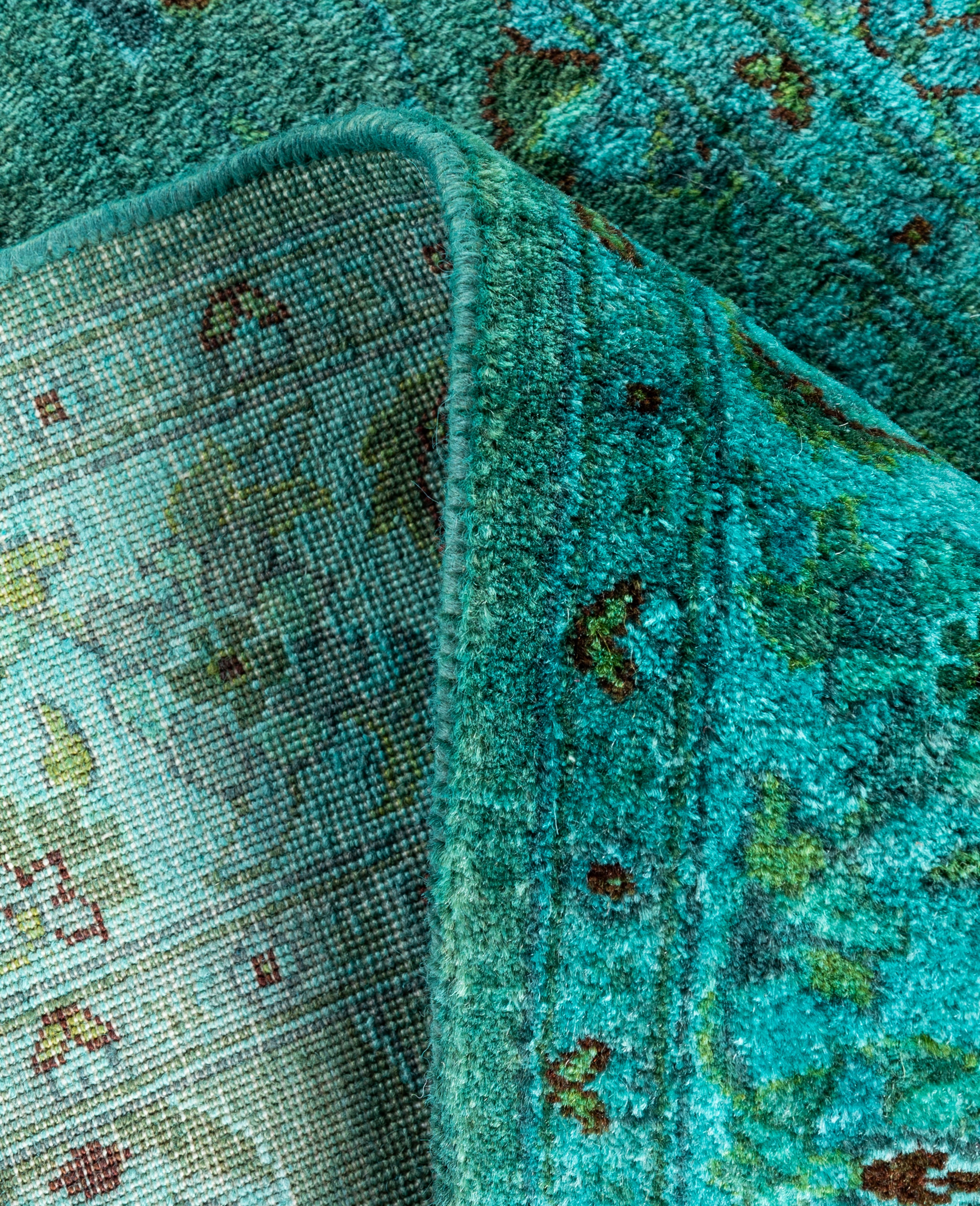 Over-dyed area rugs are created by taking vintage or traditional rugs and applying a vibrant, monochromatic dye over the existing patterns. This technique results in a bold, modern aesthetic while preserving the intricate designs beneath, blending the old with the new. The rugs are often faded and distressed before dyeing, which adds texture and depth to their appearance. The over-dye process breathes new life into worn or antique rugs, giving them a contemporary twist with rich, saturated colors like deep blues, purples, or bright reds. These rugs work well in both eclectic and modern spaces, offering a unique, artistic flair to any room. They provide a dynamic focal point, balancing between traditional craftsmanship and contemporary design trends. Over-dyed rugs are perfect for those looking to add a pop of color and character to their home decor.