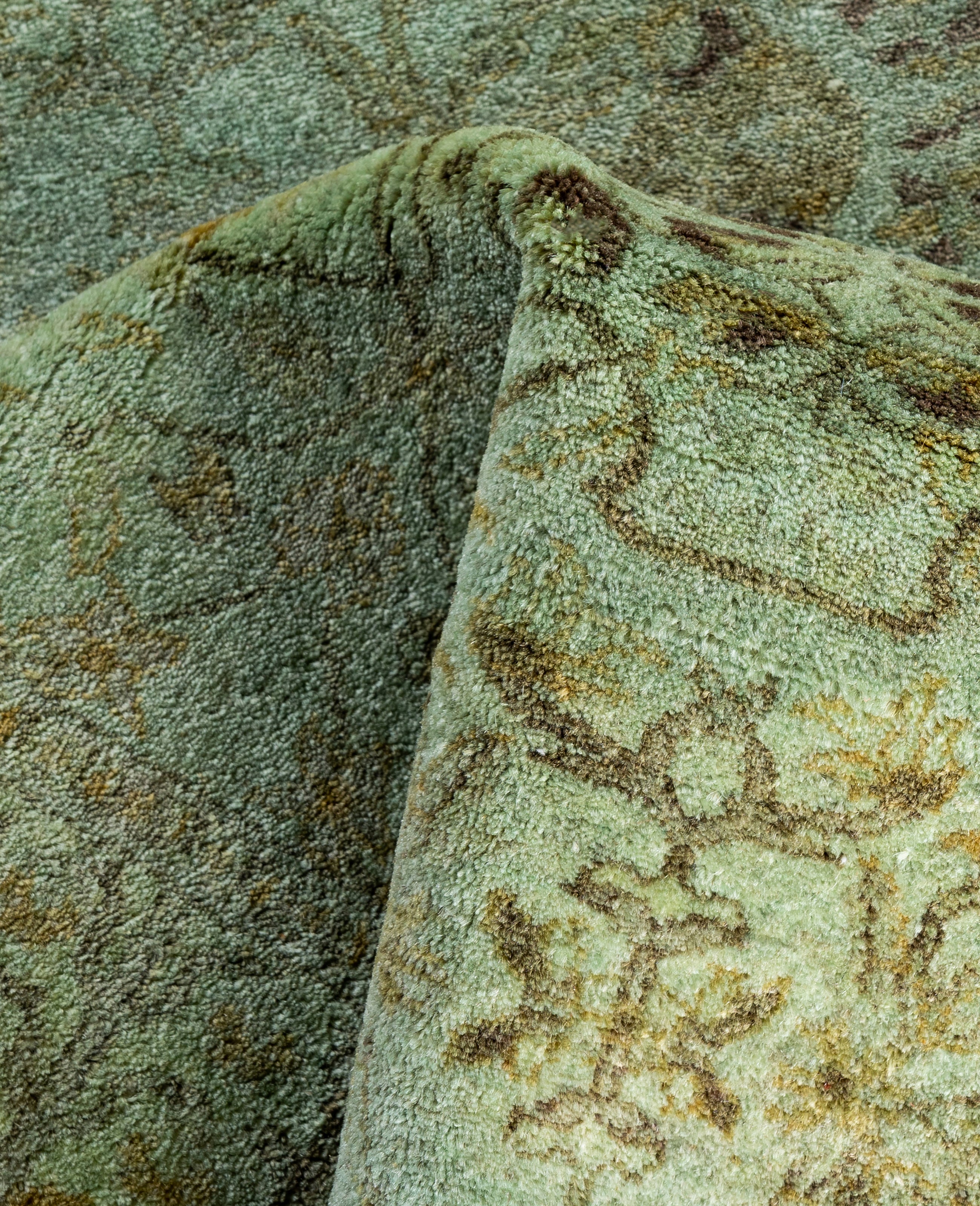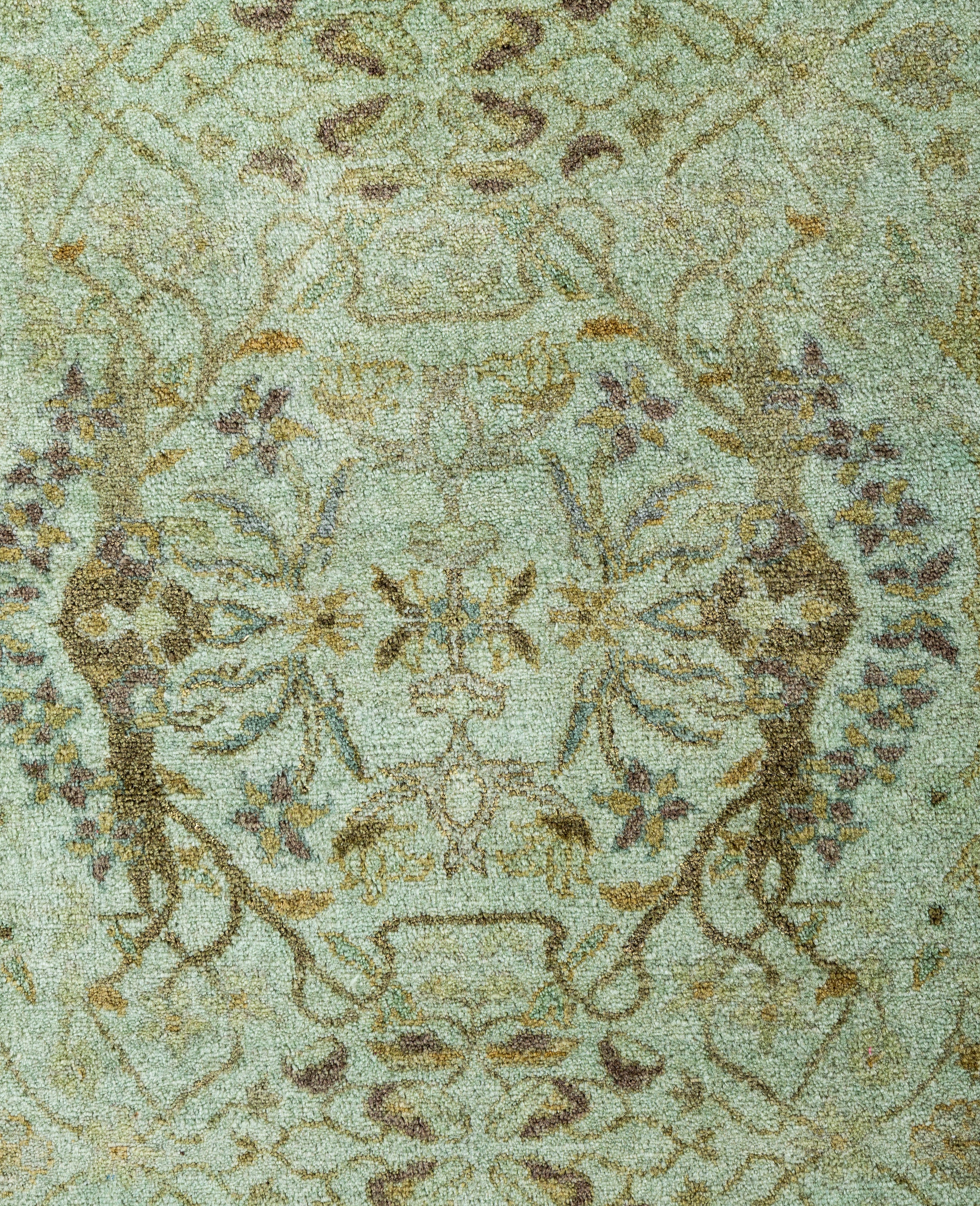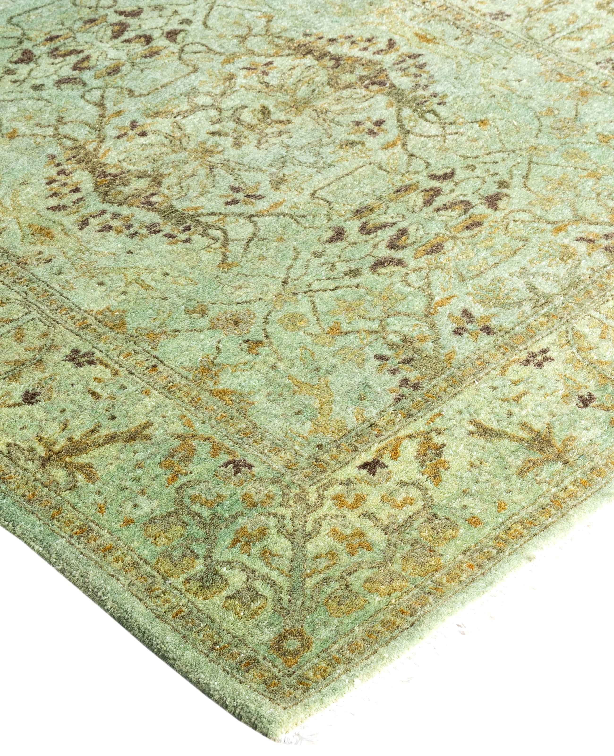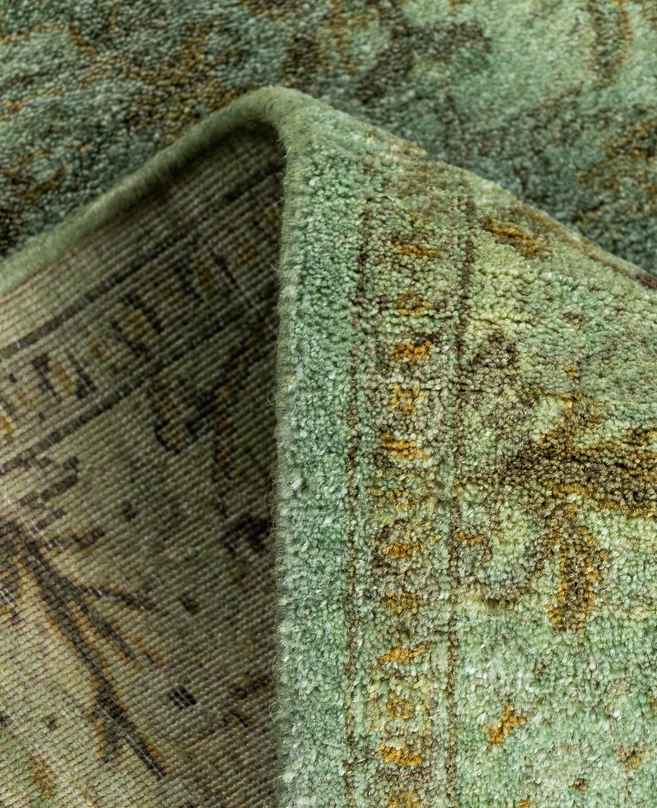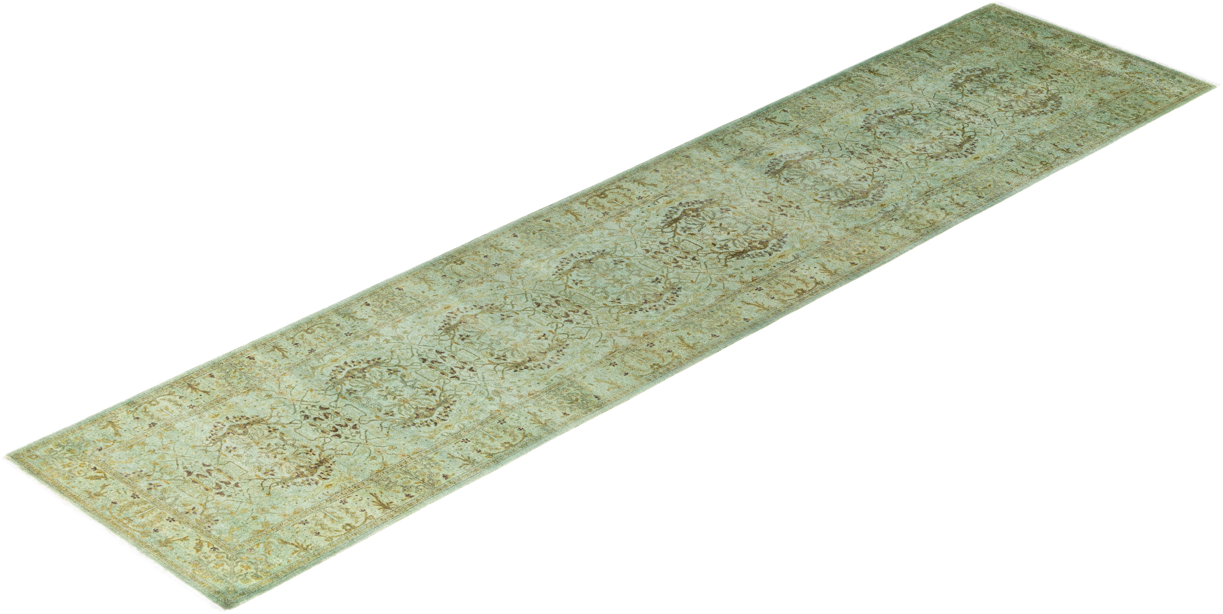Contemporary Overdyed Wool Hand Knotted Green Runner 2' 8" x 11' 5"