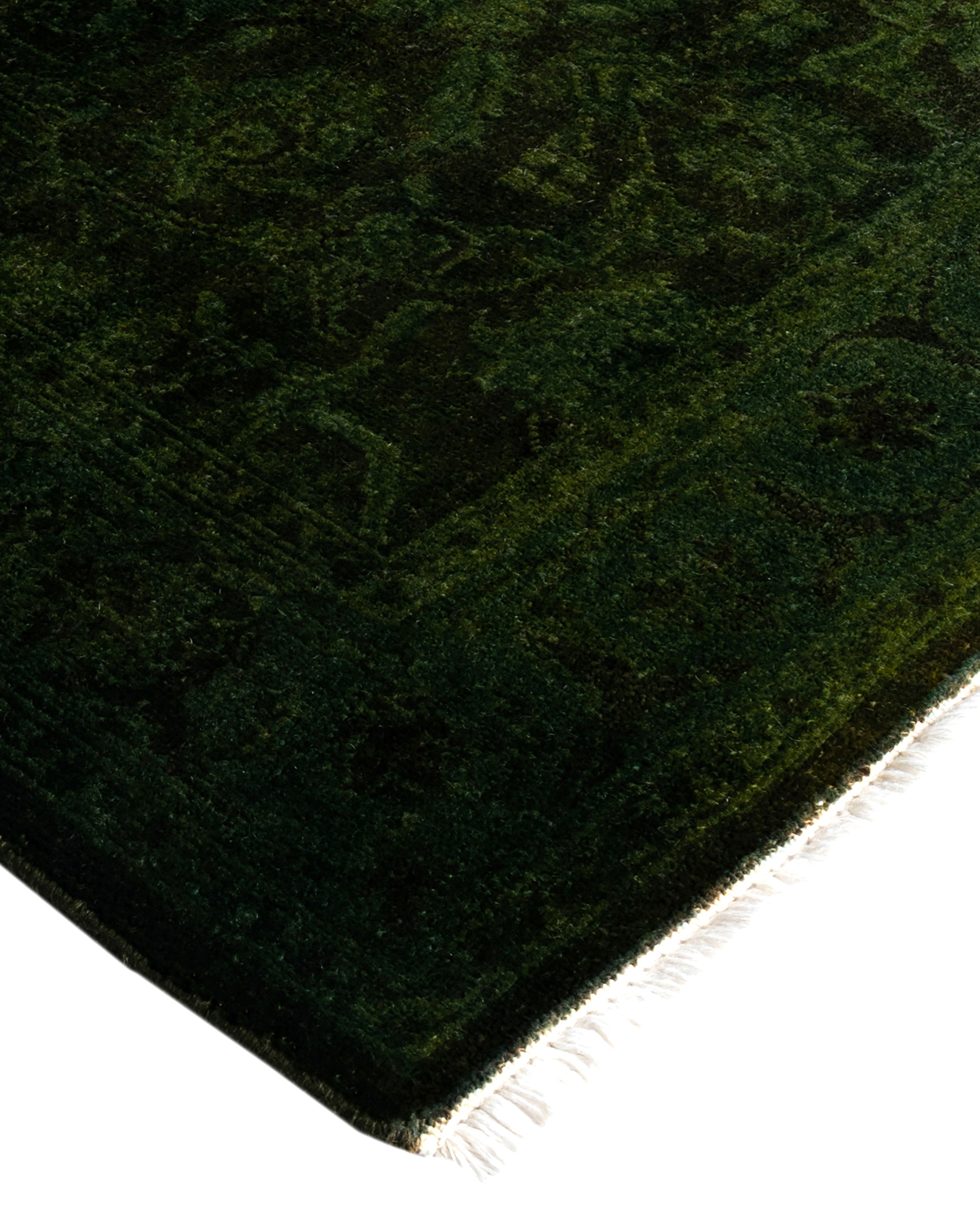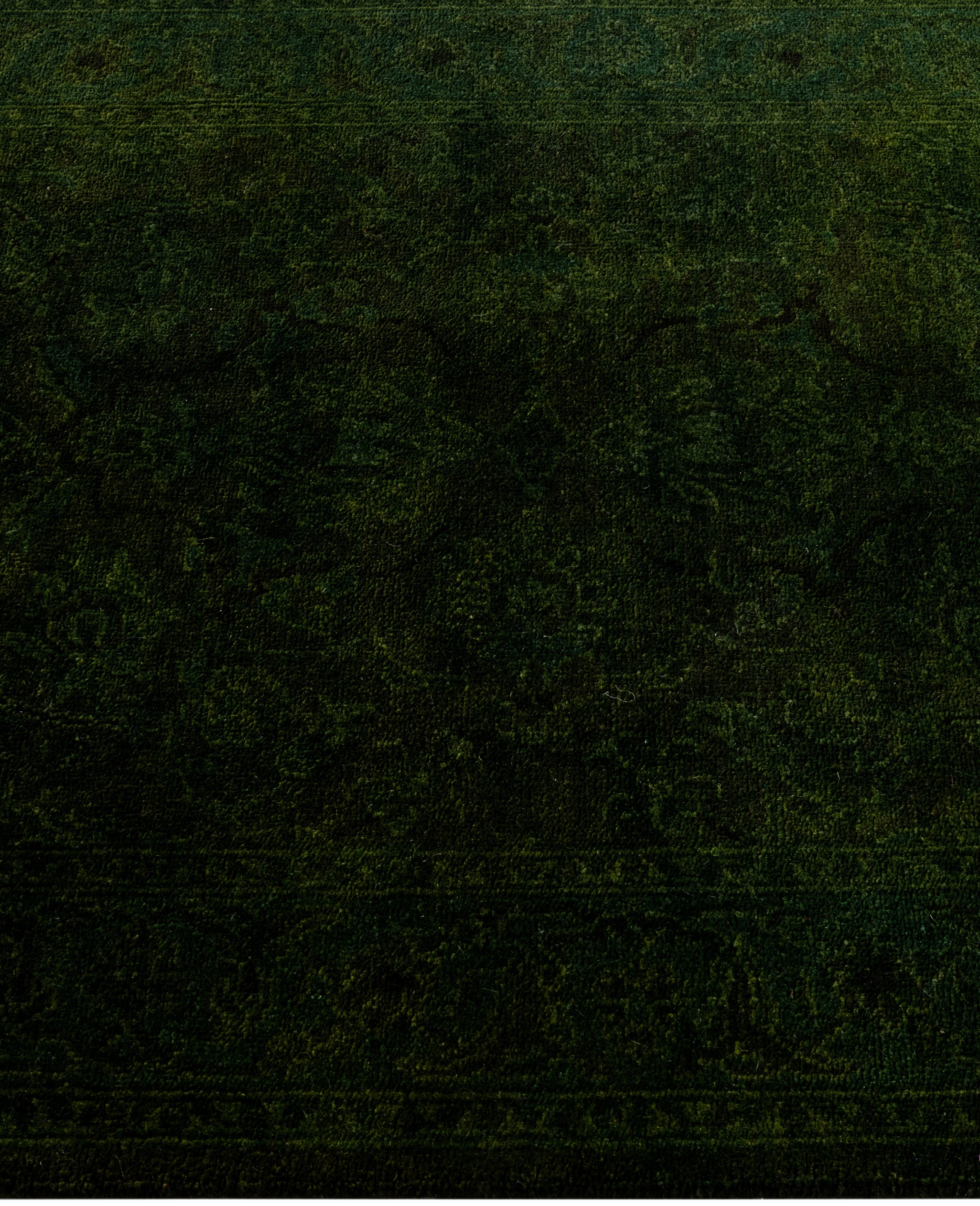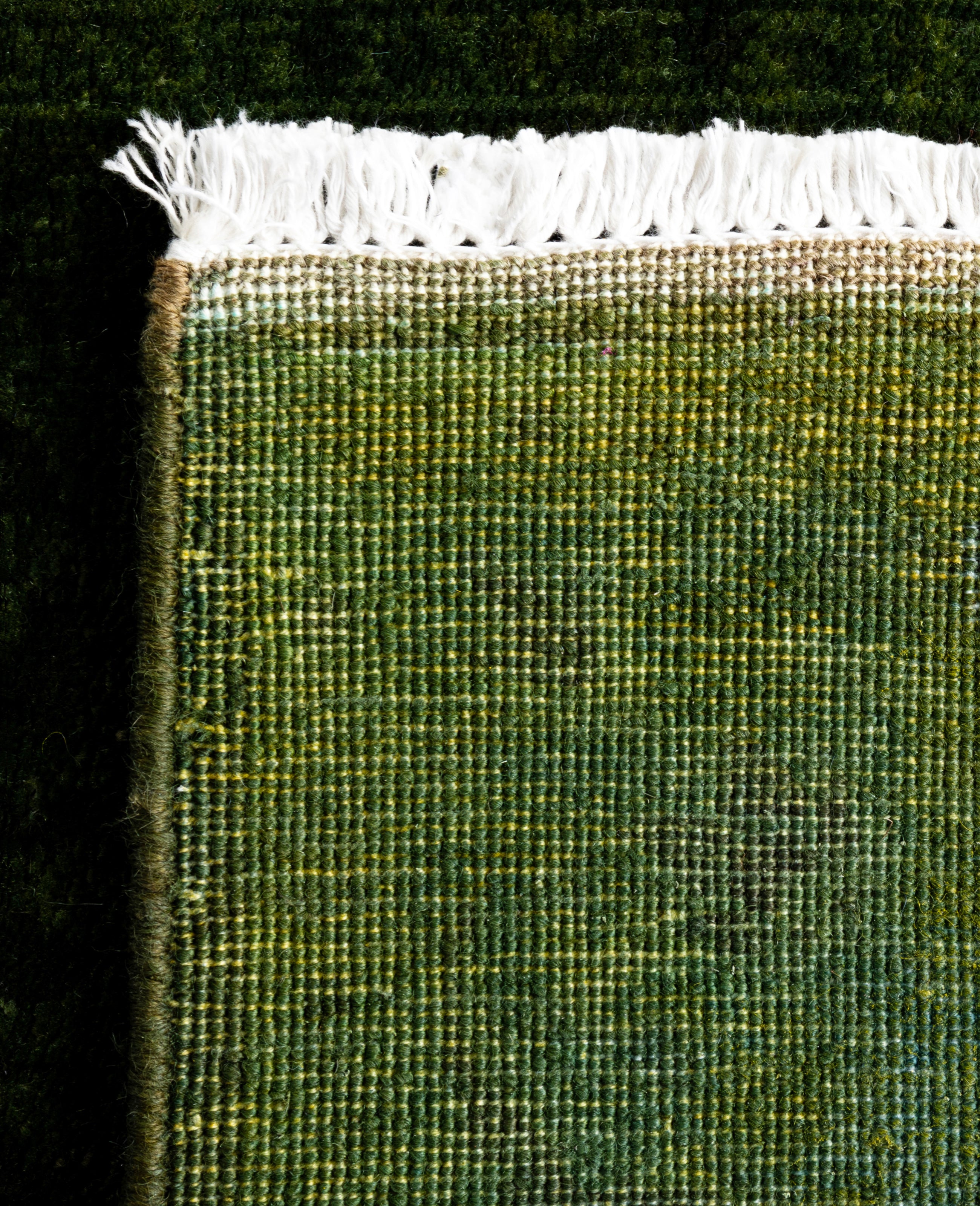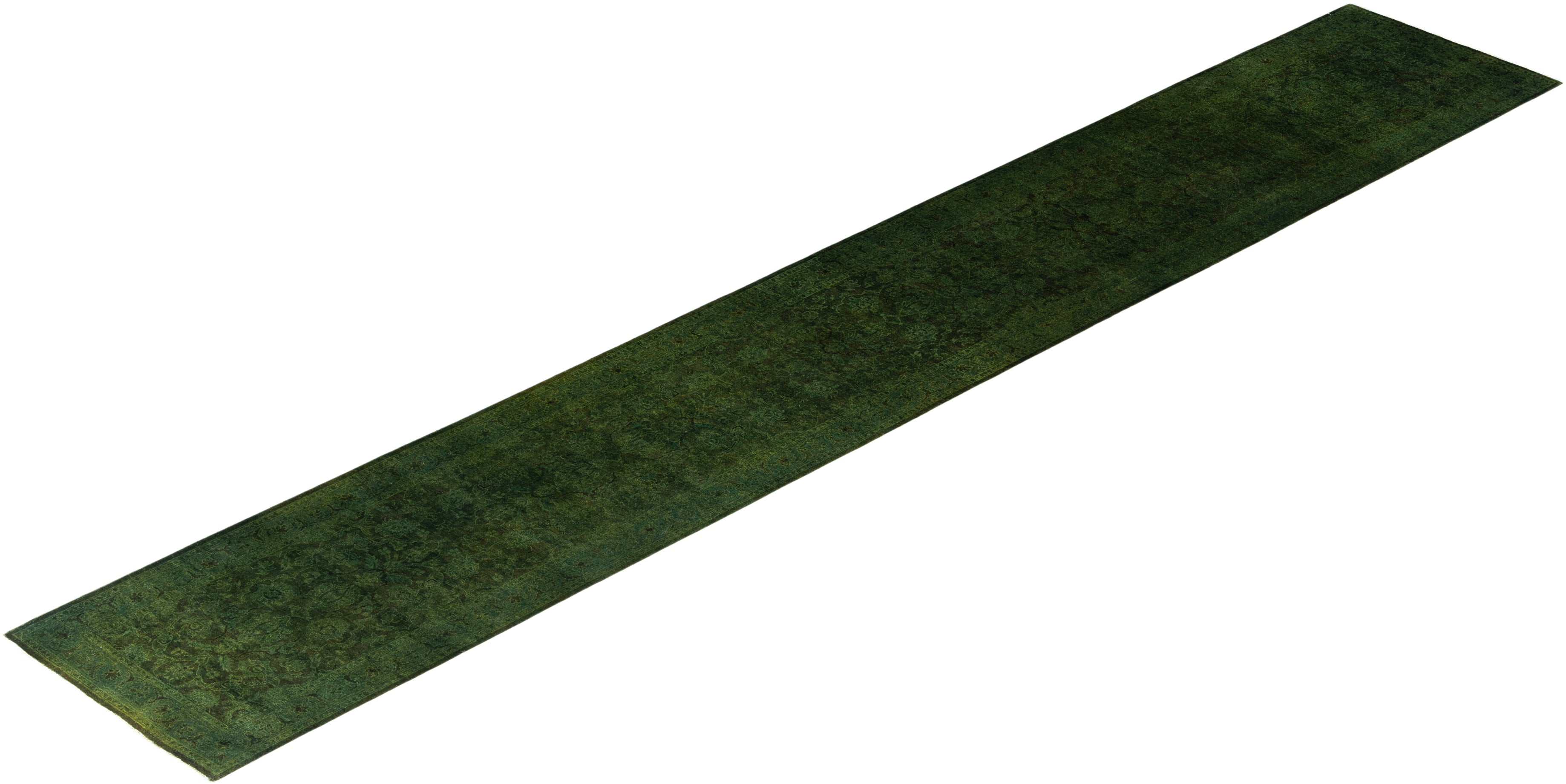 Contemporary Overdyed Wool Hand Knotted Green Runner 2' 6" x 15' 9"