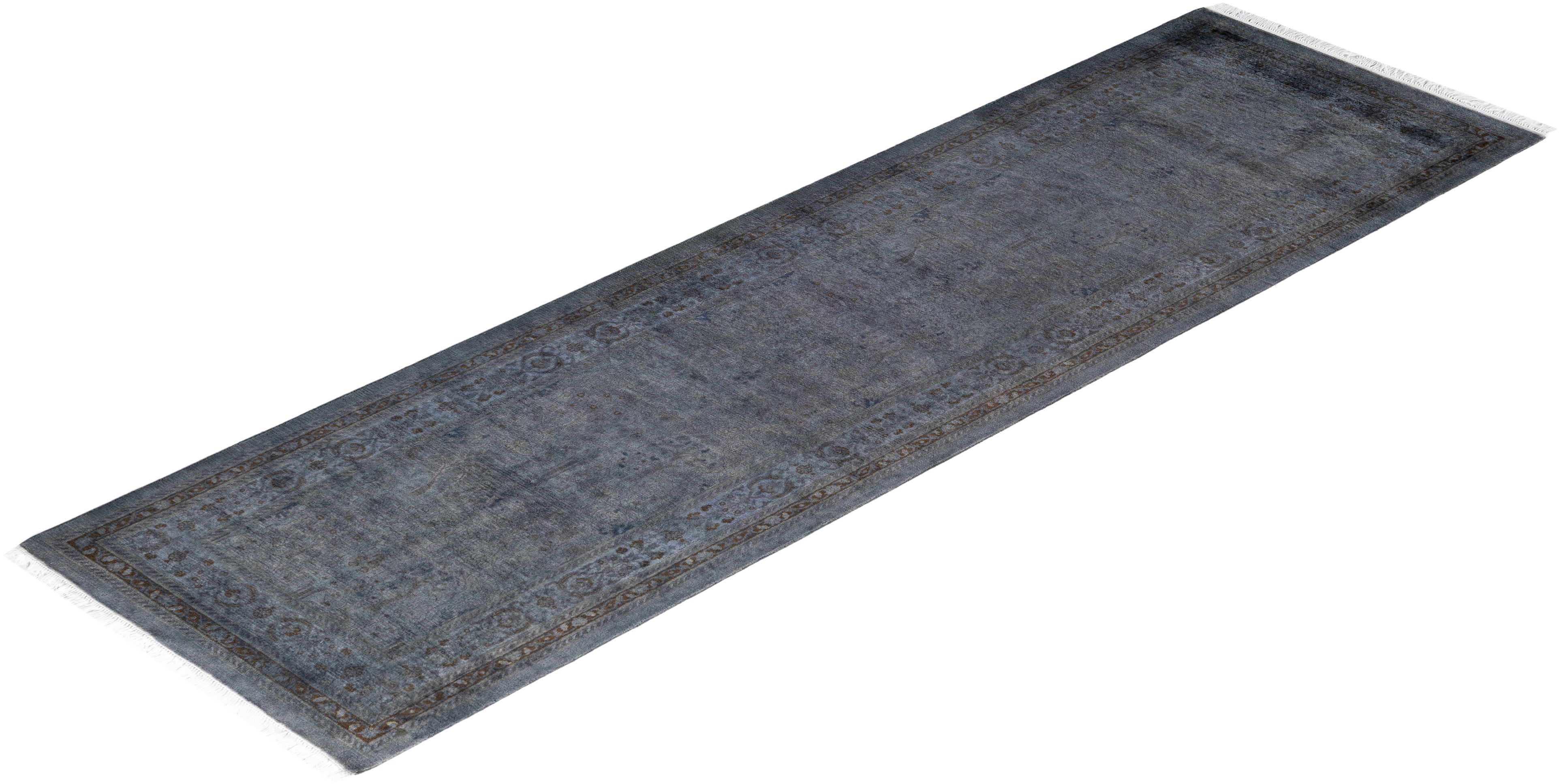 Contemporary Overdyed Wool Hand Knotted Gray Runner 2' 6" x 8' 8"