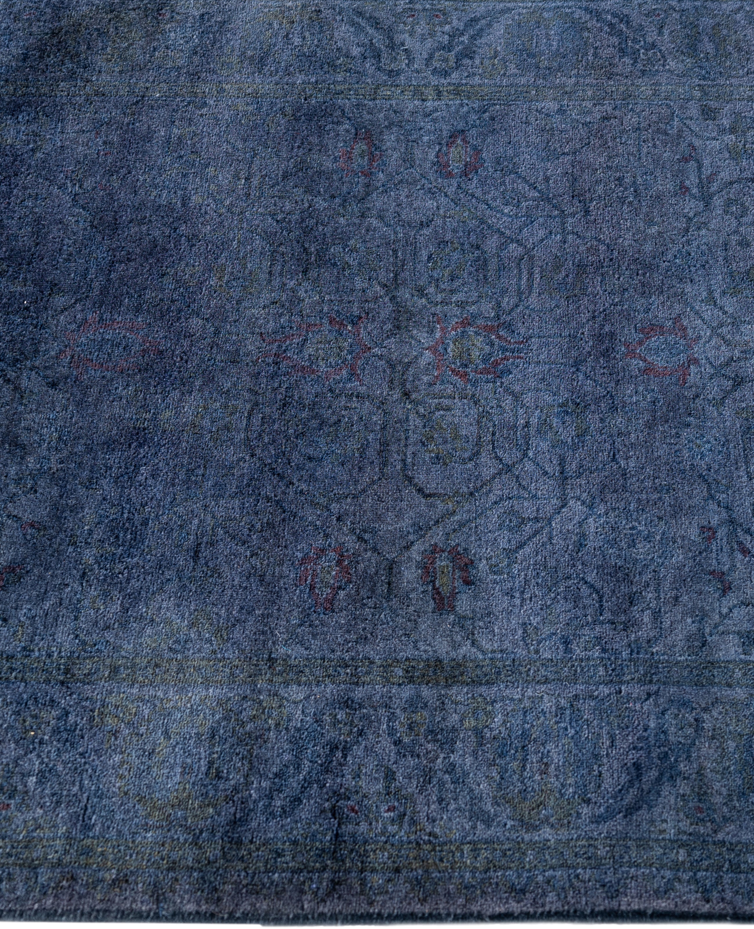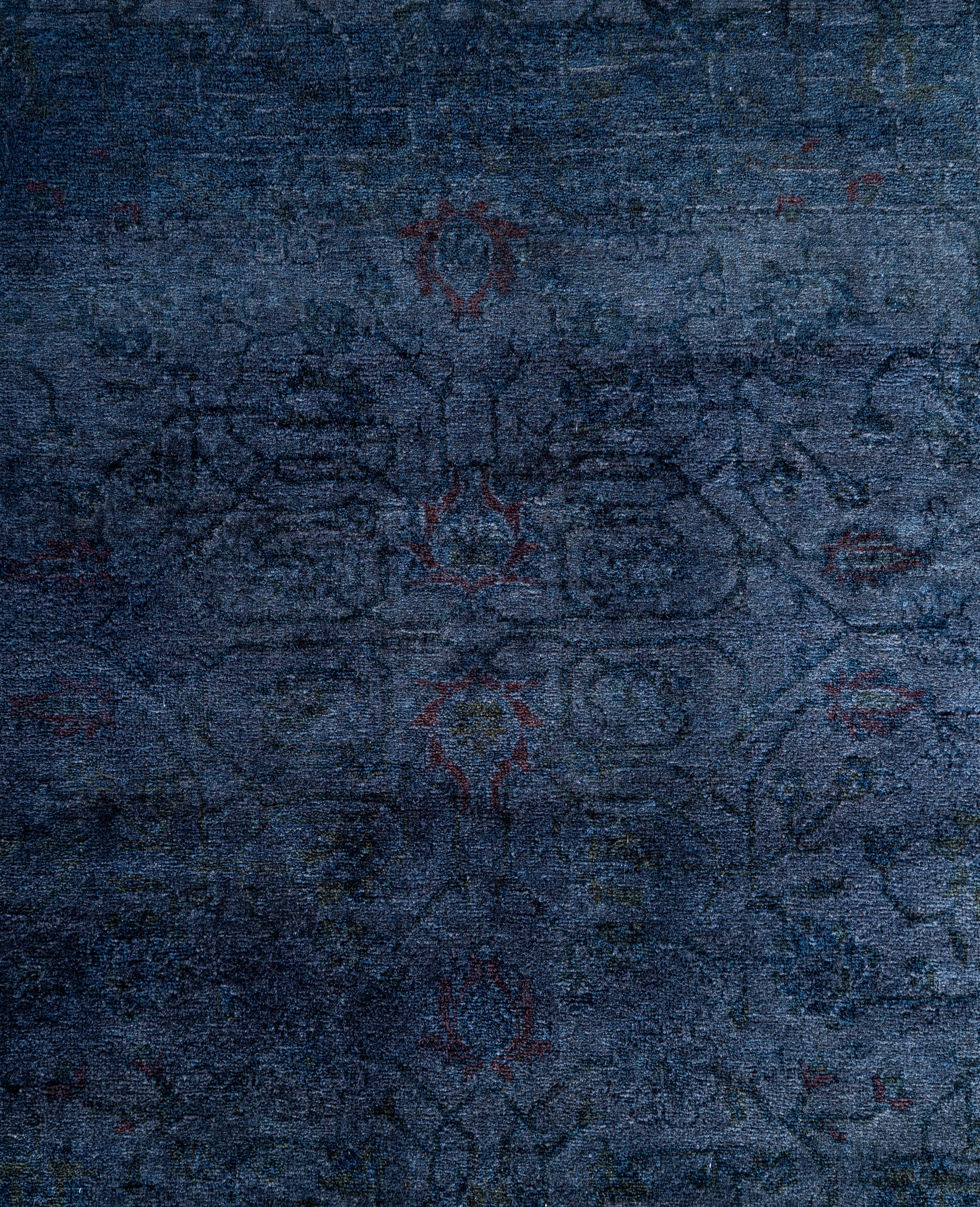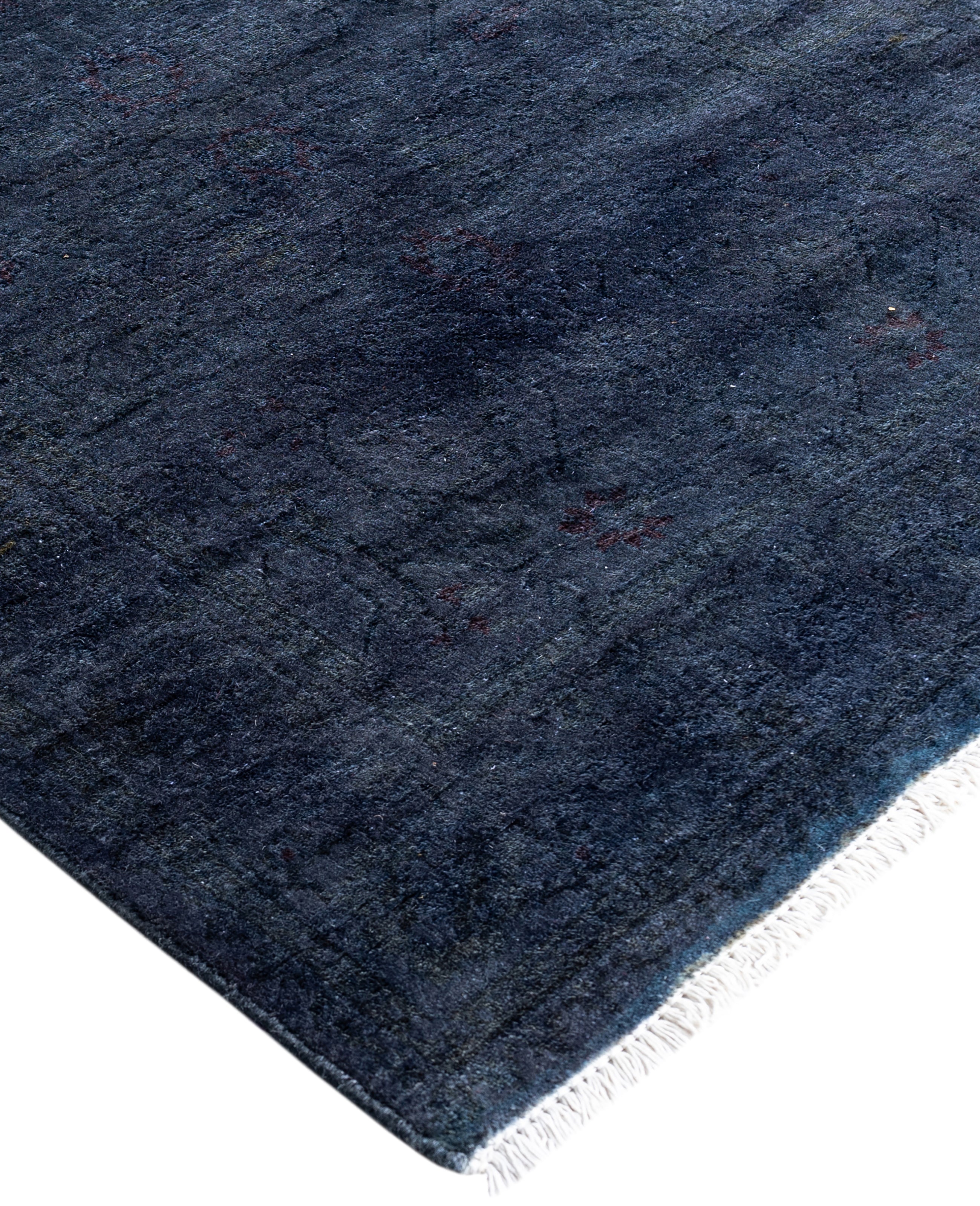 Over-dyed area rugs are created by taking vintage or traditional rugs and applying a vibrant, monochromatic dye over the existing patterns. This technique results in a bold, modern aesthetic while preserving the intricate designs beneath, blending the old with the new. The rugs are often faded and distressed before dyeing, which adds texture and depth to their appearance. The over-dye process breathes new life into worn or antique rugs, giving them a contemporary twist with rich, saturated colors like deep blues, purples, or bright reds. These rugs work well in both eclectic and modern spaces, offering a unique, artistic flair to any room. They provide a dynamic focal point, balancing between traditional craftsmanship and contemporary design trends. Over-dyed rugs are perfect for those looking to add a pop of color and character to their home decor.
